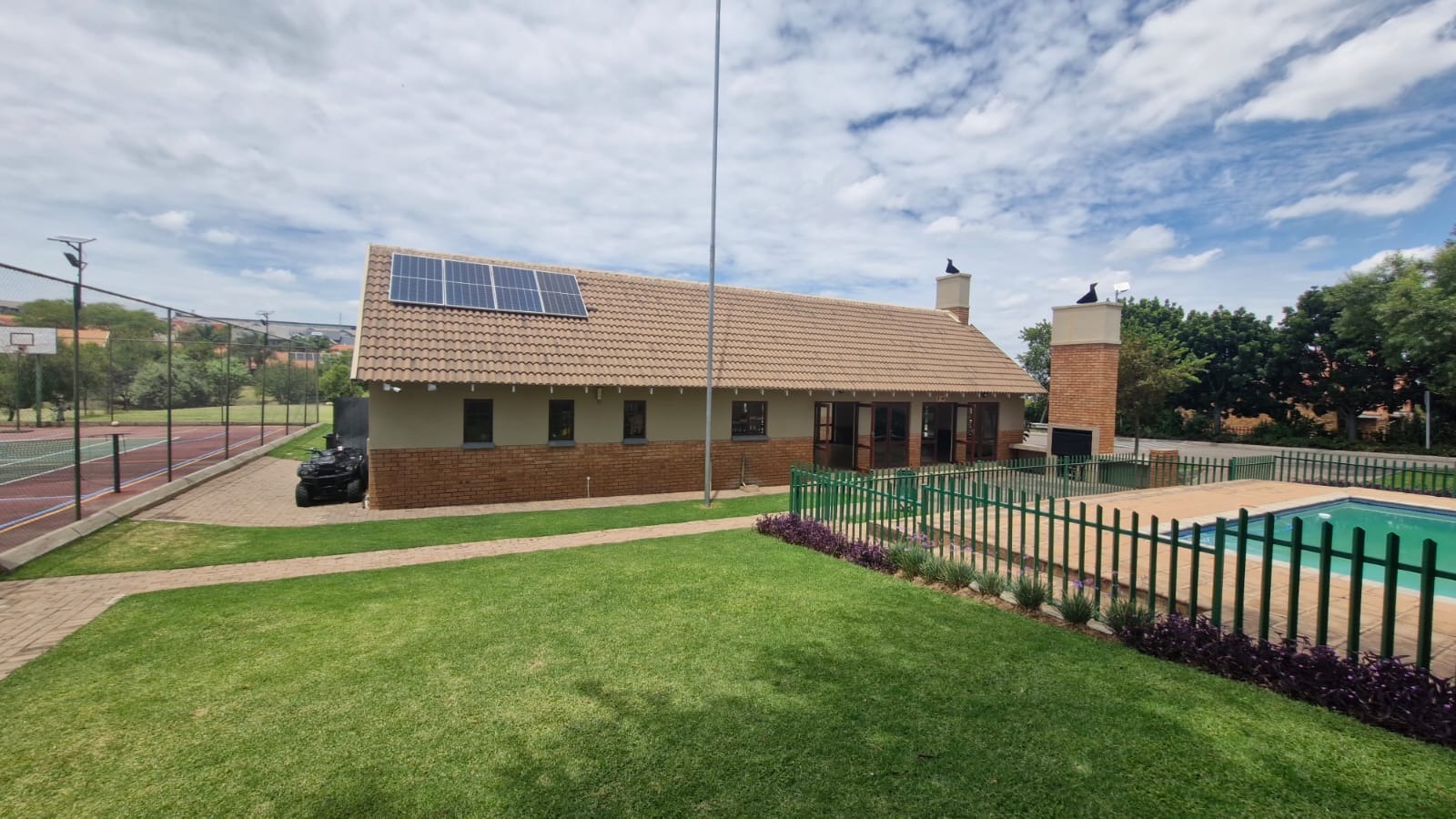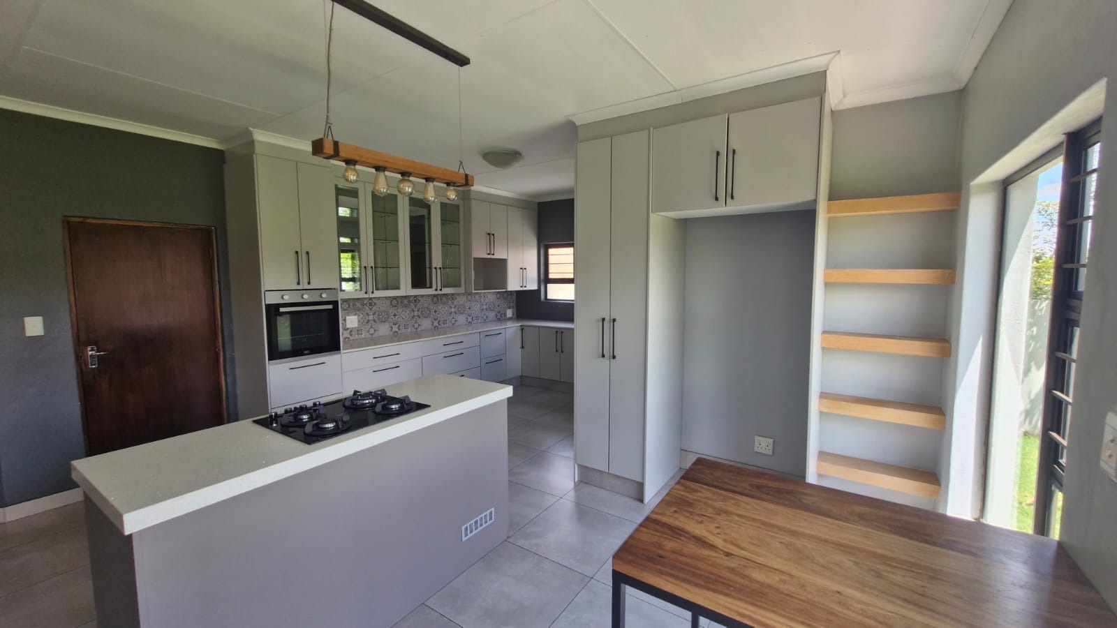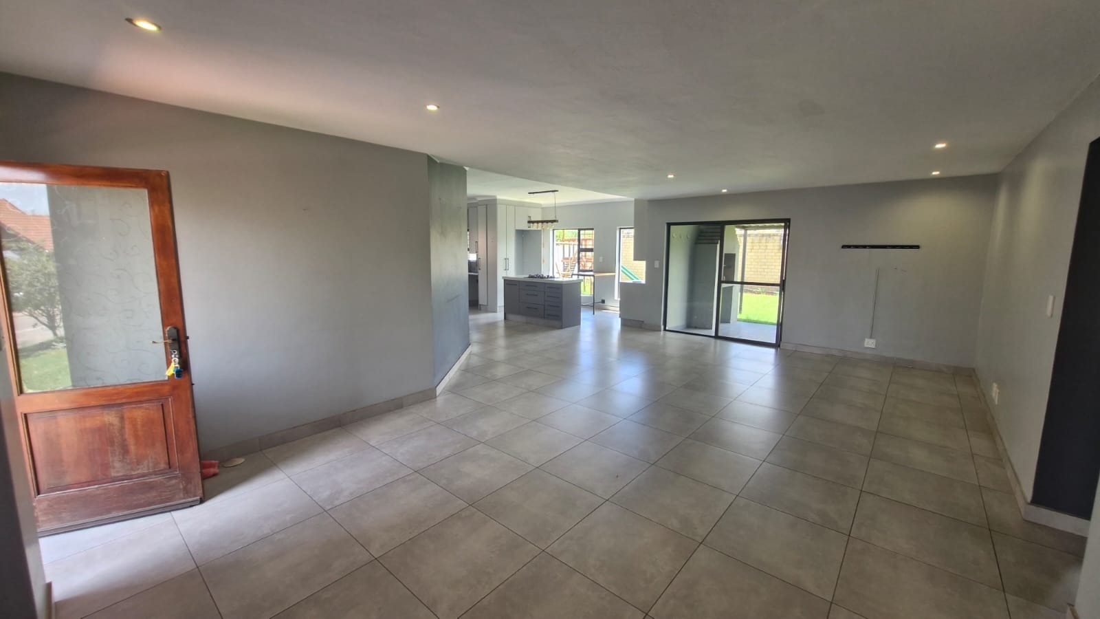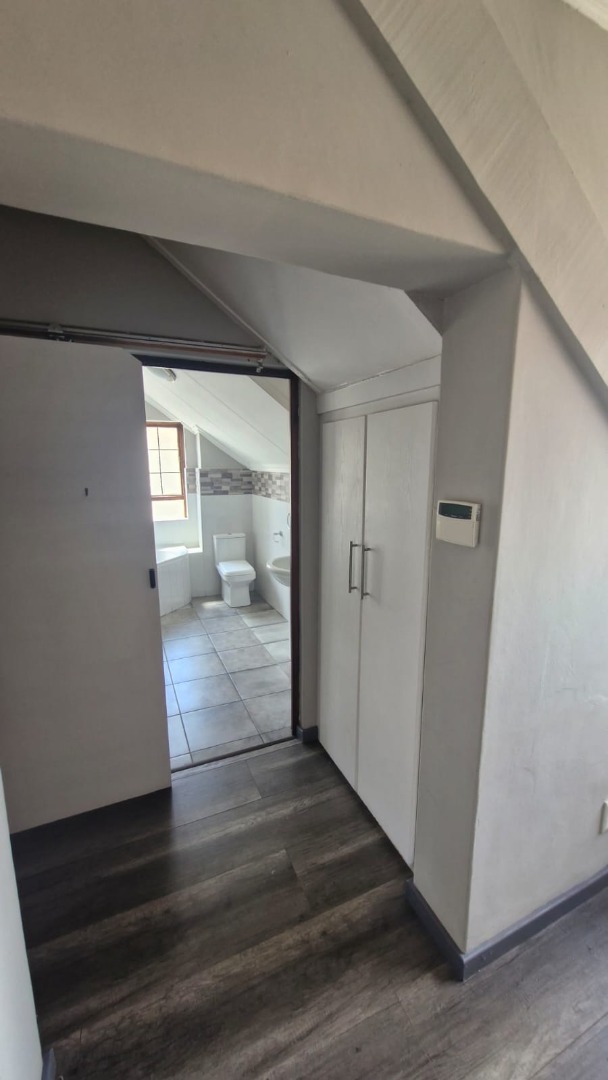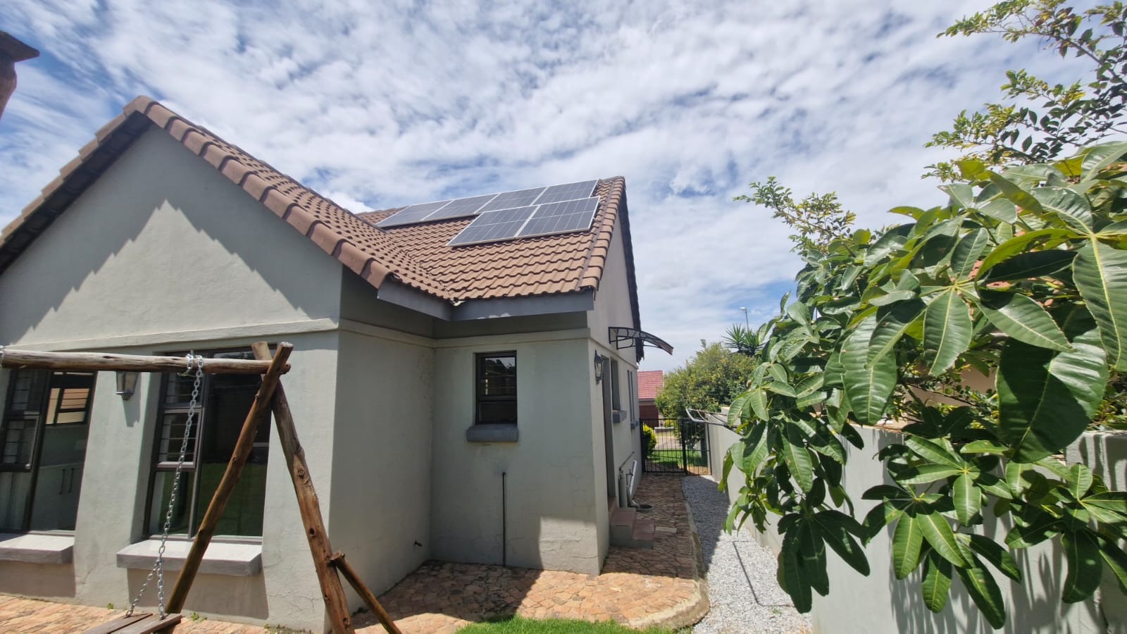 Discover this modern 3-bedroom, 2-bathroom home situated within a secure estate in Kosmosdal, Centurion. The property boasts an attractive, well-maintained exterior with a warm grey finish, tiled roof, and charming dormer windows, complemented by a double garage with wooden doors and a distinct cobblestone driveway. Manicured landscaping enhances its inviting kerb appeal. The interior features an open-plan layout, seamlessly connecting the living and kitchen areas. Modern light-colored tiled flooring, recessed lighting, and neutral grey walls create a contemporary ambiance. The kitchen is a highlight, equipped with grey cabinetry, light countertops, a central island with a gas hob, a built-in oven, and ample storage including a pantry. Large windows and sliding doors ensure abundant natural light throughout. Accommodation includes three comfortable bedrooms, with one featuring an en-suite bathroom. Bedrooms offer modern dark laminate flooring, built-in wardrobes, and two-tone paint schemes, providing both style and practicality. The home also benefits from a family TV room and a dedicated dining area. Outdoor living is catered for with a private garden, a built-in braai for entertaining, and access to a communal pool and club house within the estate. Practical features include air conditioning, solar panels, a battery inverter, and fibre connectivity, ensuring comfort and efficiency. Security is paramount with 24-hour security and burglar bars. Kosmosdal offers a convenient lifestyle in Centurion, known for its accessibility and growing community. This area provides a balance of suburban tranquility and easy access to urban amenities. Key Features: * 3 Bedrooms, 2 Bathrooms (1 En-suite) * Modern Open-Plan Living & Kitchen * Double Garage & 4 Parking Spaces * Private Garden with Built-in Braai * Communal Pool & Club House Access * Solar Panels & Battery Inverter * Fibre Connectivity & Air Conditioning * 24-Hour Security Estate with Burglar Bars * 500 sqm Erf Size, 255 sqm Floor Size
