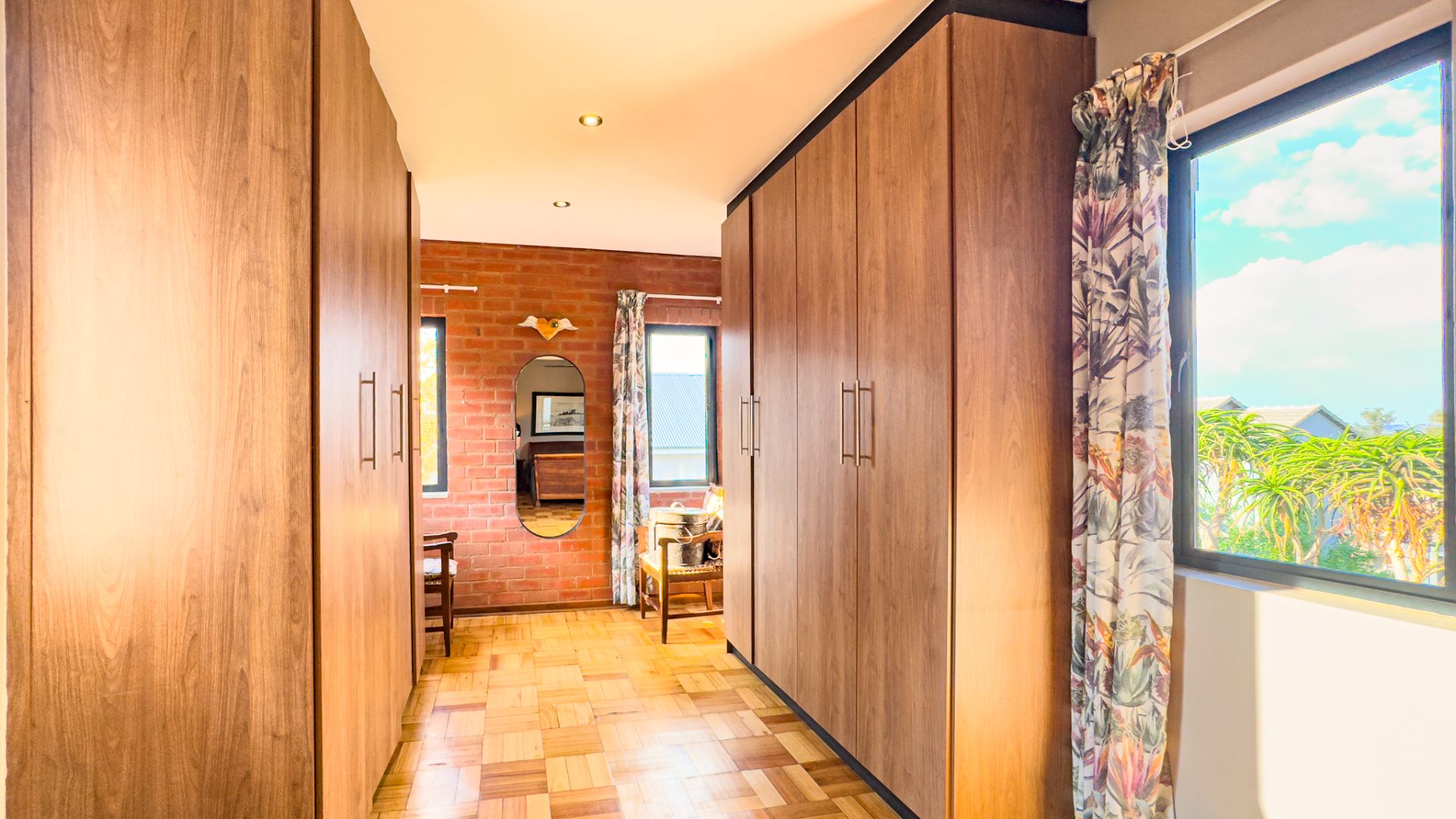Upstairs, you’ll find three spacious bedrooms and two modern bathrooms. The luxurious main en-suite with ample cupboard space and a beautifully designed bathroom that serves as a serene retreat.