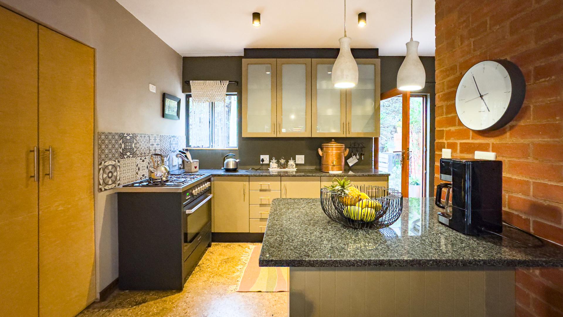 A versatile study or man cave opens onto the peaceful back garden, total privacy. The modern kitchen offers sleek finishes, a gas stove, and electric oven, making it both functional and stylish. A guest toilet completes the downstairs level, along with a servants room and outside bathroom.