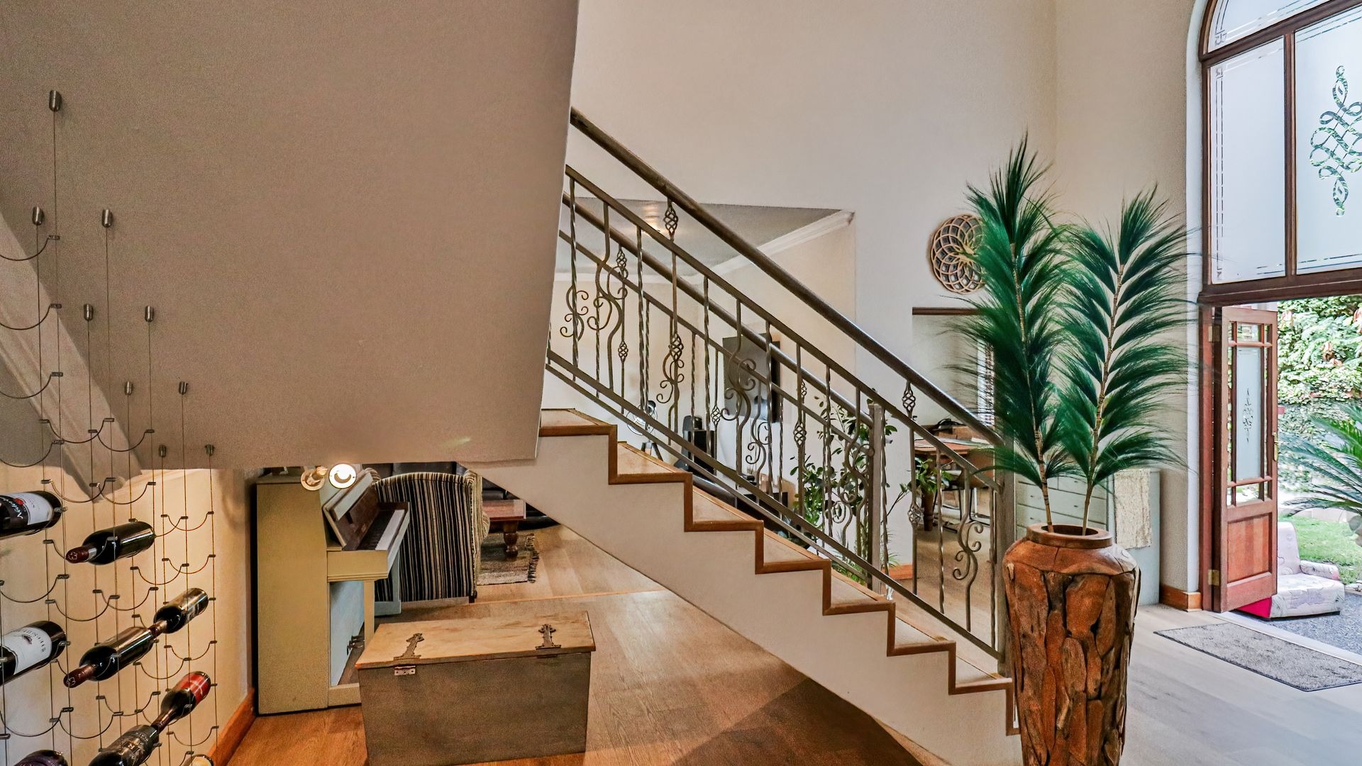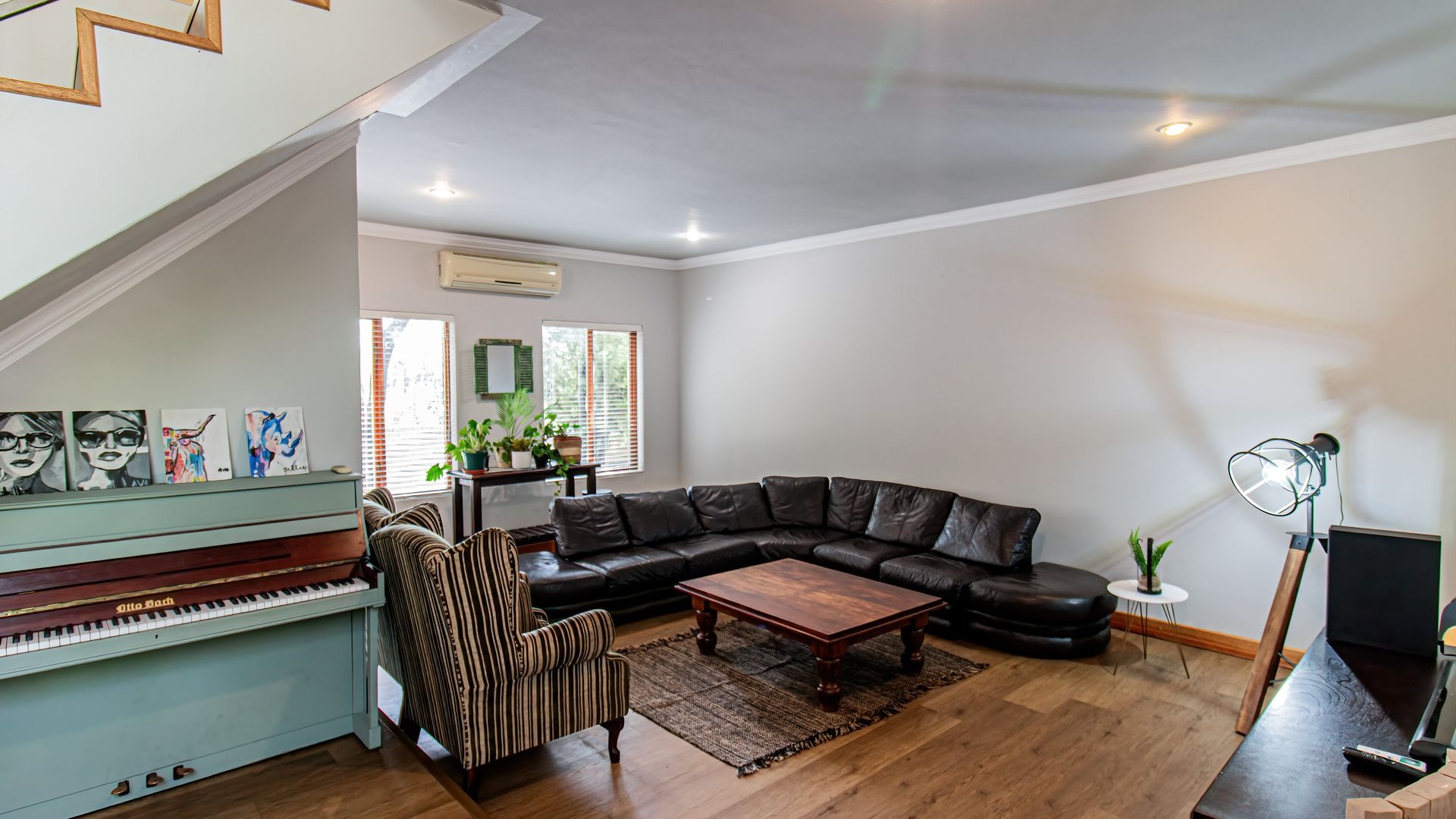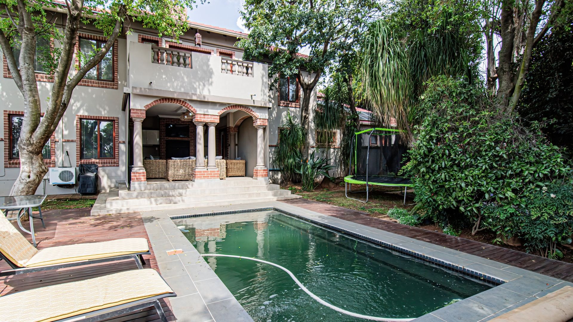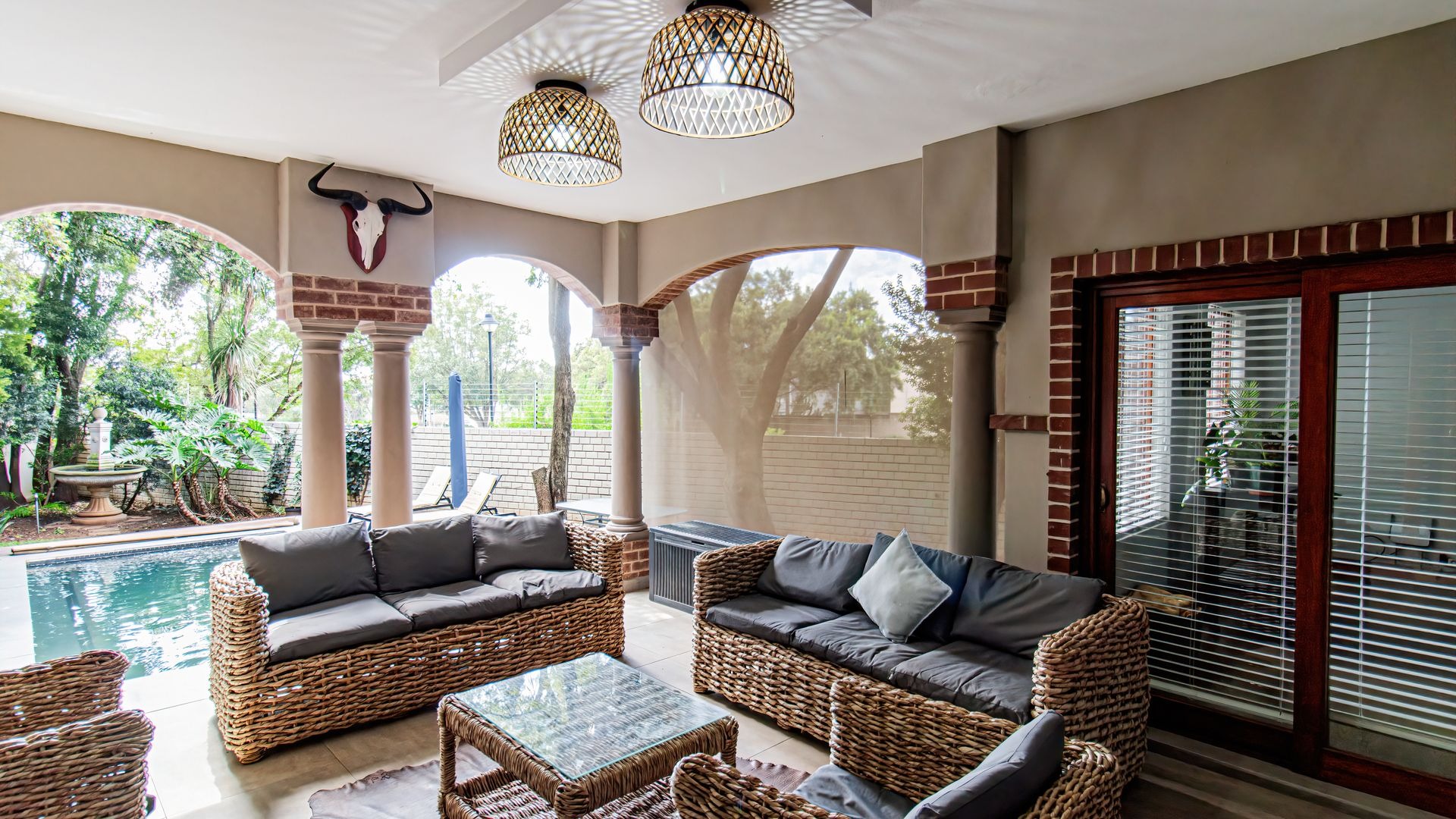 The four bedrooms provide comfortable accommodation, with two benefiting from private en-suite bathrooms. Outdoor living is equally impressive, featuring a balcony, a large patio, and a deck overlooking a refreshing swimming pool – perfect for enjoying the South African climate. An integrated braai room enhances entertaining possibilities, complemented by a garden and convenient staff quarters with seperate toilet.