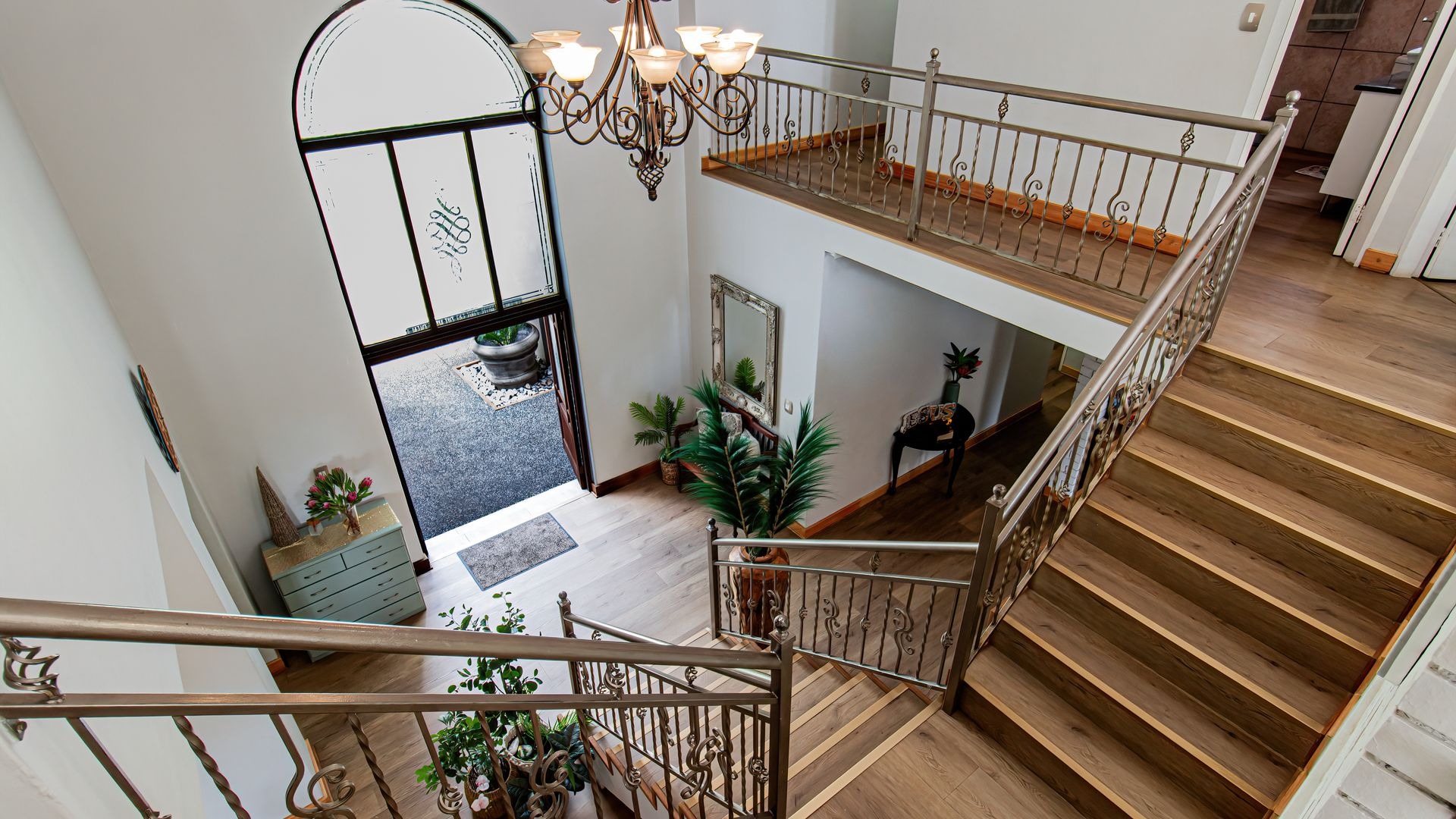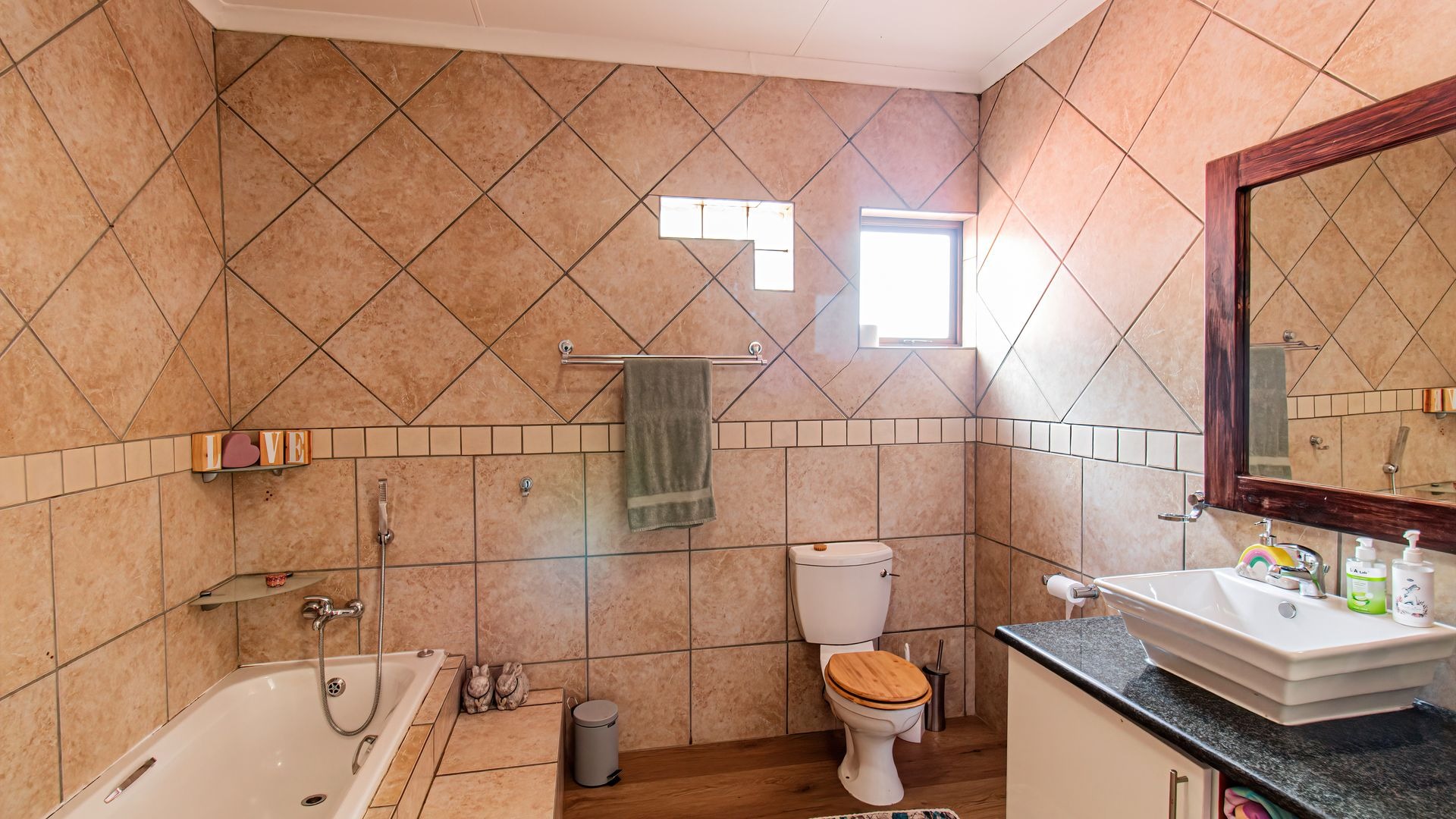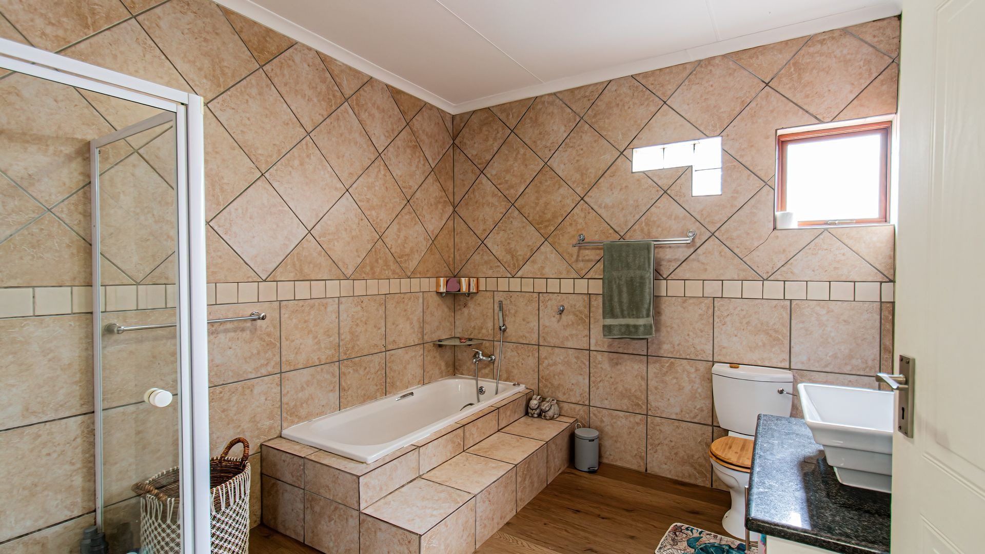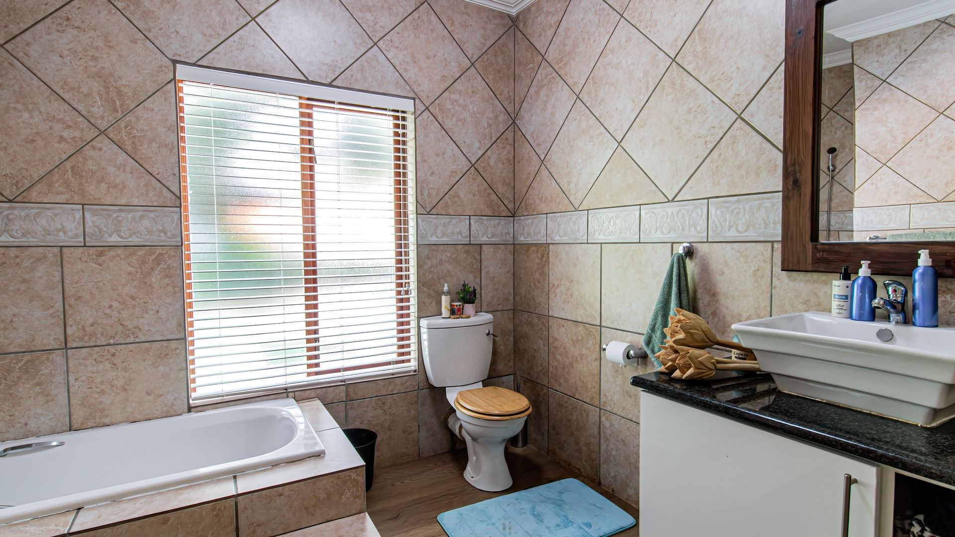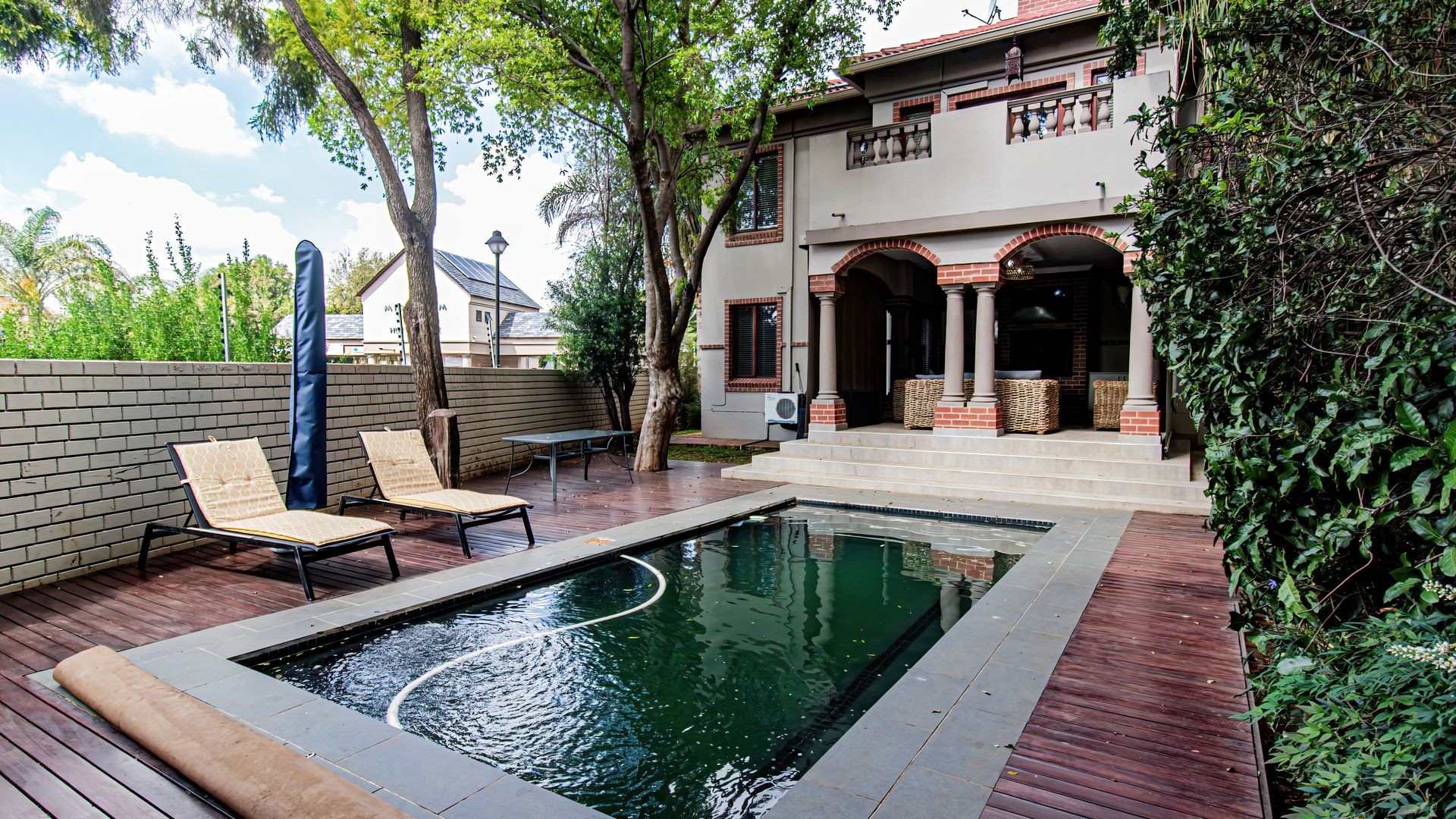The four bedrooms provide comfortable accommodation, with two benefiting from private en-suite bathrooms. Outdoor living is equally impressive, featuring a balcony, a large patio, and a deck overlooking a refreshing swimming pool – perfect for enjoying the South African climate. An integrated braai room enhances entertaining possibilities, complemented by a garden and convenient staff quarters with seperate toilet.