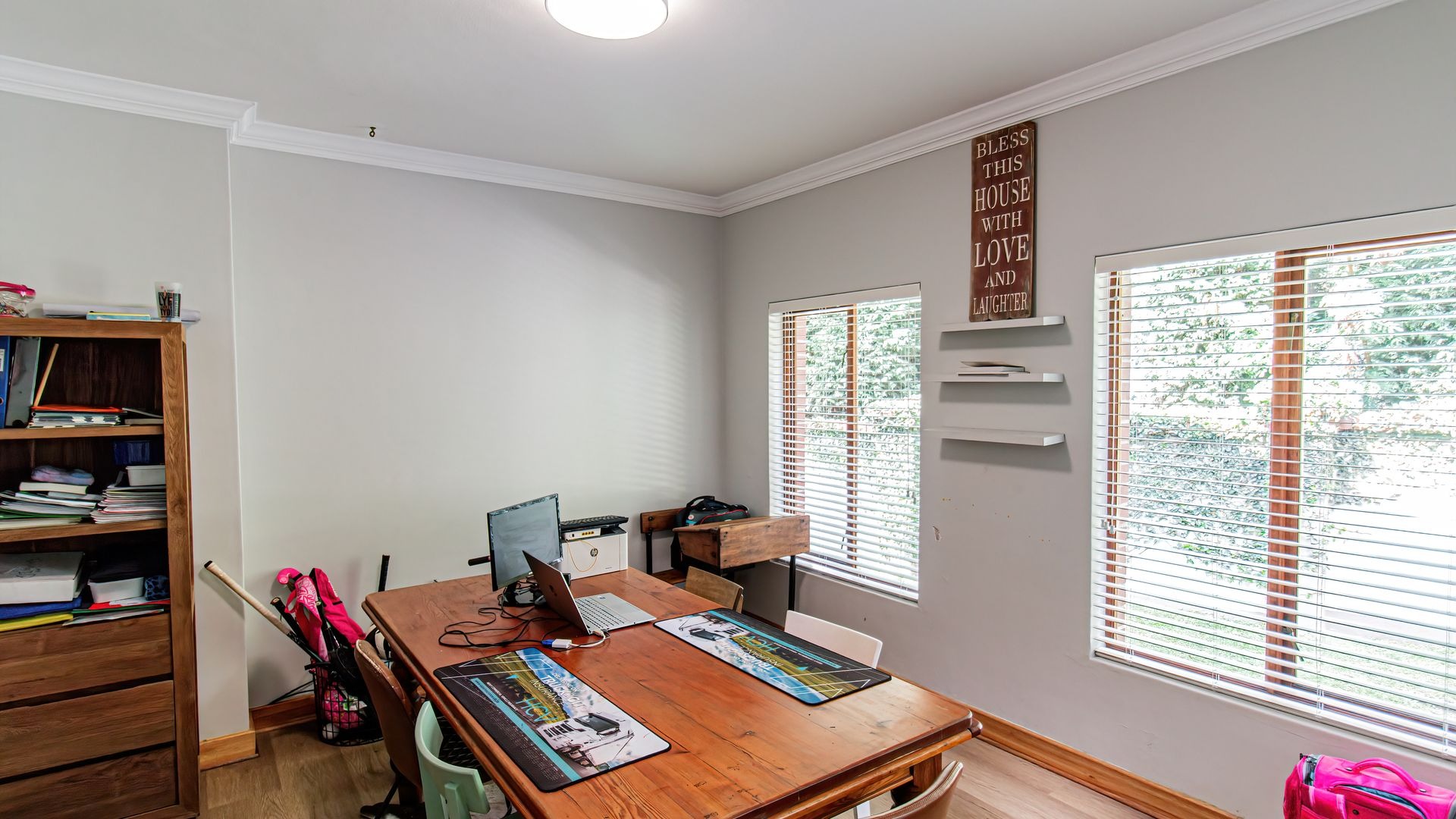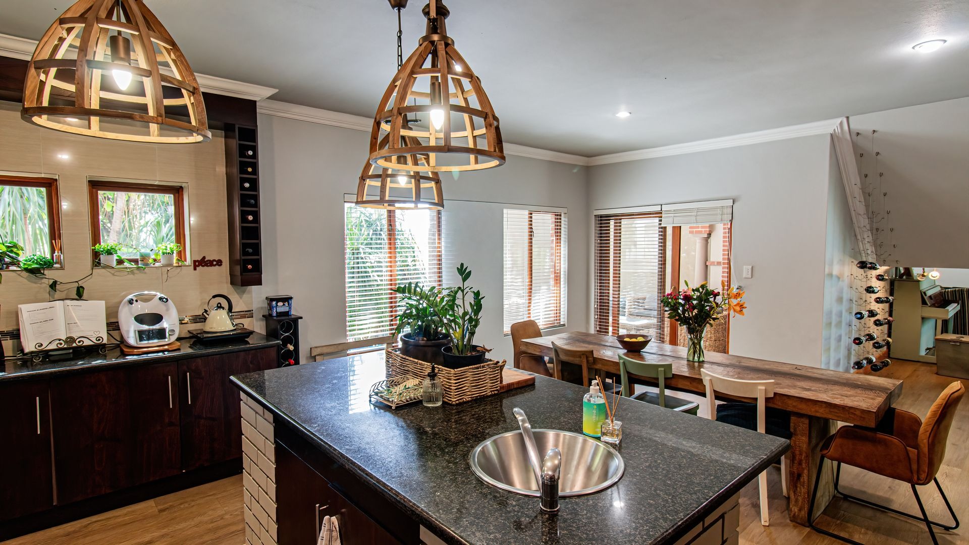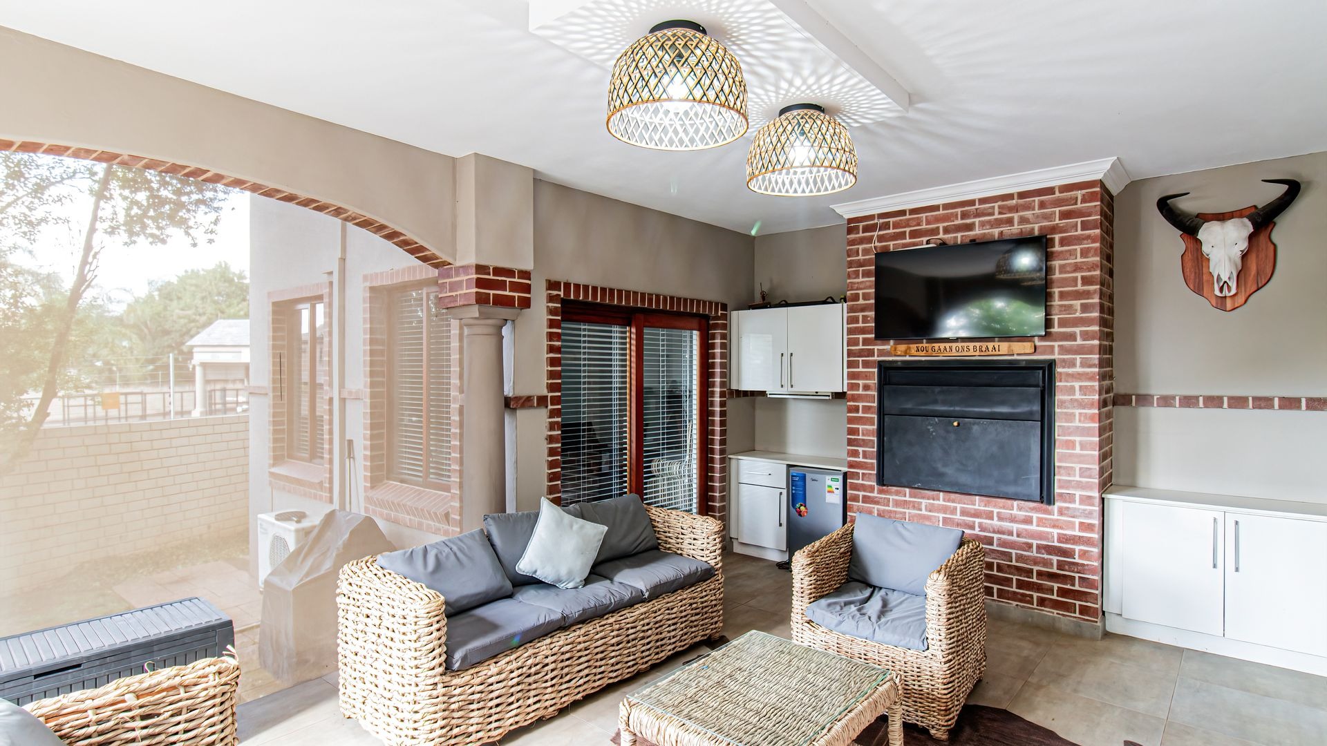 Nestled within the highly sought-after Midstream Estate in Centurion, this impressive four-bedroom, three-bathroom residence offers an exceptional lifestyle in a secure cul-de-sac location. Boasting a generous floor area of 375 sqm on a 909 sqm erf, this home is designed for comfort and modern convenience. Equipped with solar panels, a battery inverter, and fibre internet, it provides sustainable and connected living from the outset.