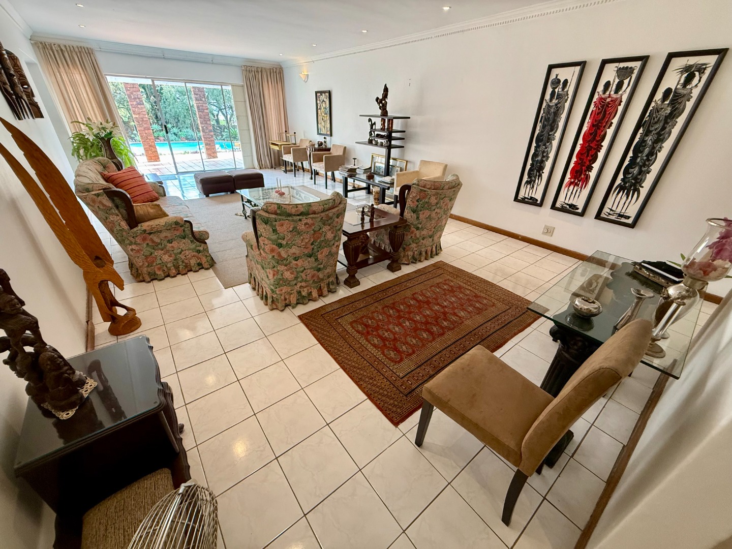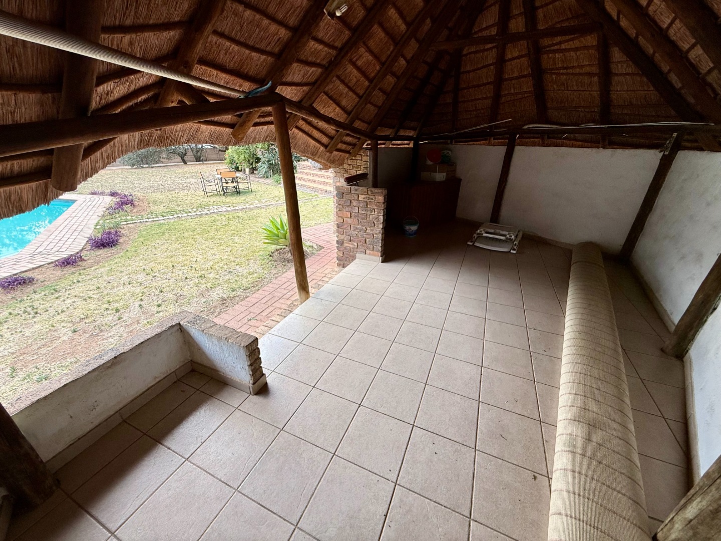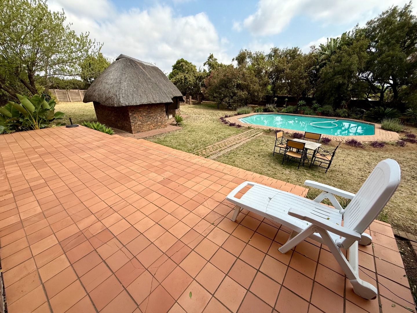 There is a large garden area with a pool and lapa for entertaining and for parking there is a double carport.