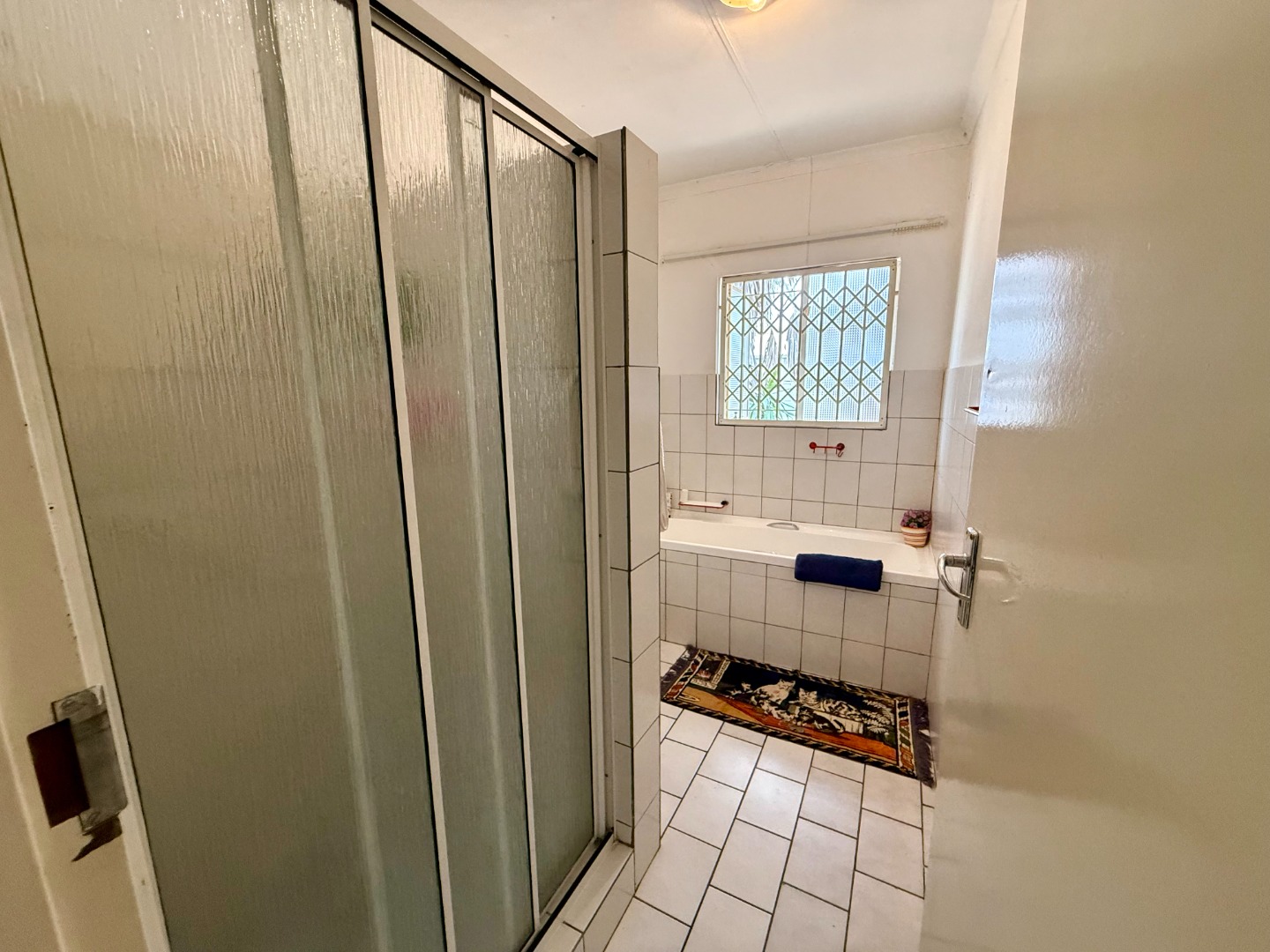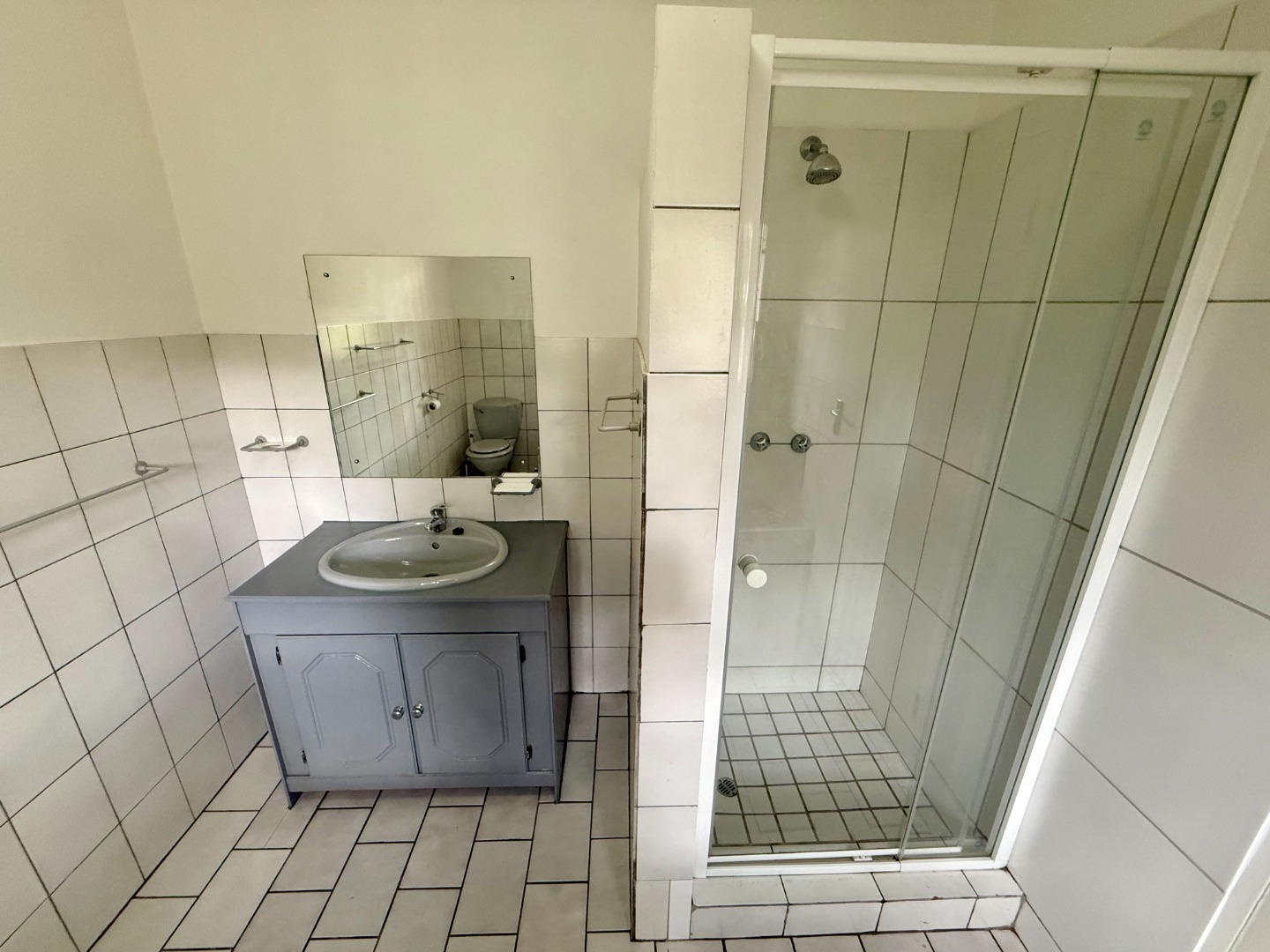The two bedrooms in the home share a one and a half bathroom with the toilet and basin being in one room while the shower resides in another.