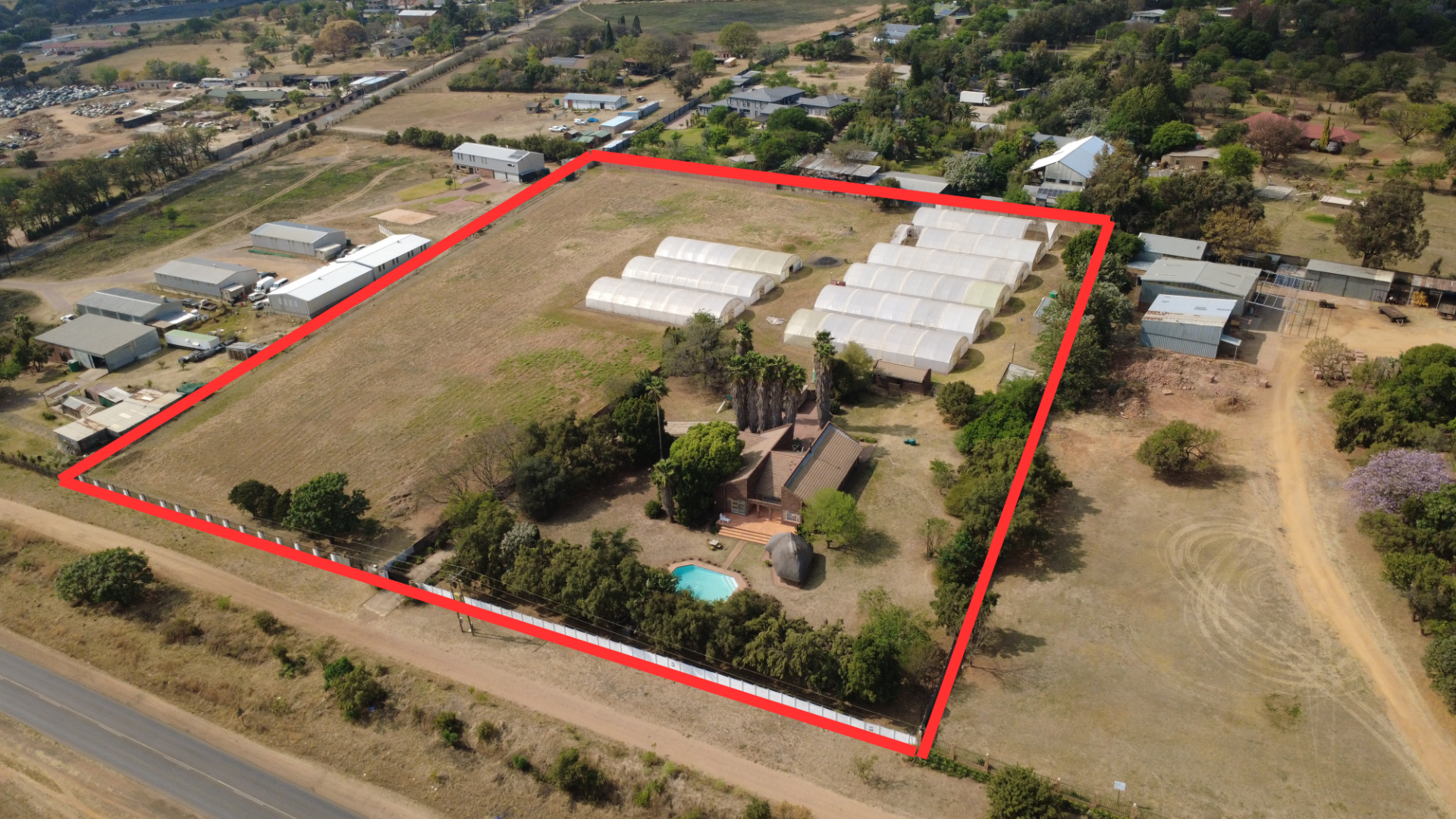 A main road property with a stunning home, large empty stand and tunnels with automated watering systems to begin your agricultural business... this is the plot you have been waiting for in the gorgeous and blossoming suburb of Mnandi!