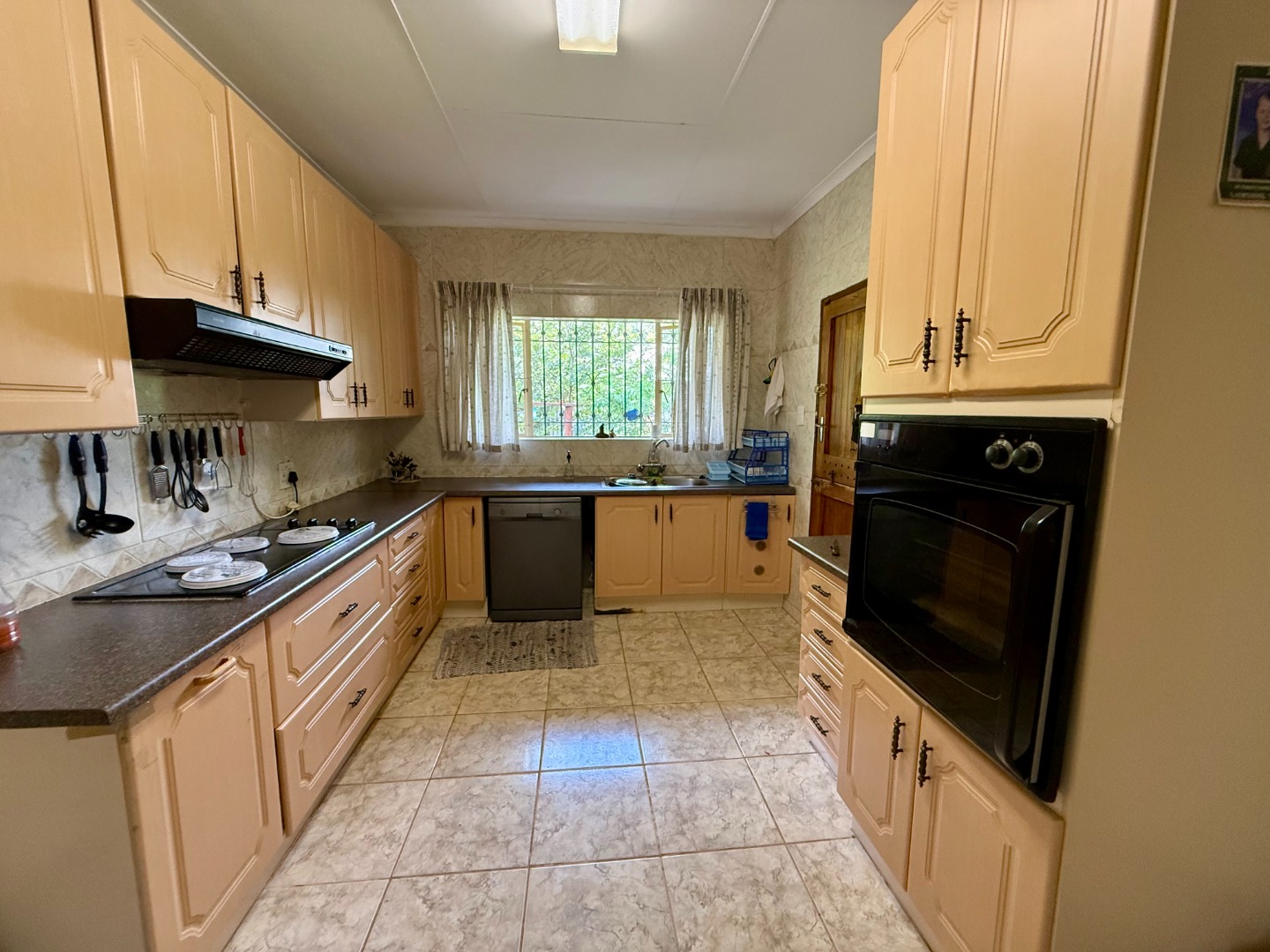 The kitchen is large and has ample working and storage space for all of your cullinary needs. Your scullery also features more cupboard and working space.