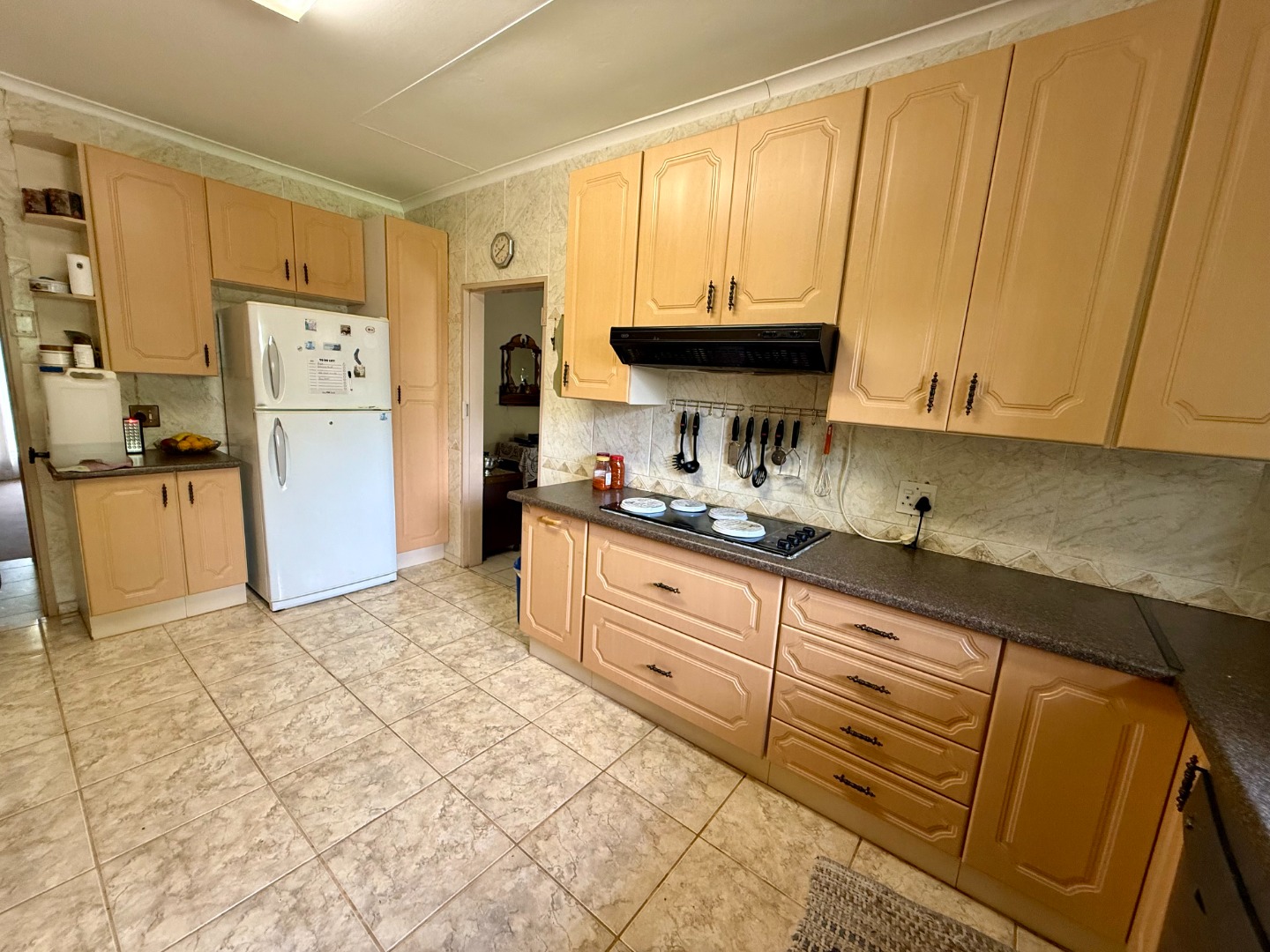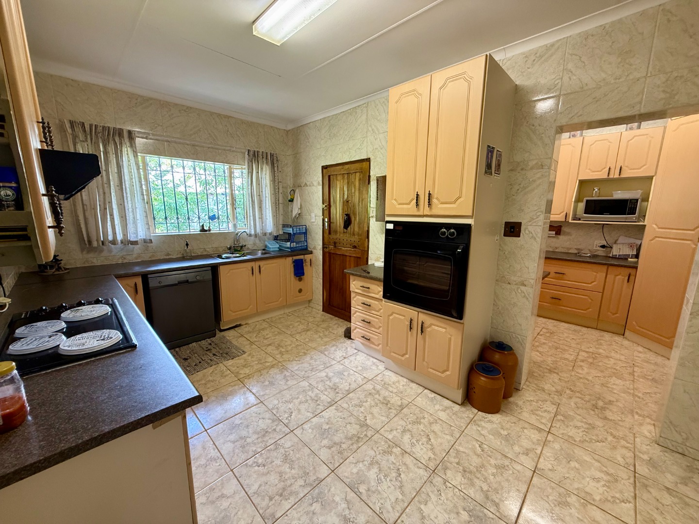 The kitchen is large and has ample working and storage space for all of your cullinary needs. Your scullery also features more cupboard and working space.