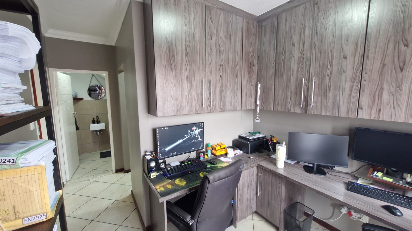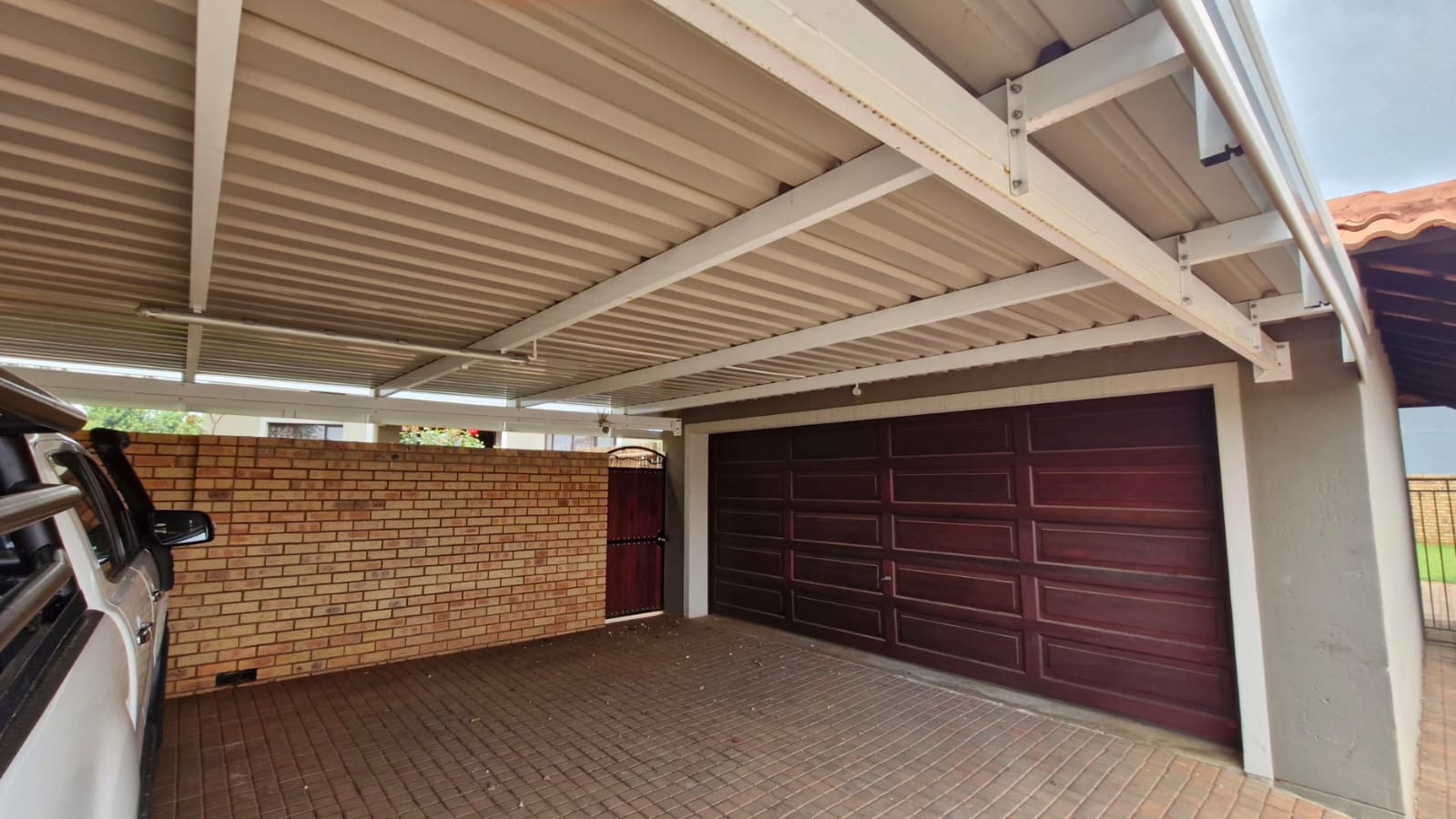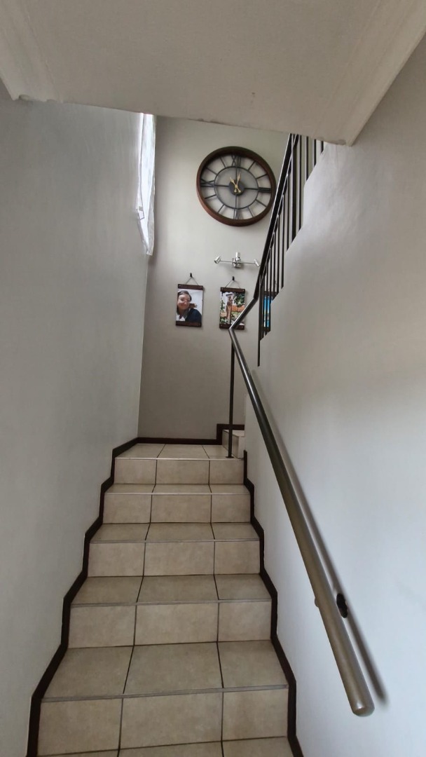 The residence comprises three comfortable bedrooms and 2.5 bathrooms, including a private ensuite and a guest toilet. A dedicated study provides an ideal space for work or hobbies. Outside, a private patio with a built-in braai is perfect for entertaining, complemented by a well-kept garden with an irrigation system.