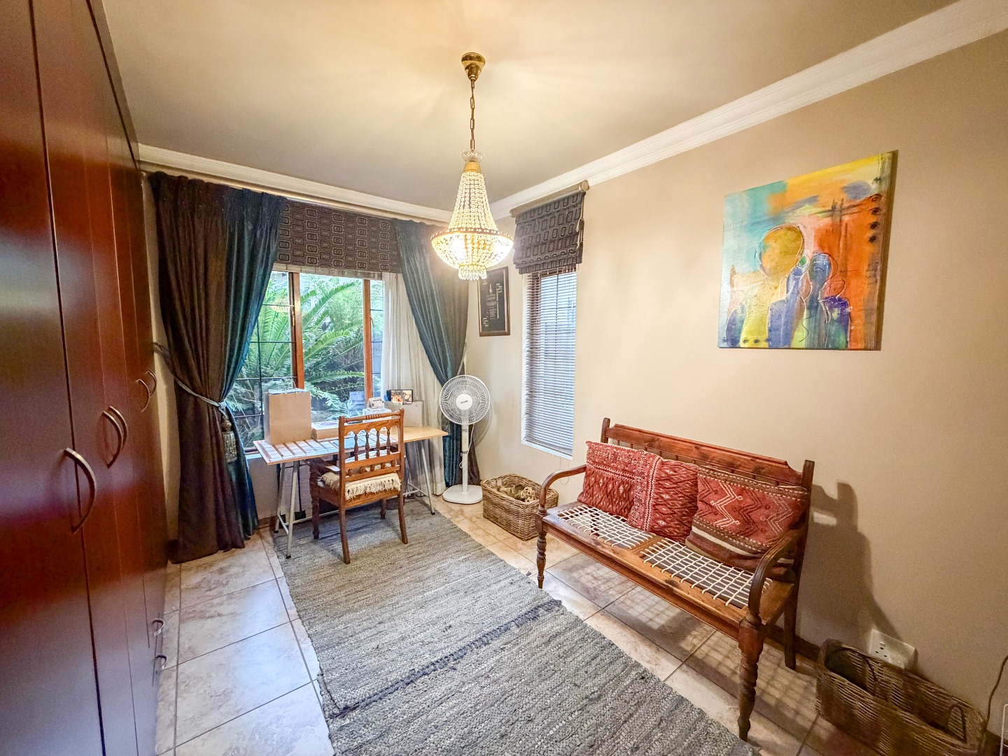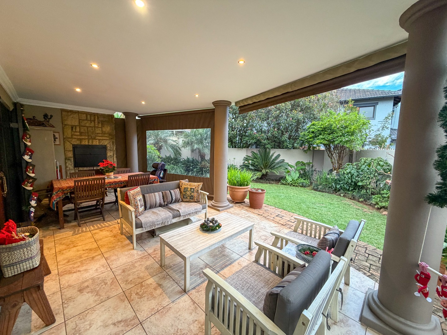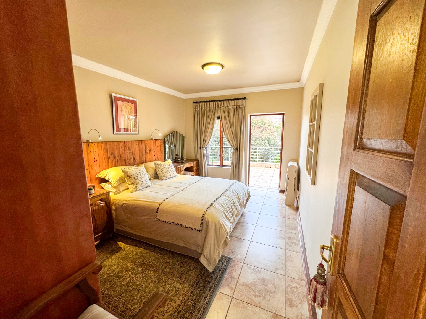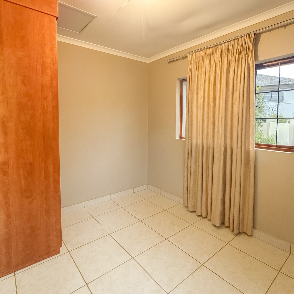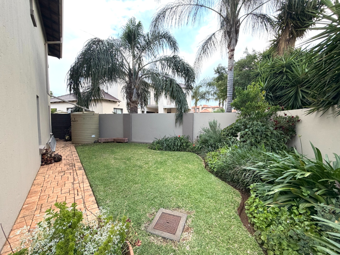 Outdoor living is elevated with a private balcony and a charming patio, ideal for enjoying the serene garden. The property is nestled within a secure estate, offering 24-hour security, access gates, security gates, and burglar bars for ultimate peace of mind. Current internet by Level 7 (estate FTTH ready with high speed fibre capabilities.