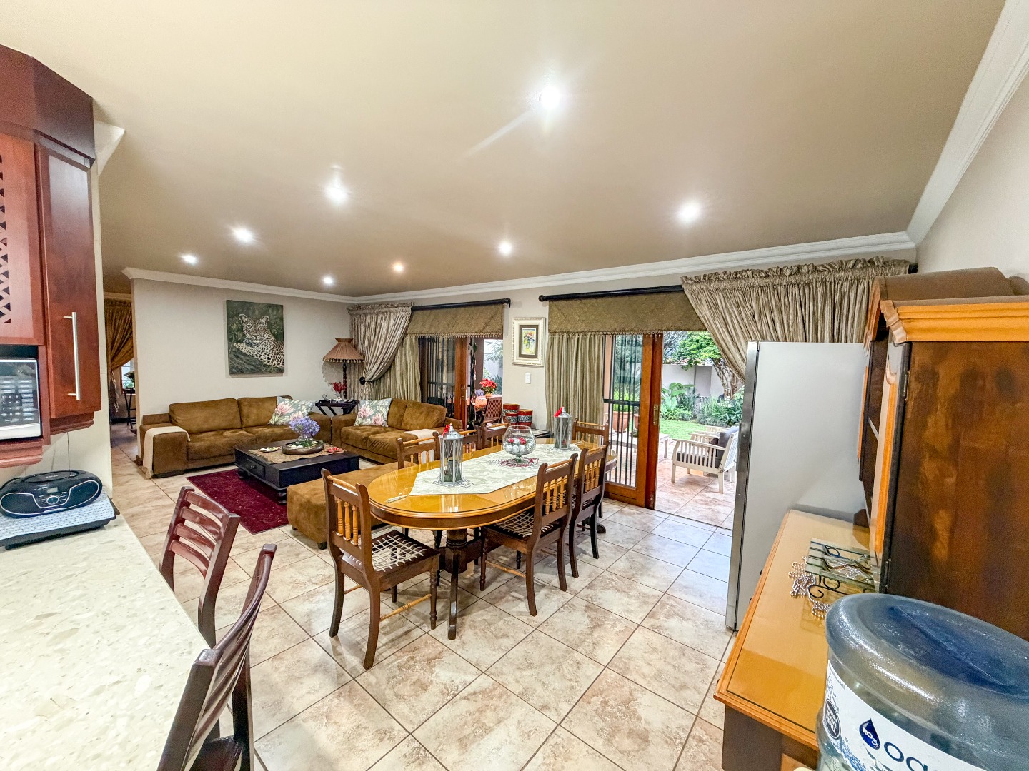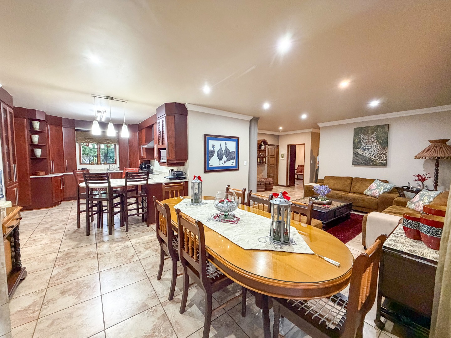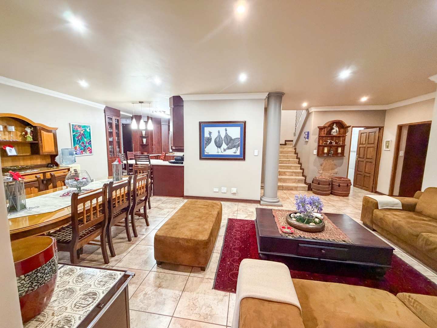 Step inside to an expansive entrance hall that sets the tone for refined living. The home offers one distinct lounge and a dedicated family TV room, providing ample space for both grand entertaining and intimate family moments. Culinary enthusiasts will appreciate the convenience of well-appointed kitchen, seamlessly flowing into the elegant dining room. An open-plan design enhances the sense of space, while a built-in braai and a dedicated braai room promise effortless hosting.