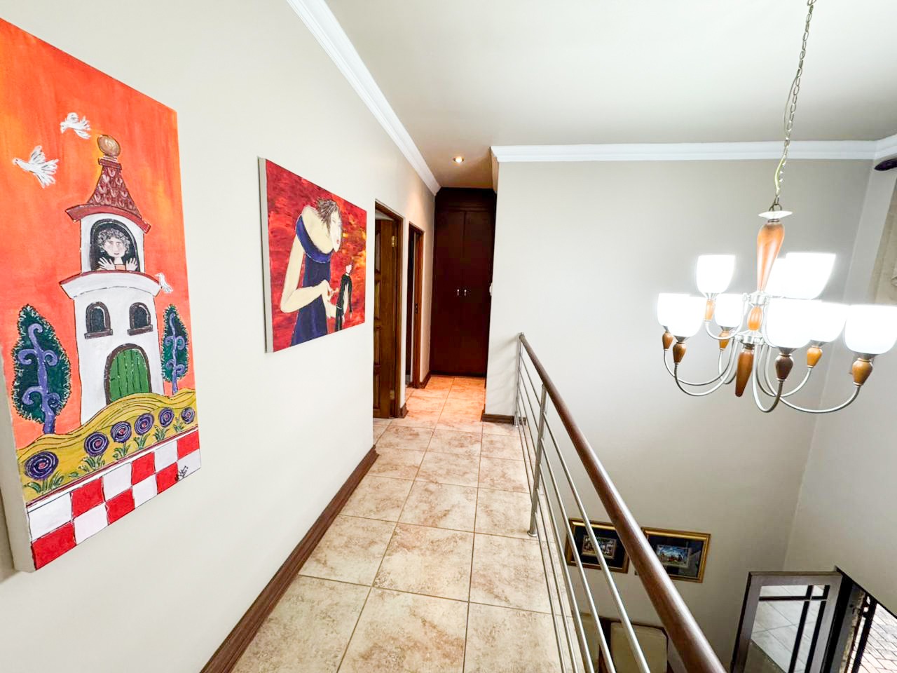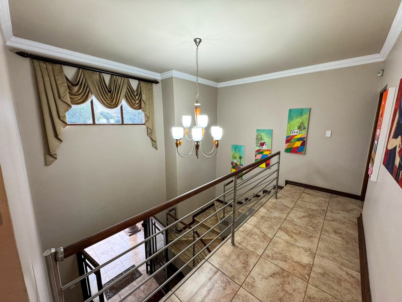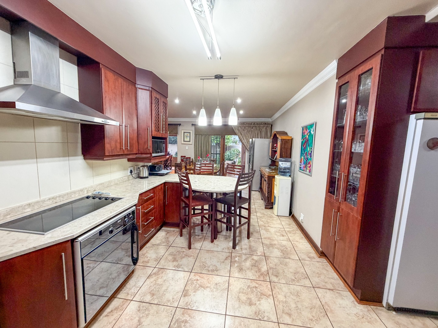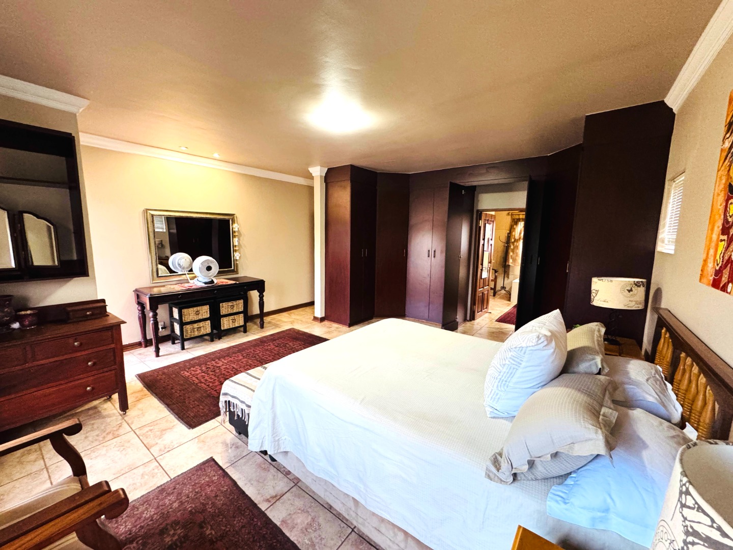 Step inside to an expansive entrance hall that sets the tone for refined living. The home offers one distinct lounge and a dedicated family TV room, providing ample space for both grand entertaining and intimate family moments. Culinary enthusiasts will appreciate the convenience of well-appointed kitchen, seamlessly flowing into the elegant dining room. An open-plan design enhances the sense of space, while a built-in braai and a dedicated braai room promise effortless hosting.