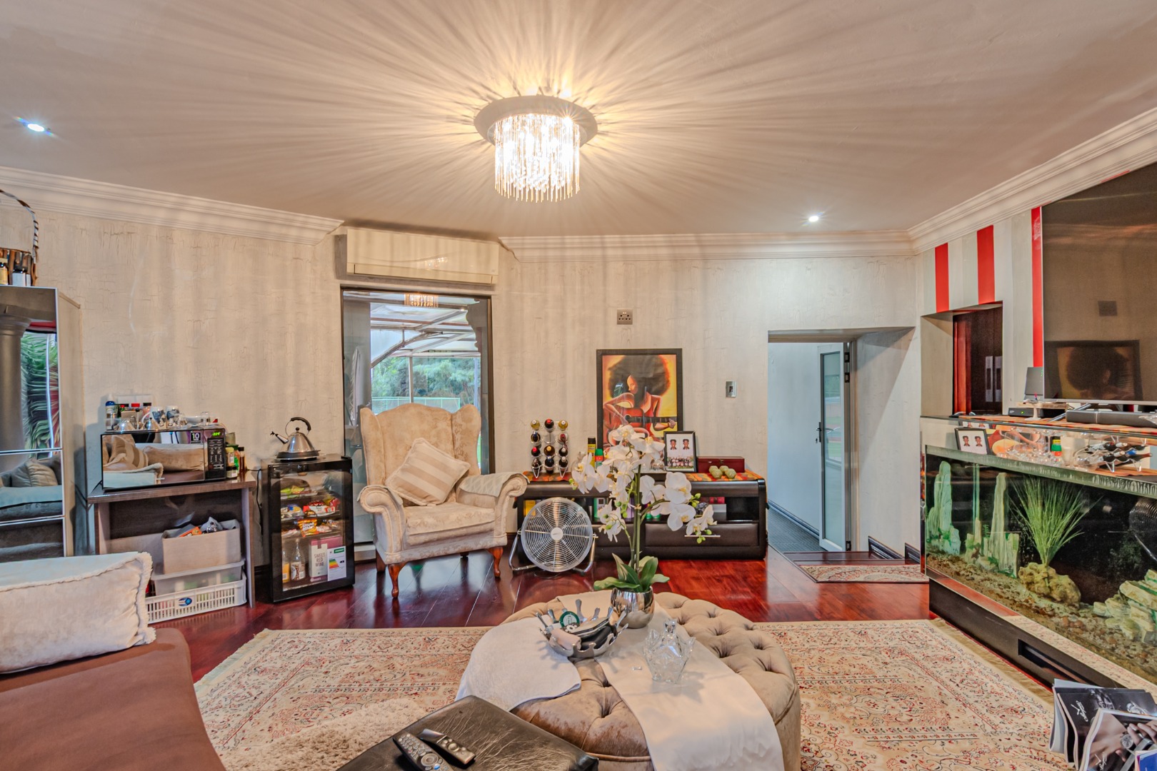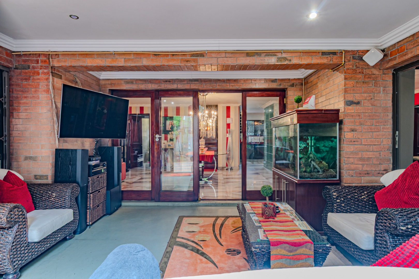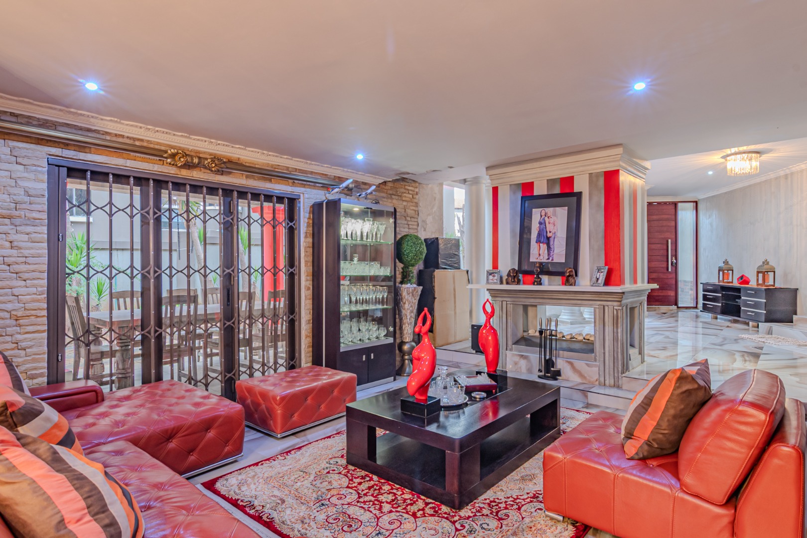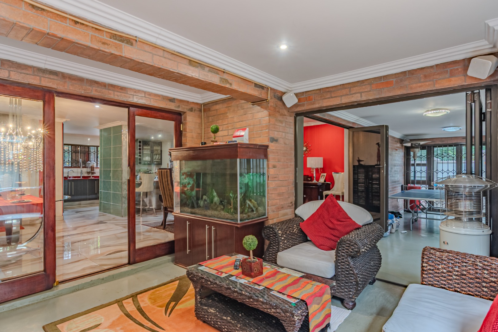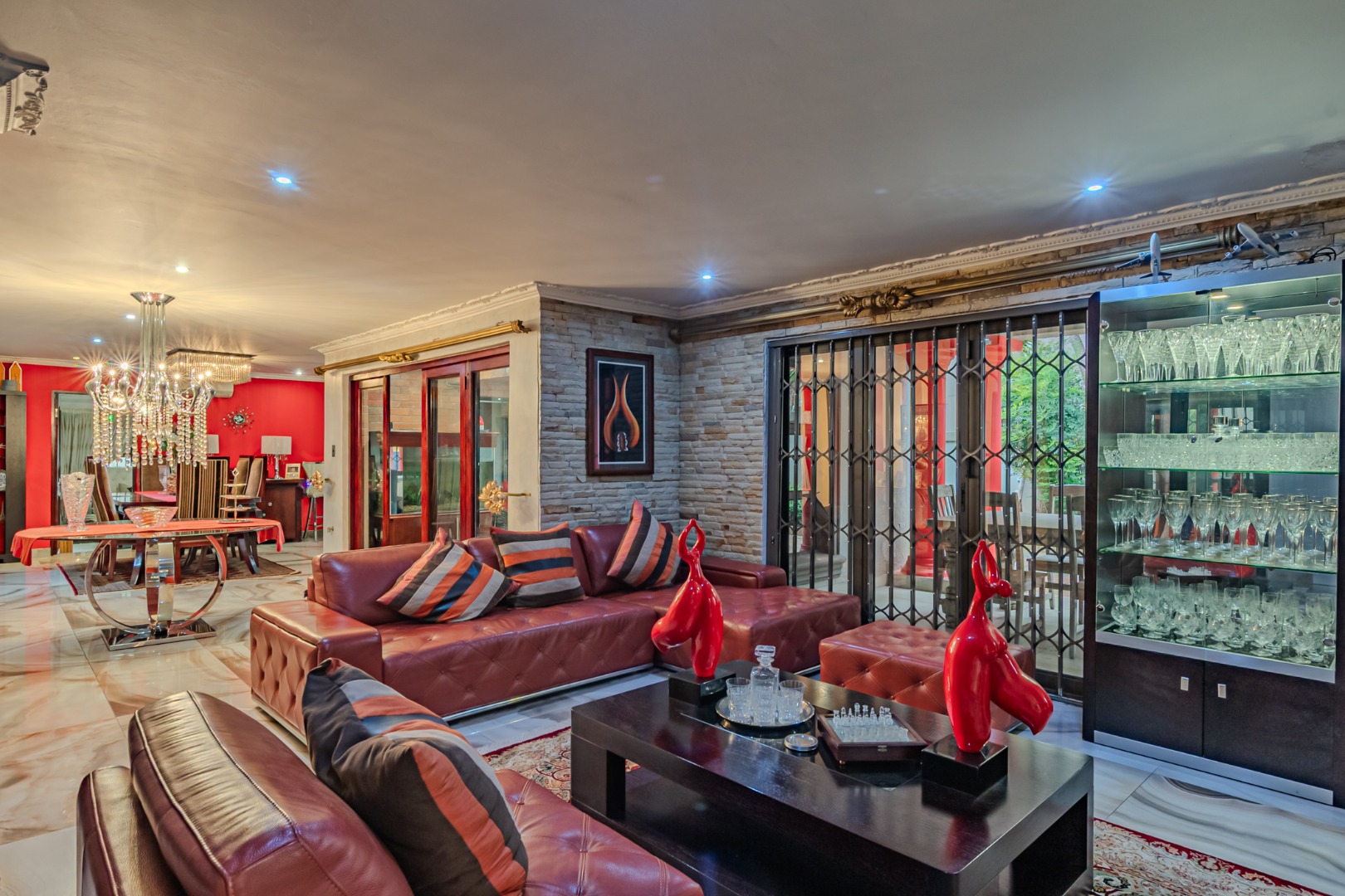 hosting and relaxation. This inviting space offers direct access to the garden and swimming pool, enhancing the home’s indoor–outdoor connection.