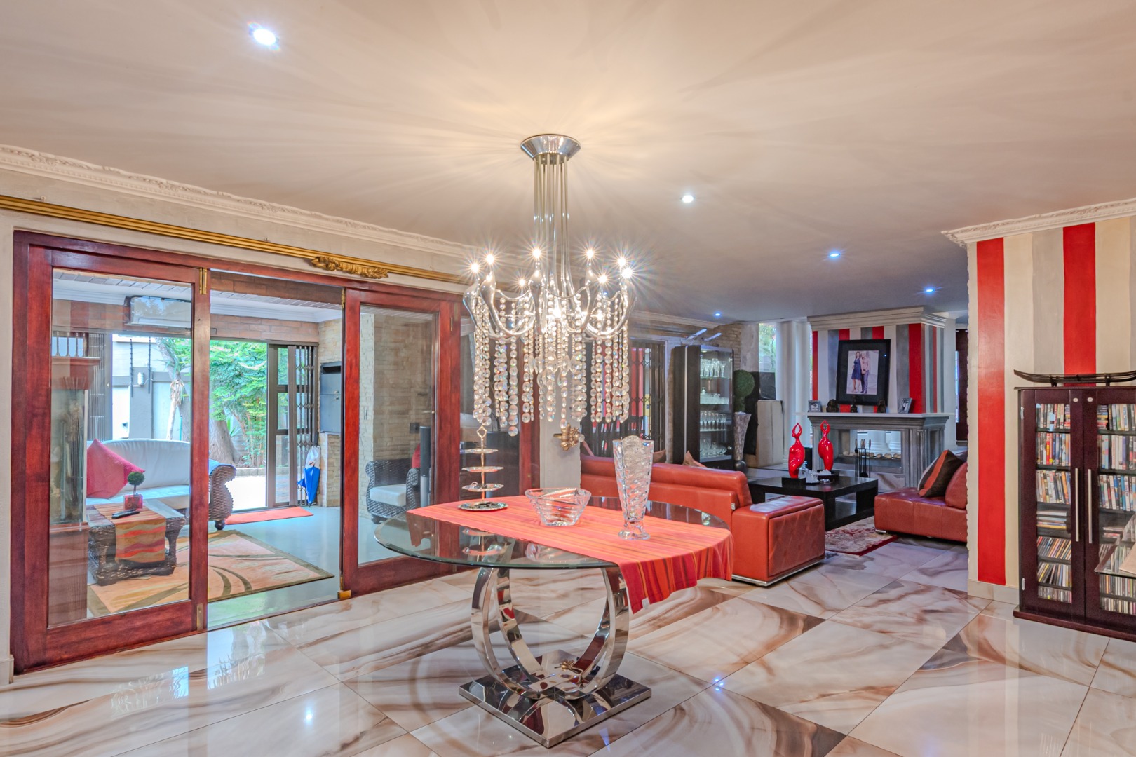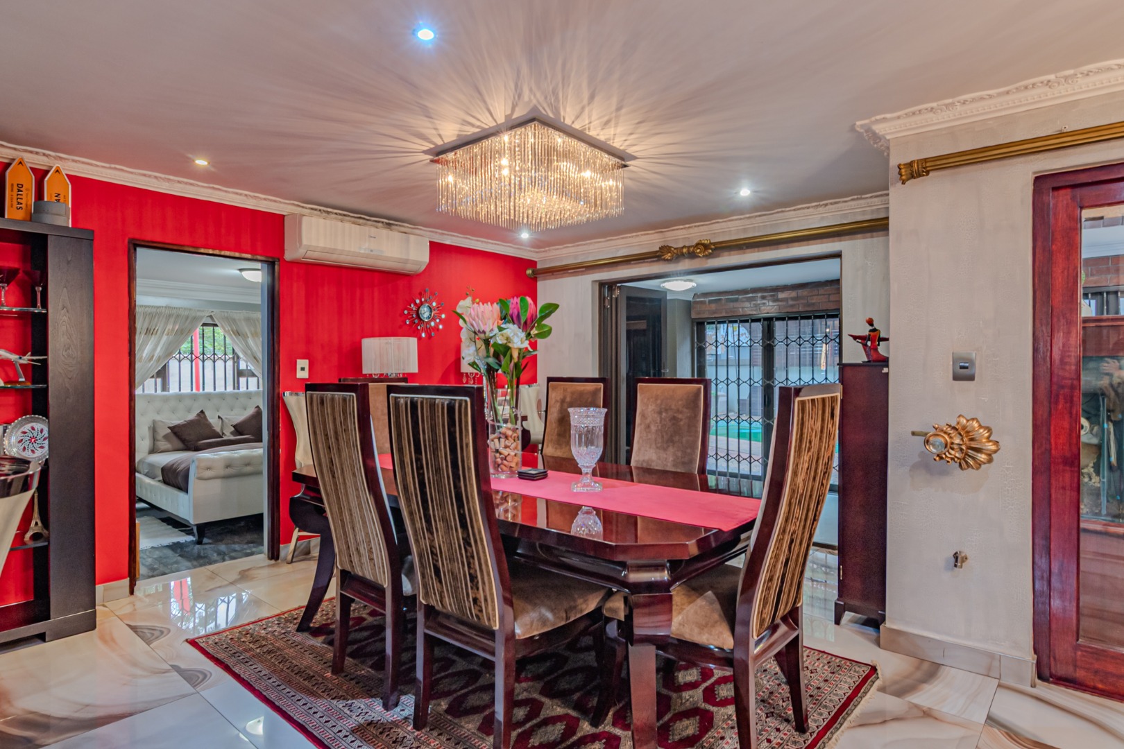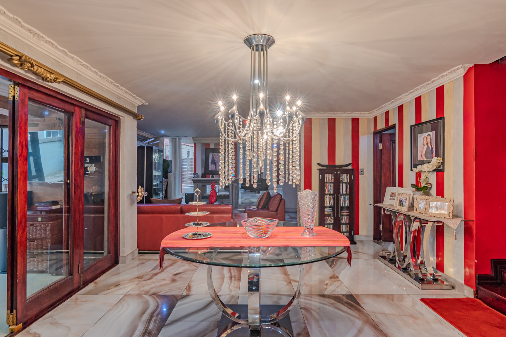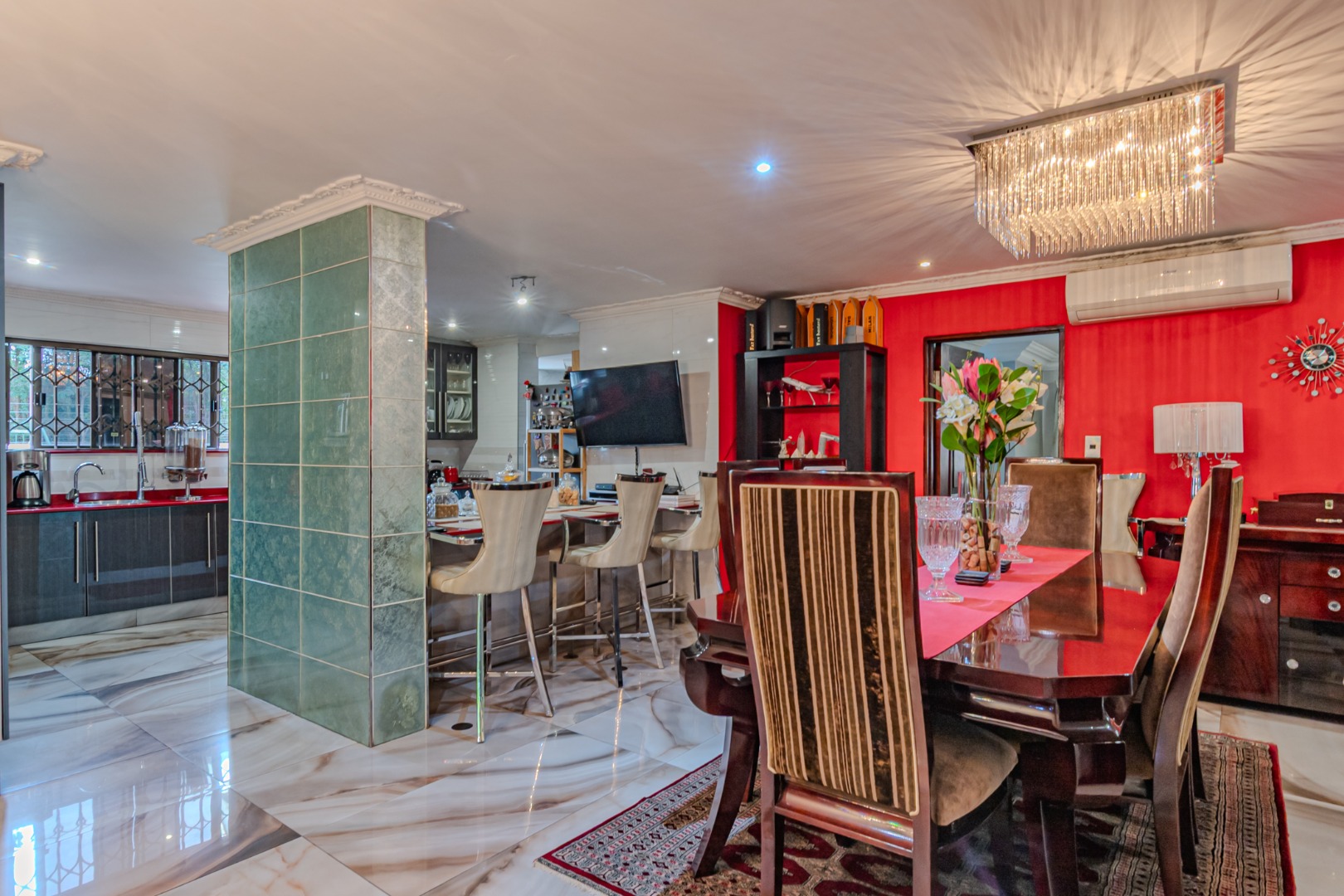 Flowing seamlessly from the kitchen, the adjacent dining area opens effortlessly into a spacious entertainment area, creating an ideal setting for