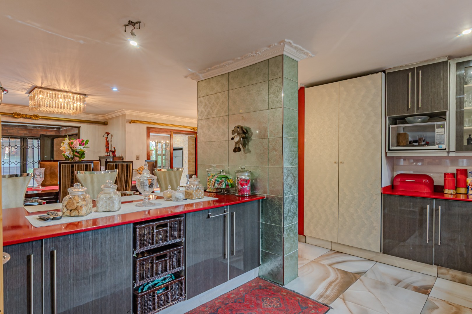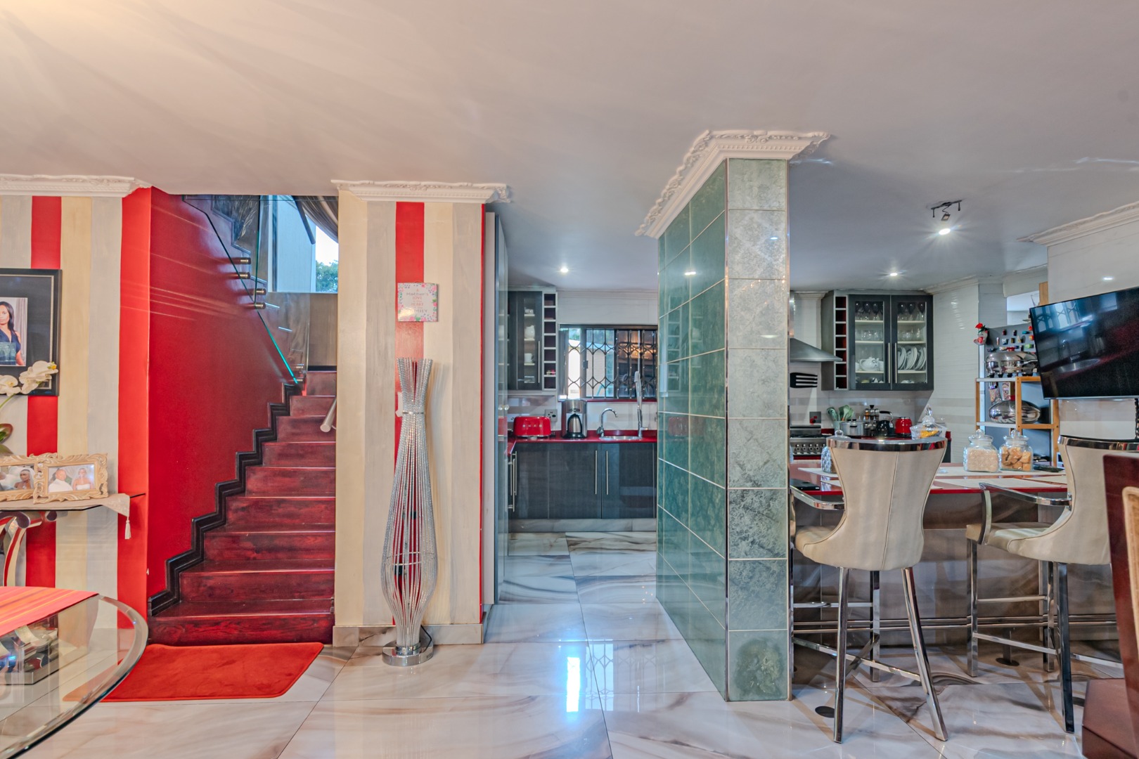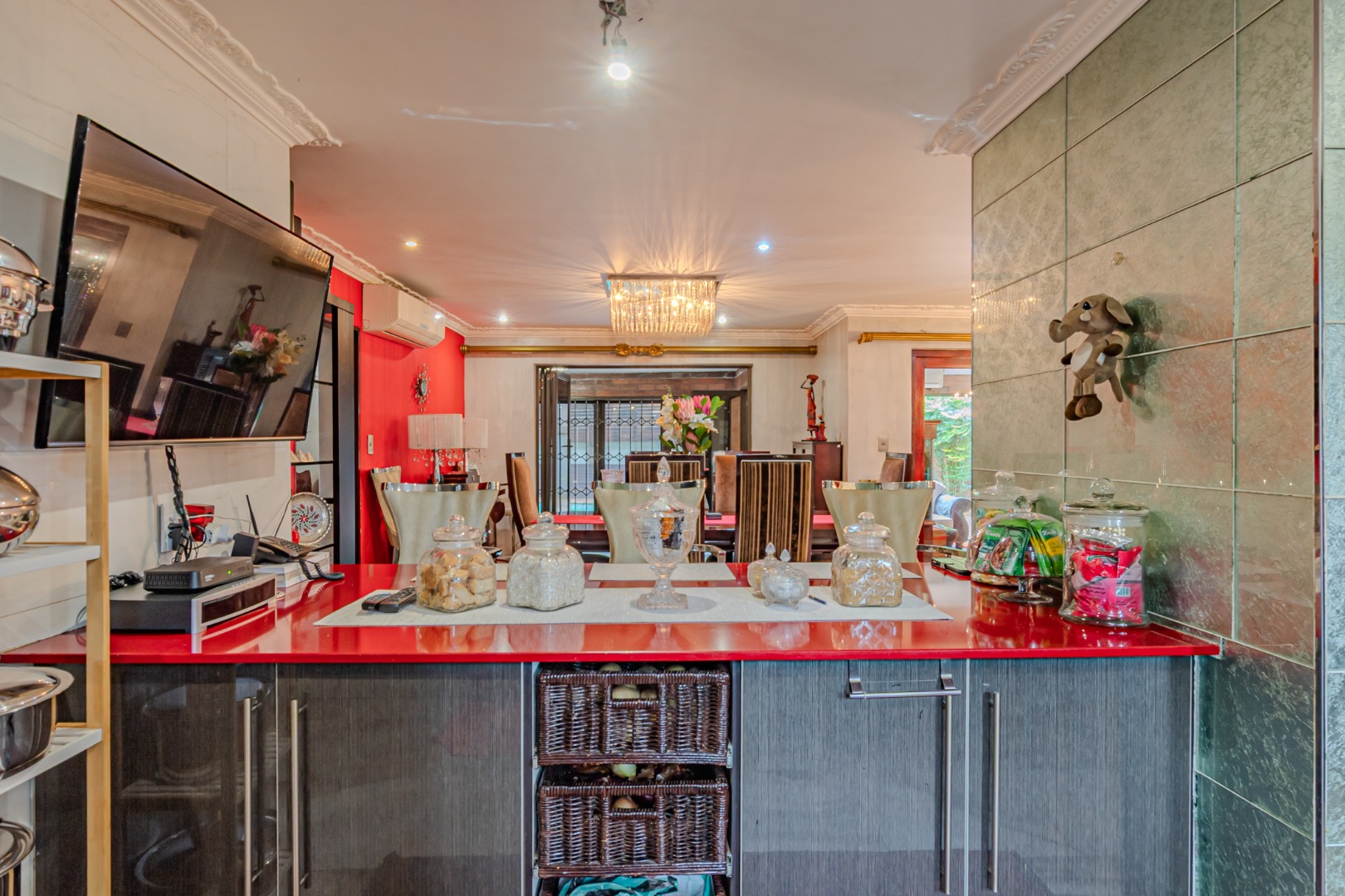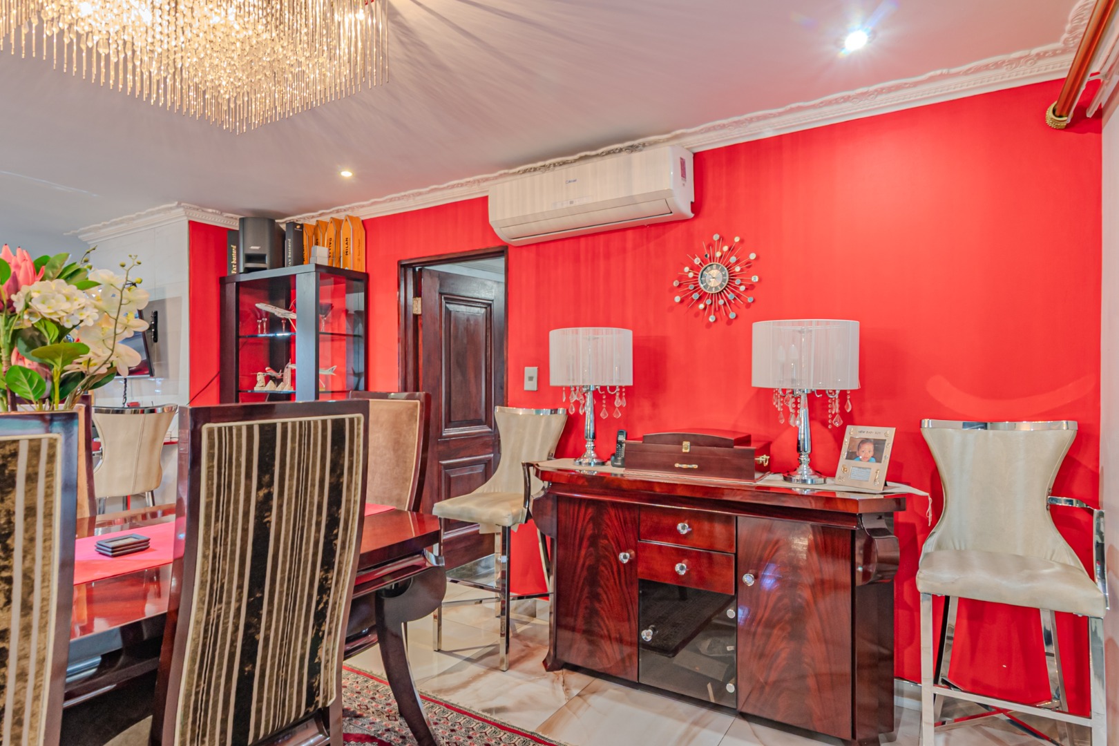Flowing seamlessly from the kitchen, the adjacent dining area opens effortlessly into a spacious entertainment area, creating an ideal setting for