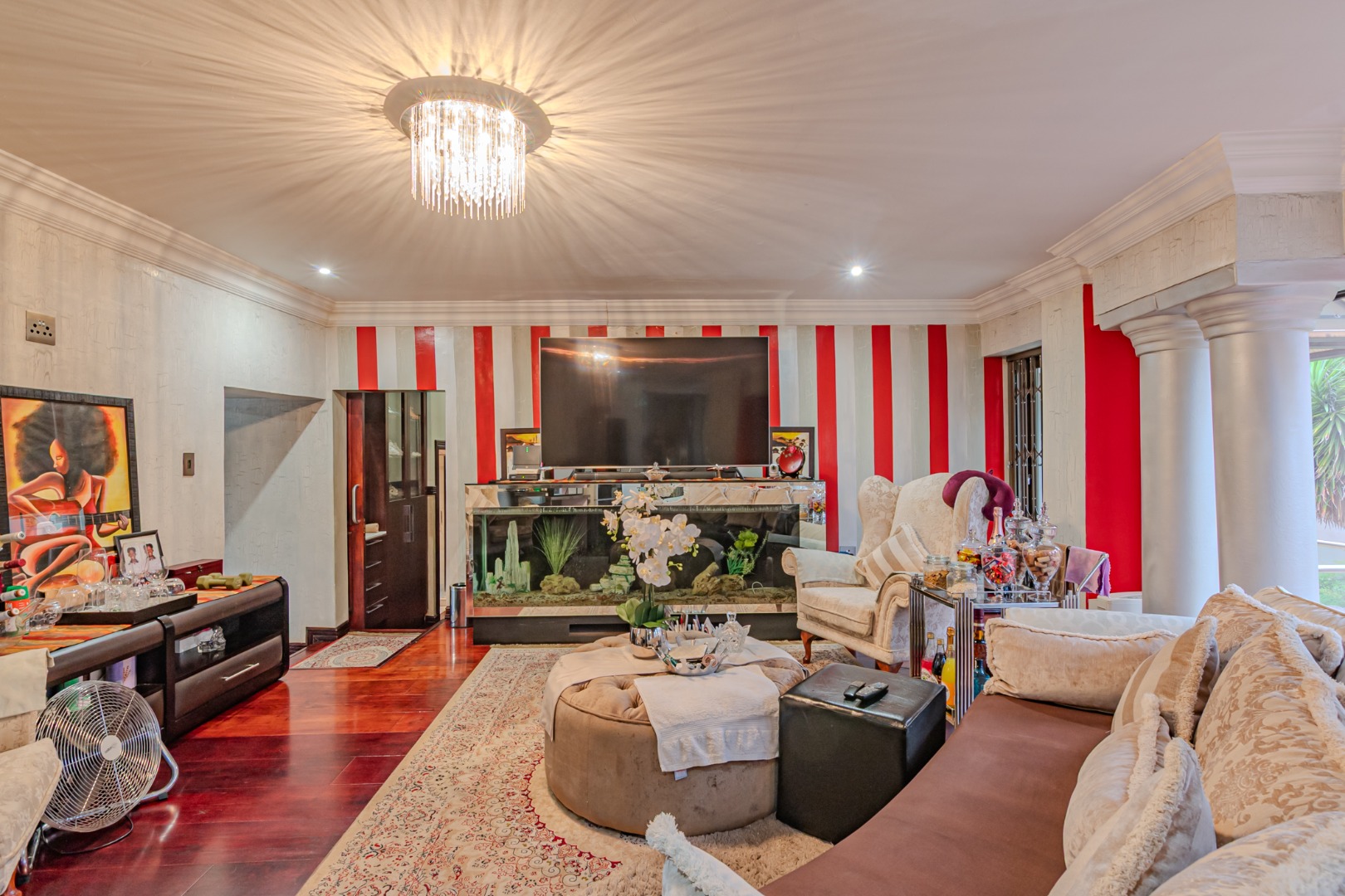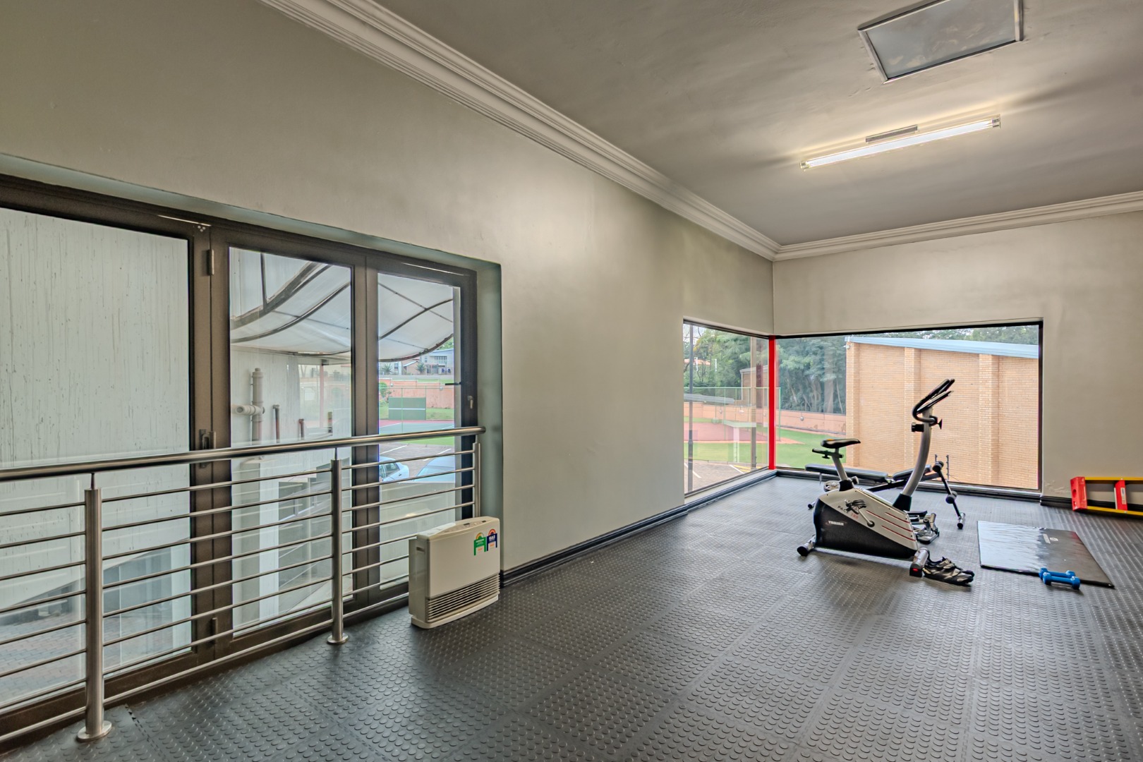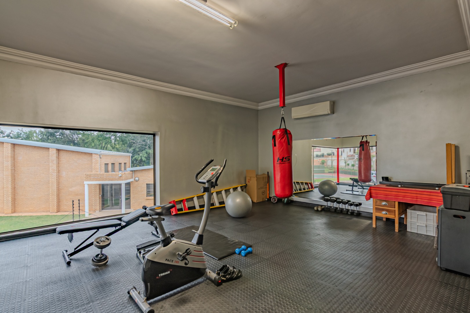 · The home features a spacious gymnasium designed to inspire both wellness and comfort. Filled with abundant natural light from large windows.