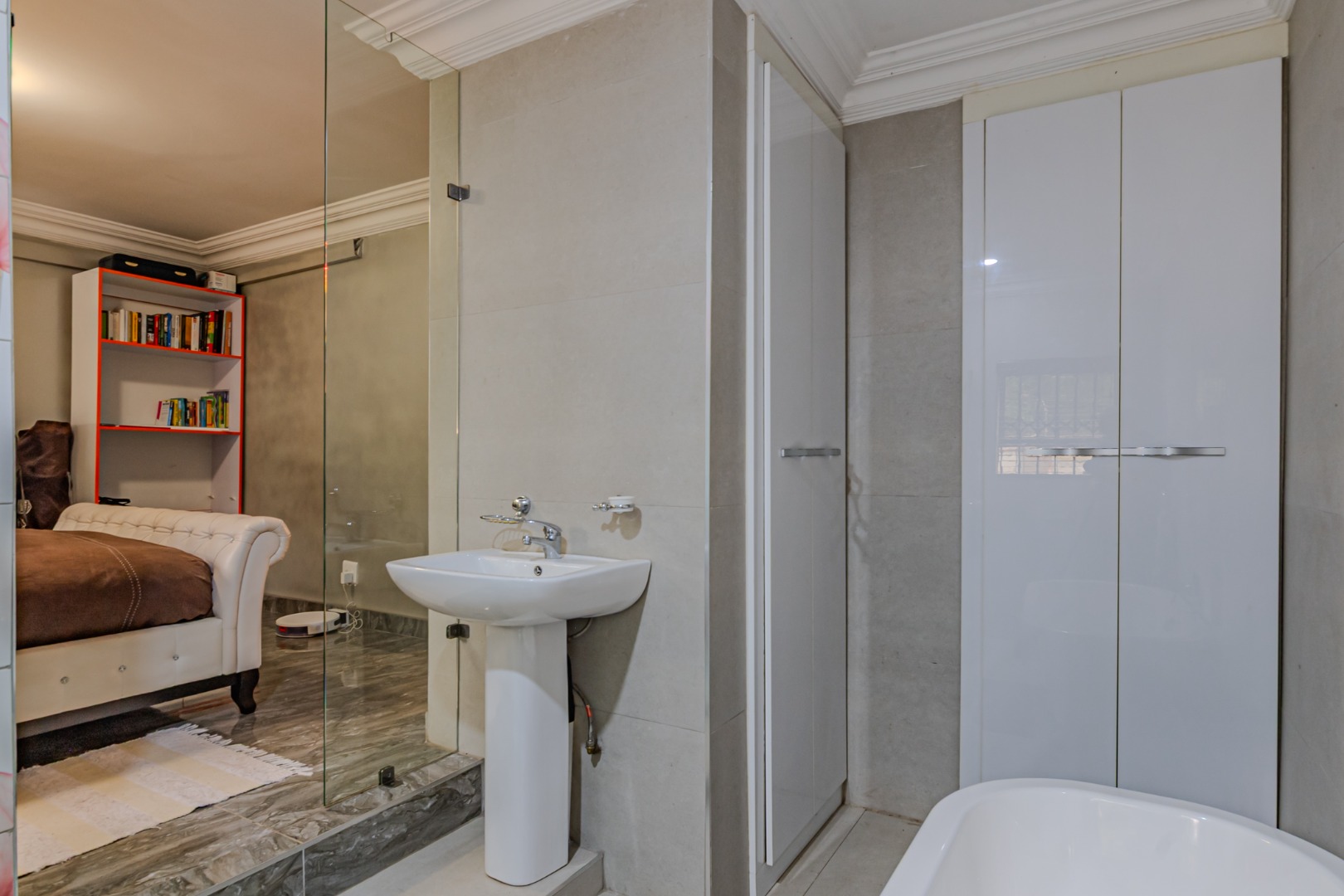 of the space. Blending elegance, comfort, and functionality, the bathroom offers a spa-like atmosphere—perfect for transforming everyday routines into