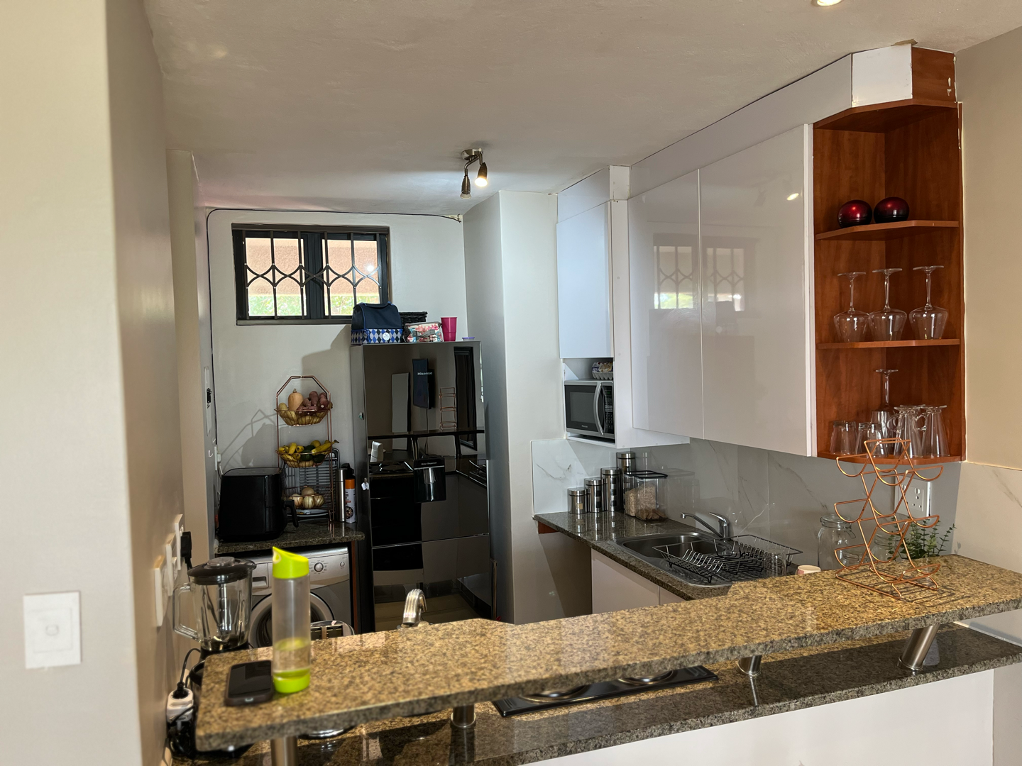 Security is paramount in this gated community, offering peace of mind with 24-hour security and a dedicated security post. The apartment is further secured with burglar bars and a security gate, while a satellite dish ensures entertainment connectivity.