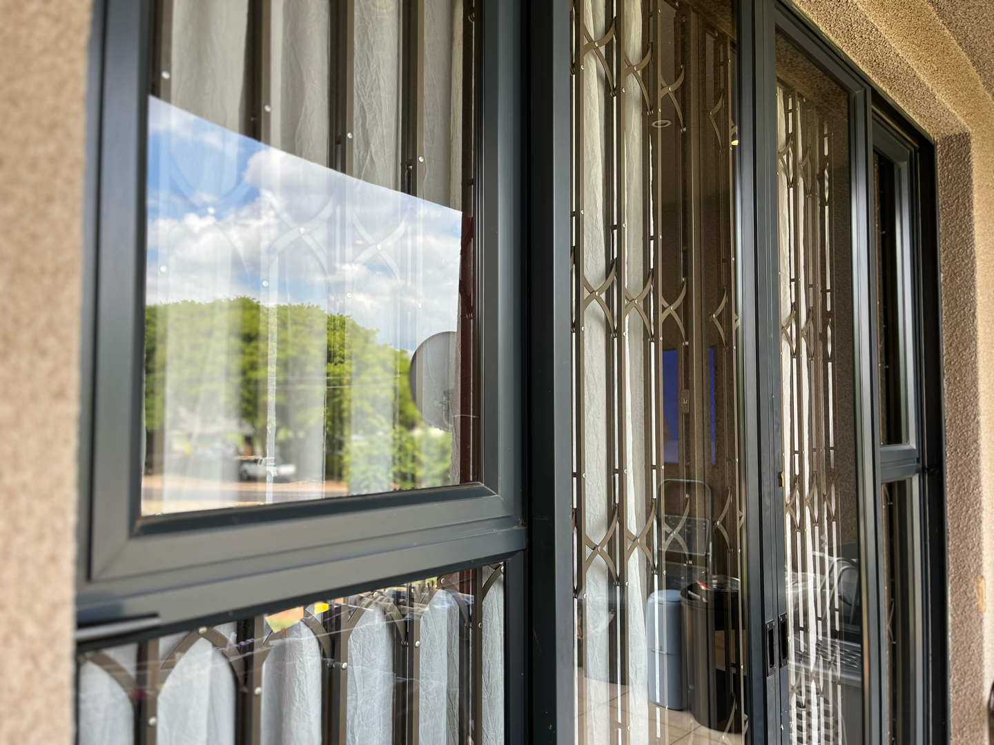 Security is paramount in this gated community, offering peace of mind with 24-hour security and a dedicated security post. The apartment is further secured with burglar bars and a security gate, while a satellite dish ensures entertainment connectivity.