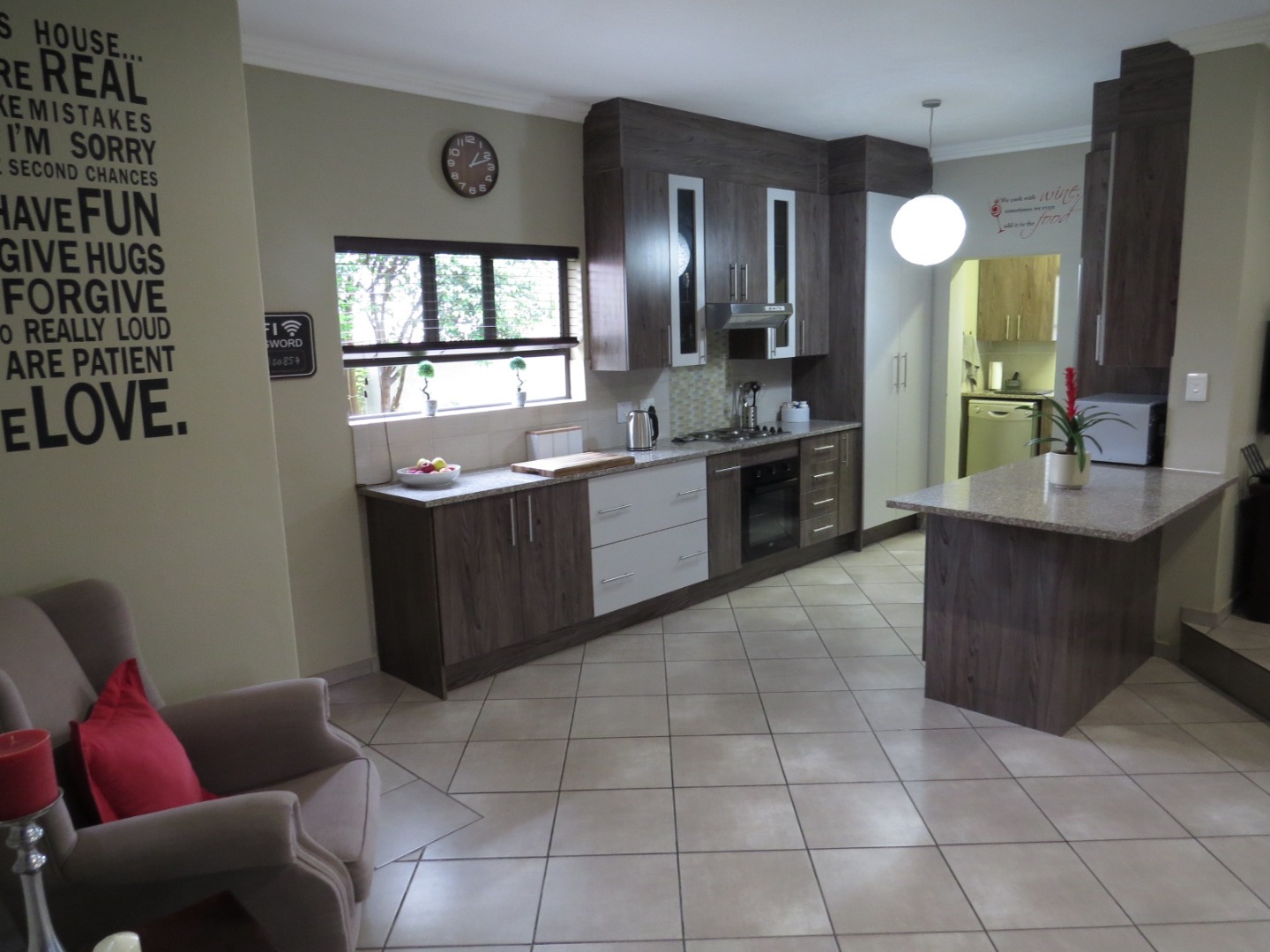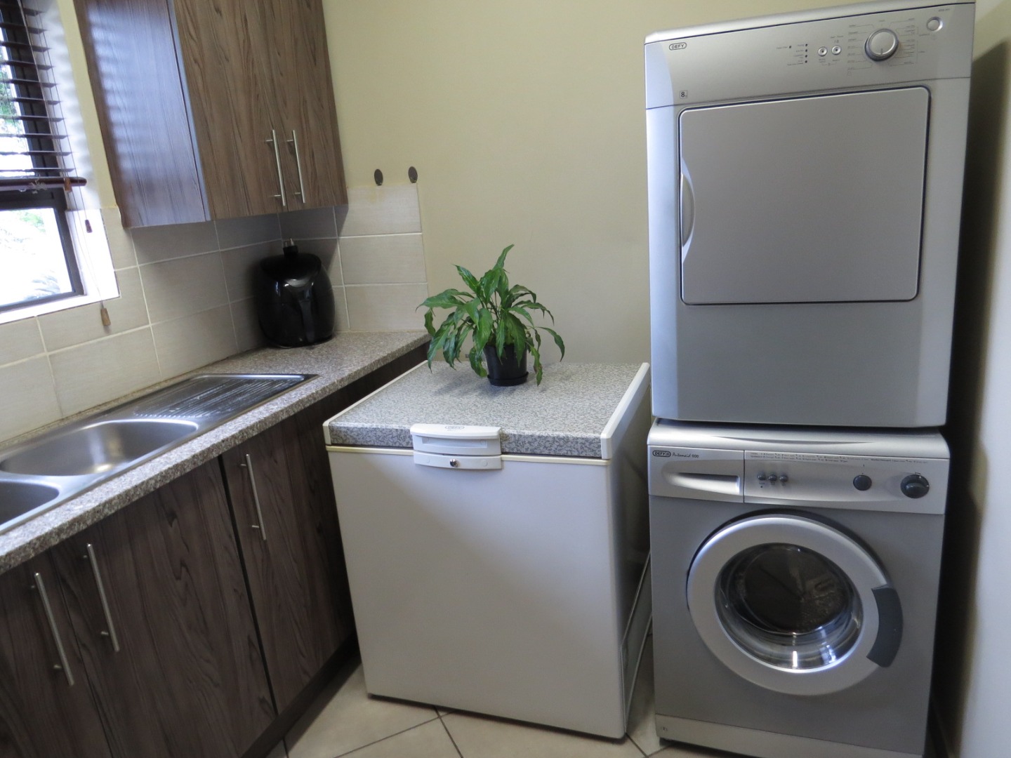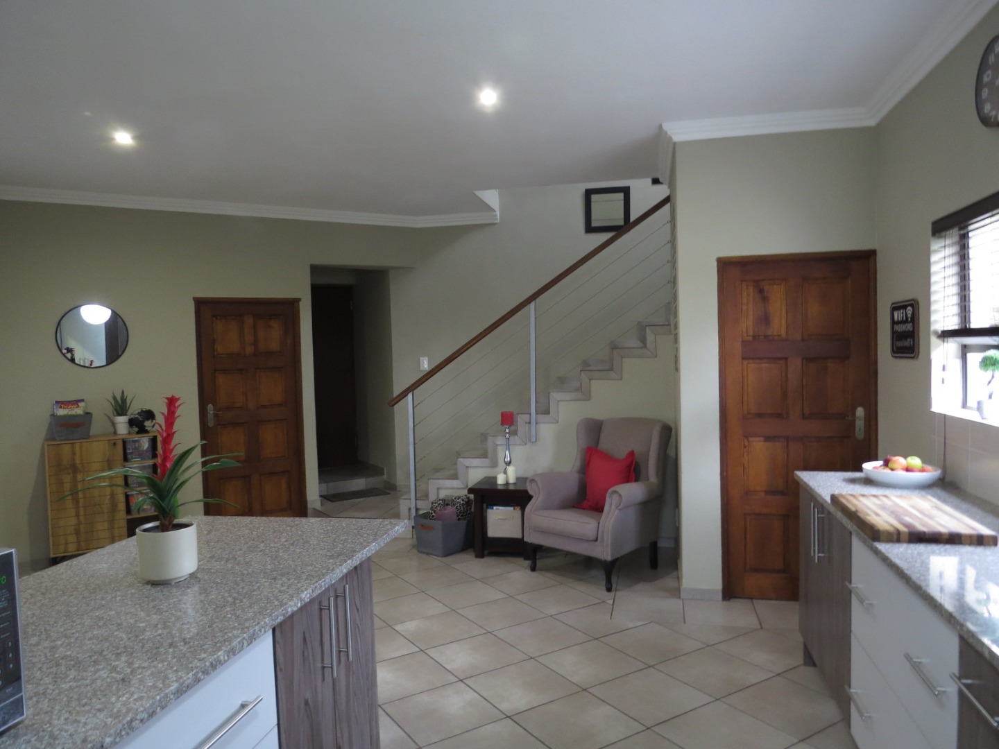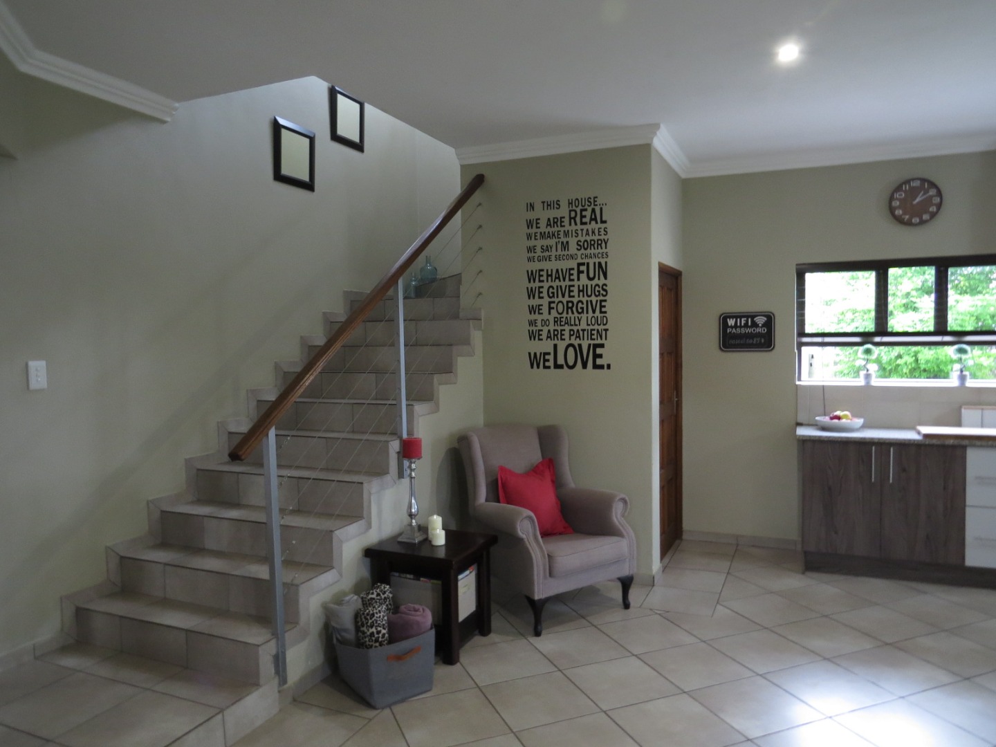 This residence offers three comfortable bedrooms with laminated flooring and well appointed bathrooms, both being full bathrooms of which one is en-suite to the main bedroom. The staircase landing and upstairs passage space is well utilised with a study nook and multi purpose cupboard.