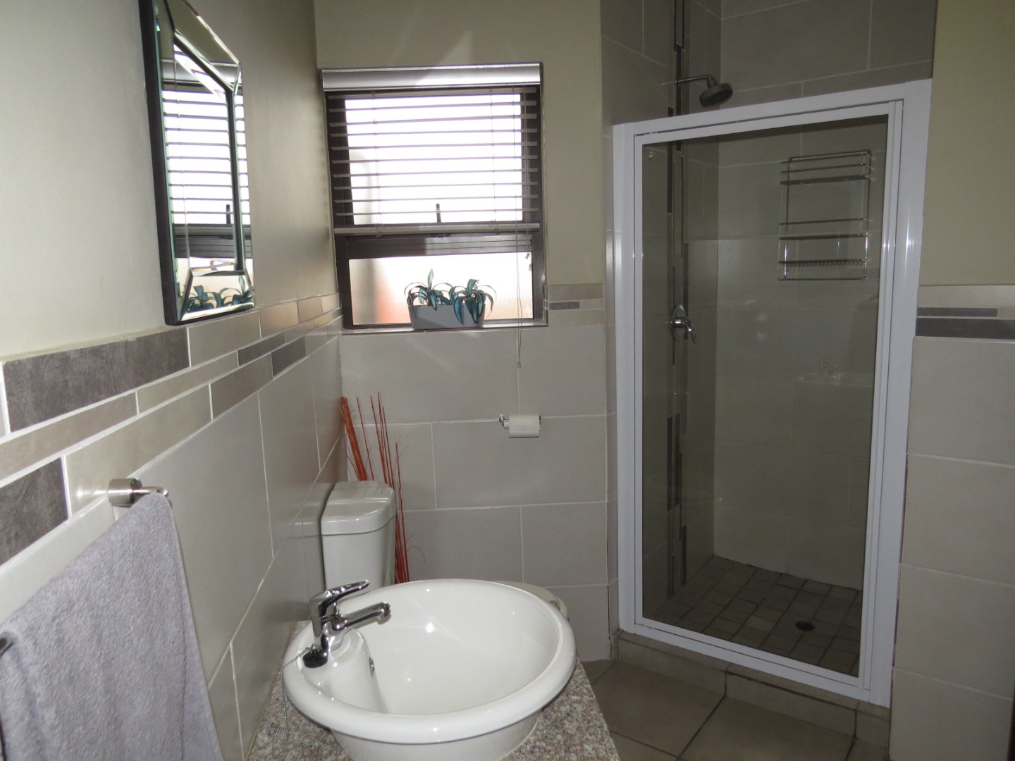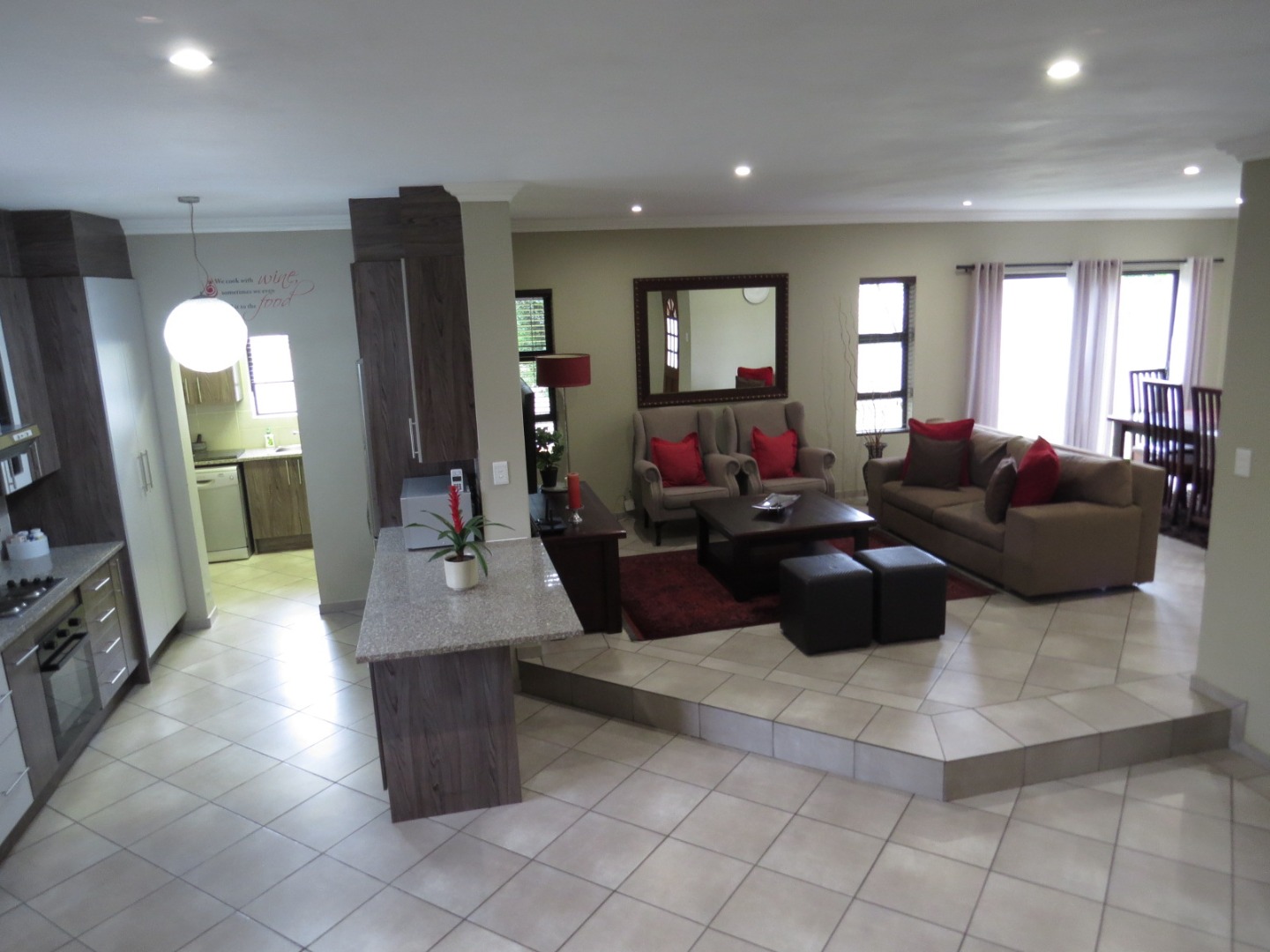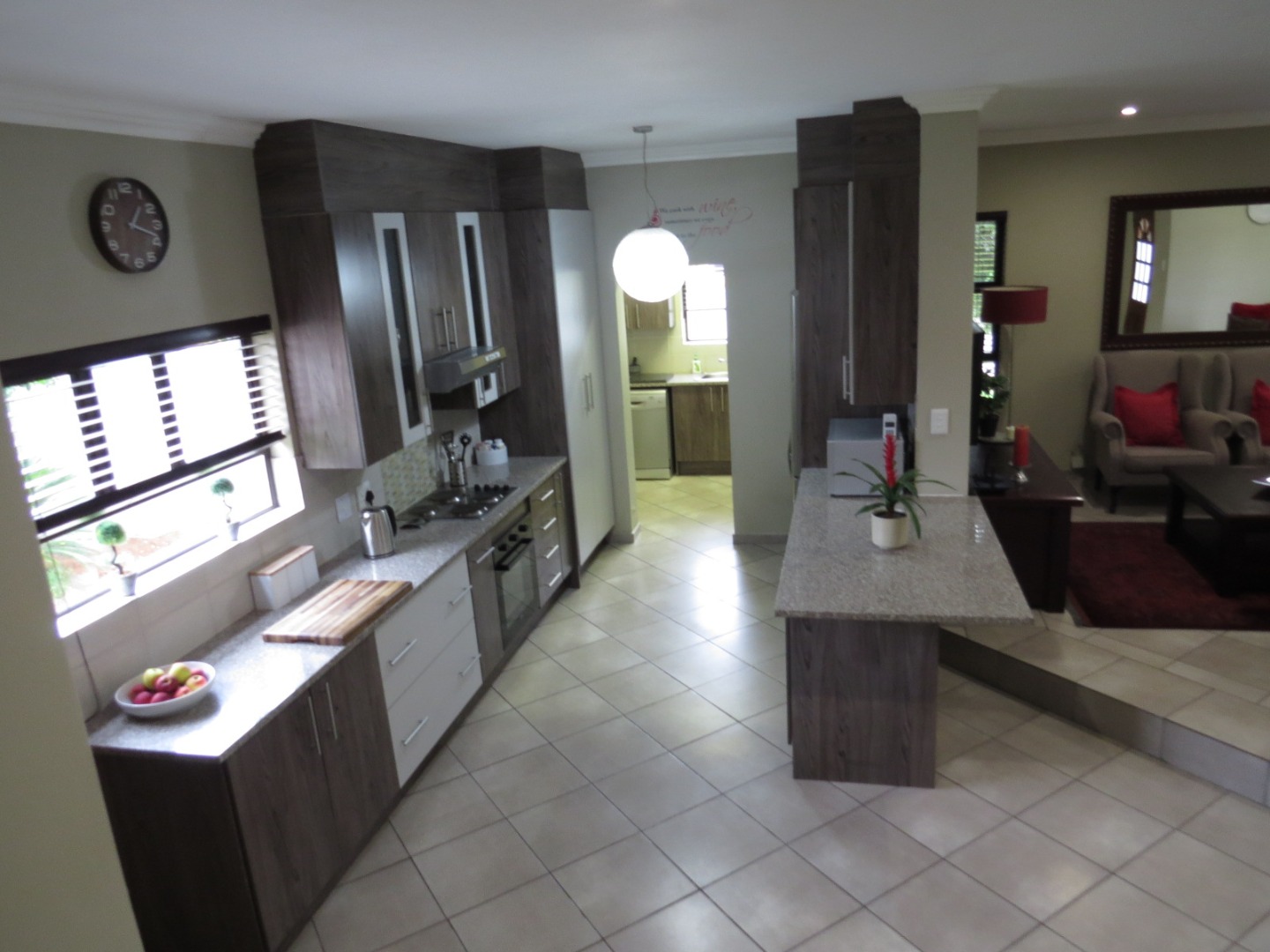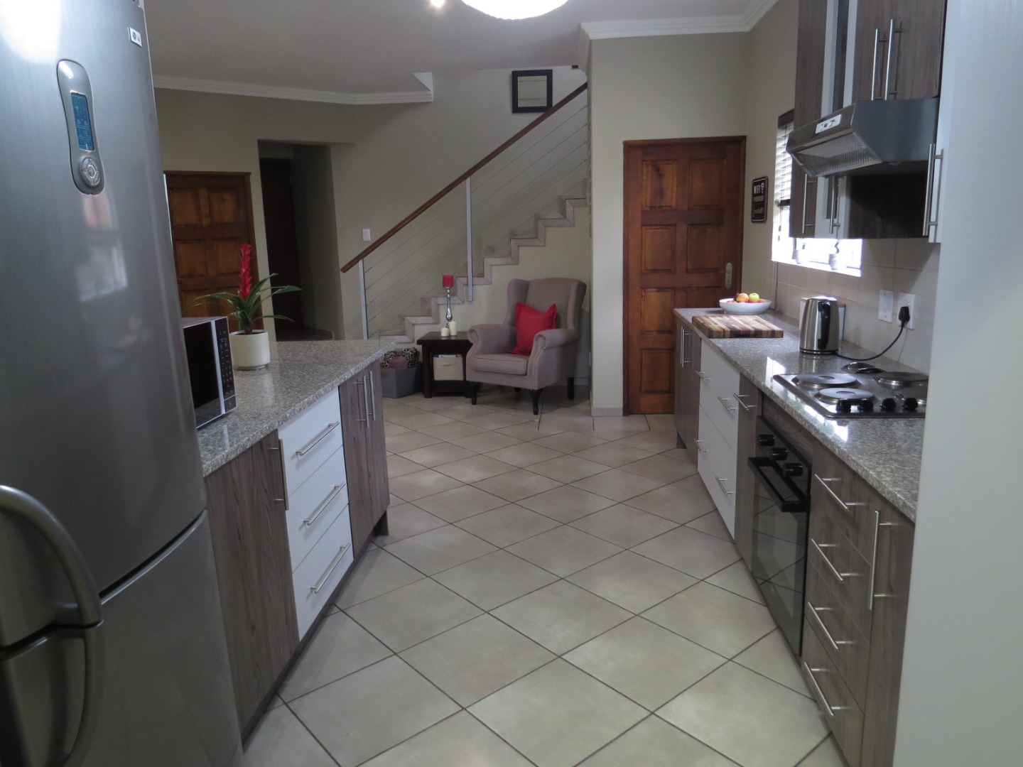 This residence offers three comfortable bedrooms with laminated flooring and well appointed bathrooms, both being full bathrooms of which one is en-suite to the main bedroom. The staircase landing and upstairs passage space is well utilised with a study nook and multi purpose cupboard.