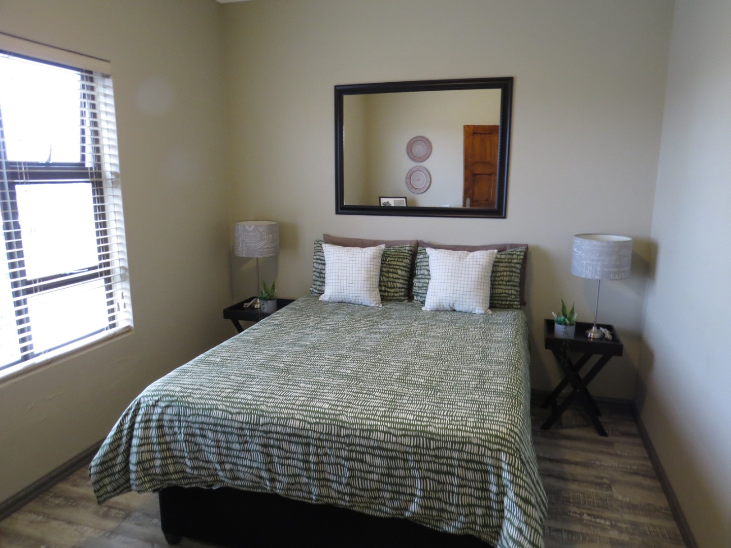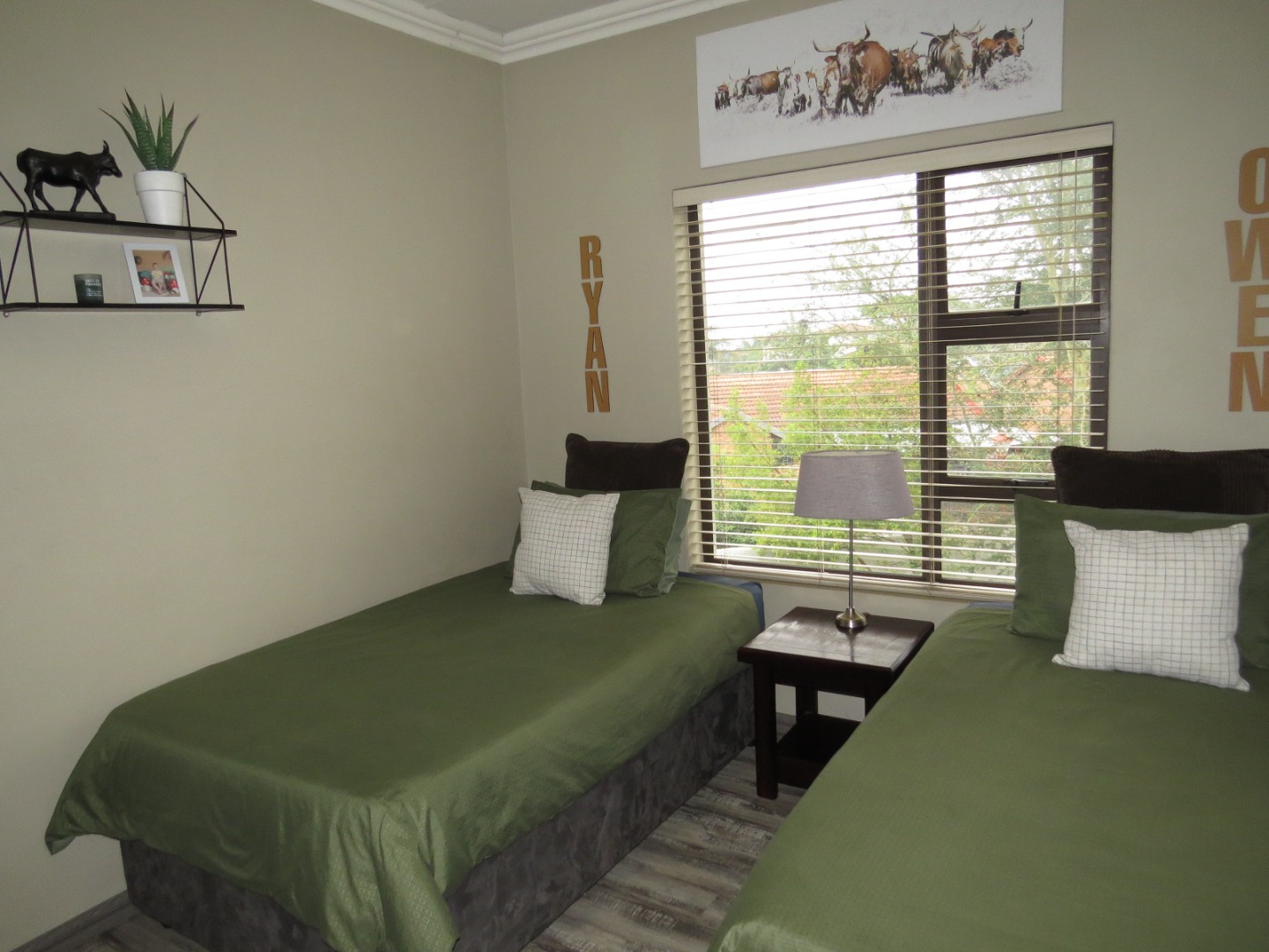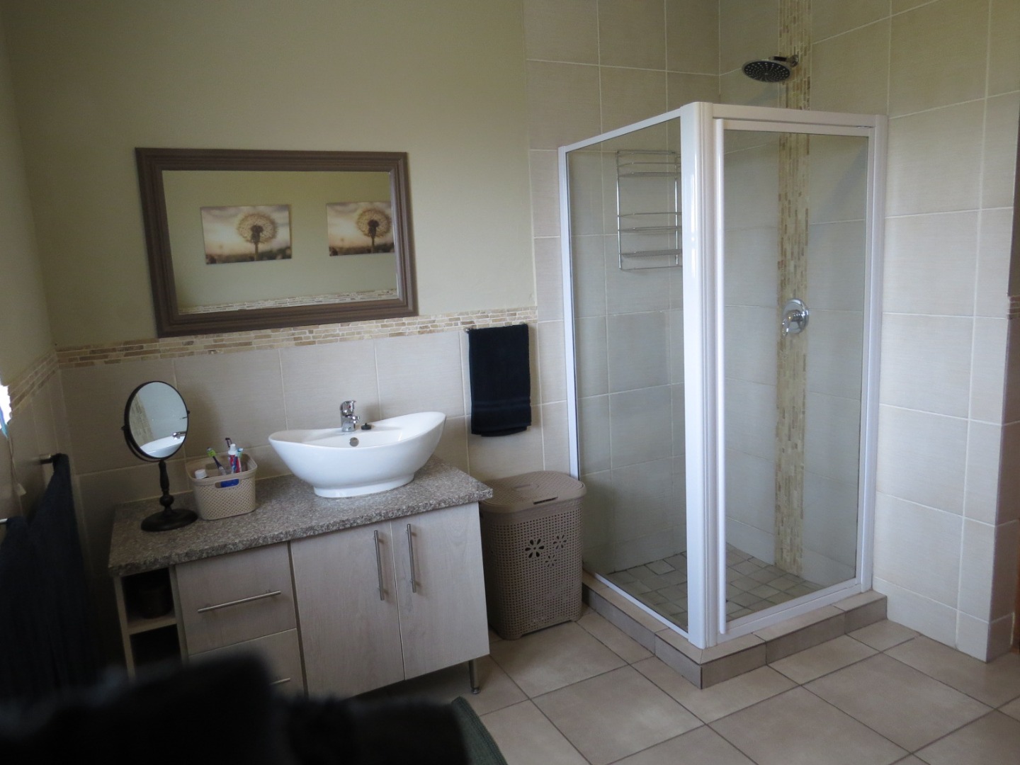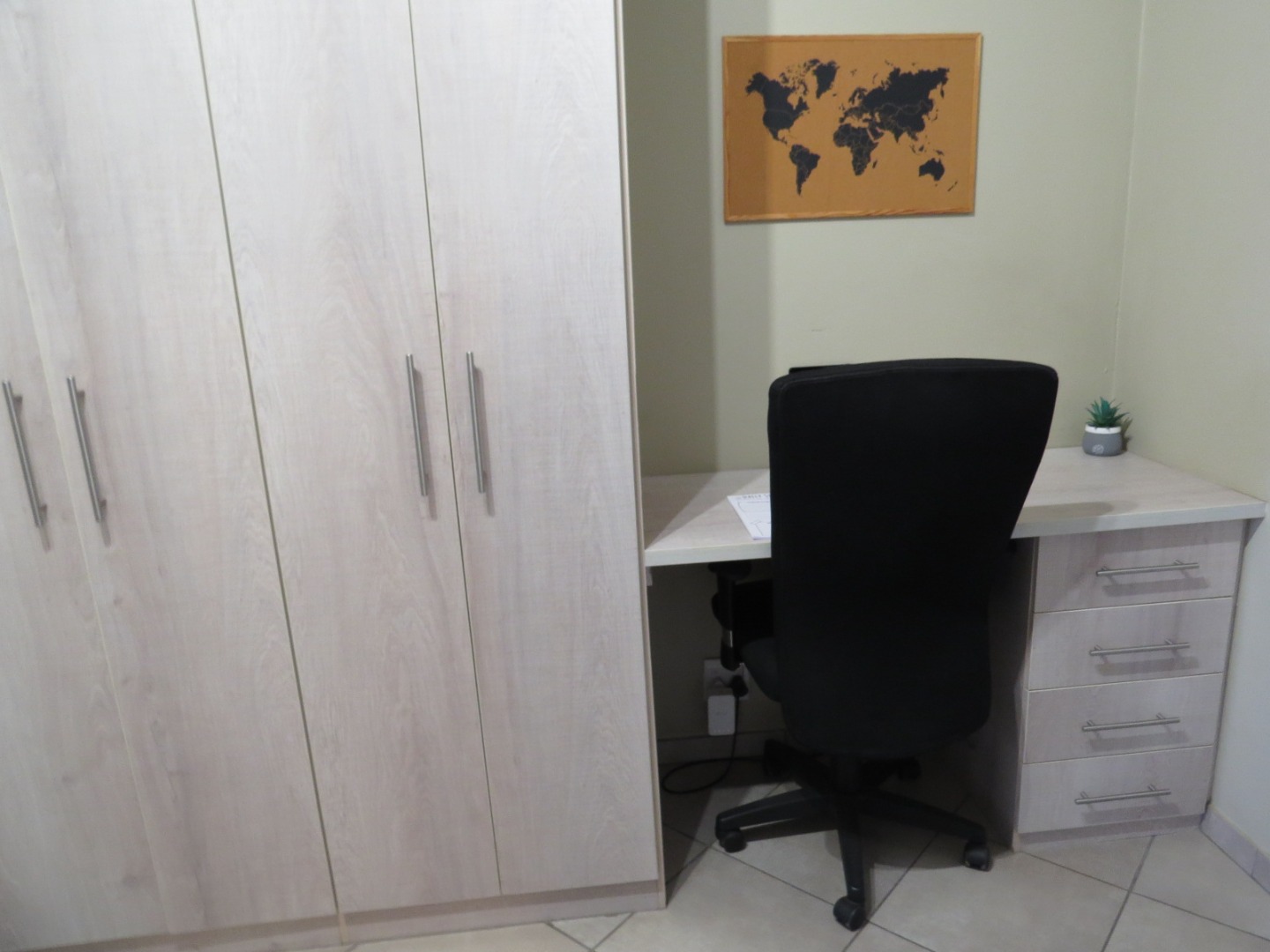This residence offers three comfortable bedrooms with laminated flooring and well appointed bathrooms, both being full bathrooms of which one is en-suite to the main bedroom. The staircase landing and upstairs passage space is well utilised with a study nook and multi purpose cupboard.