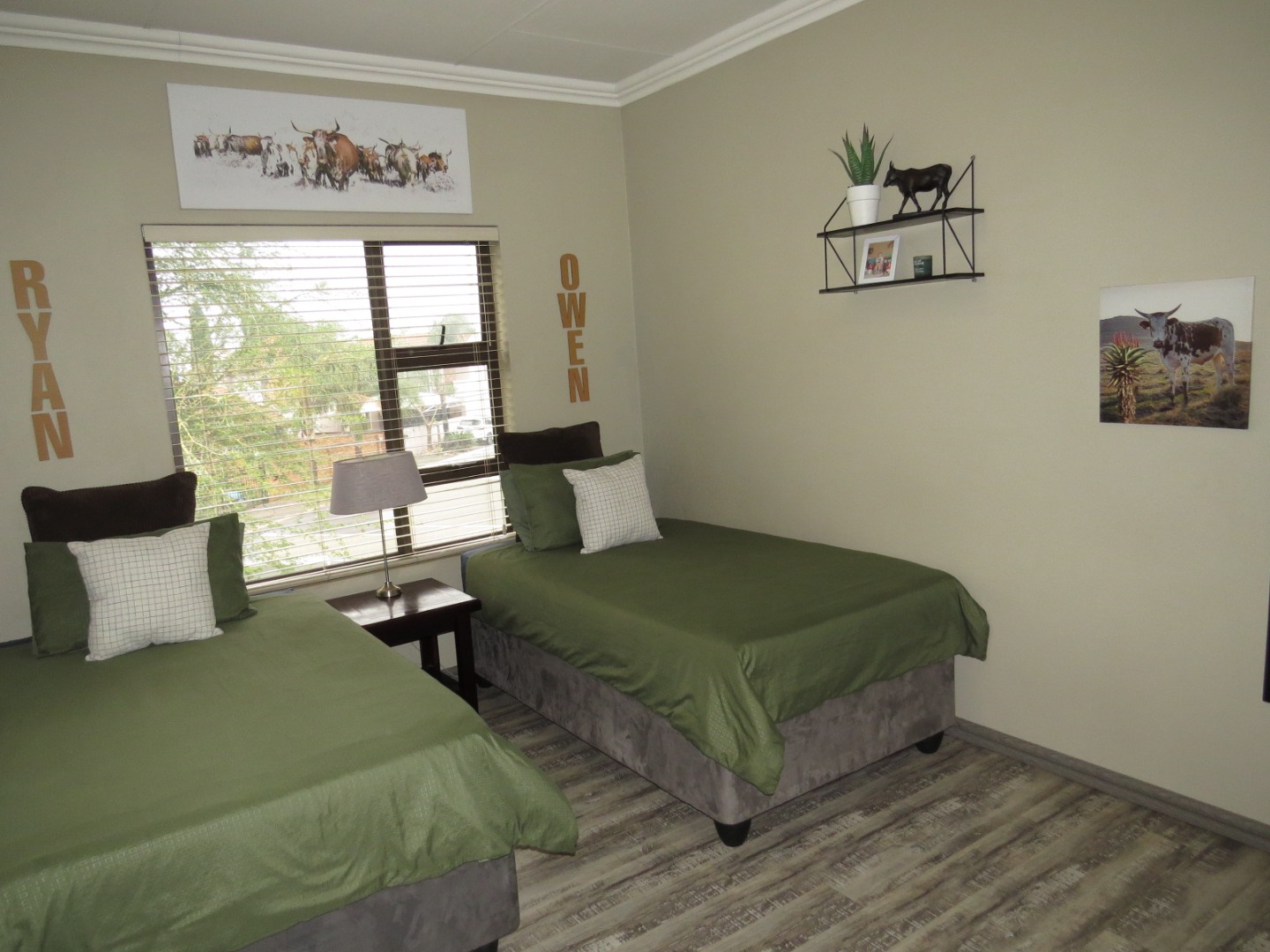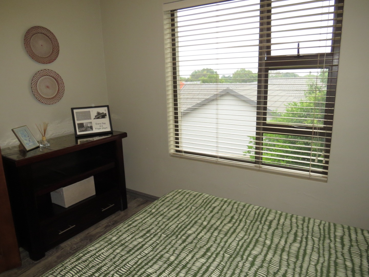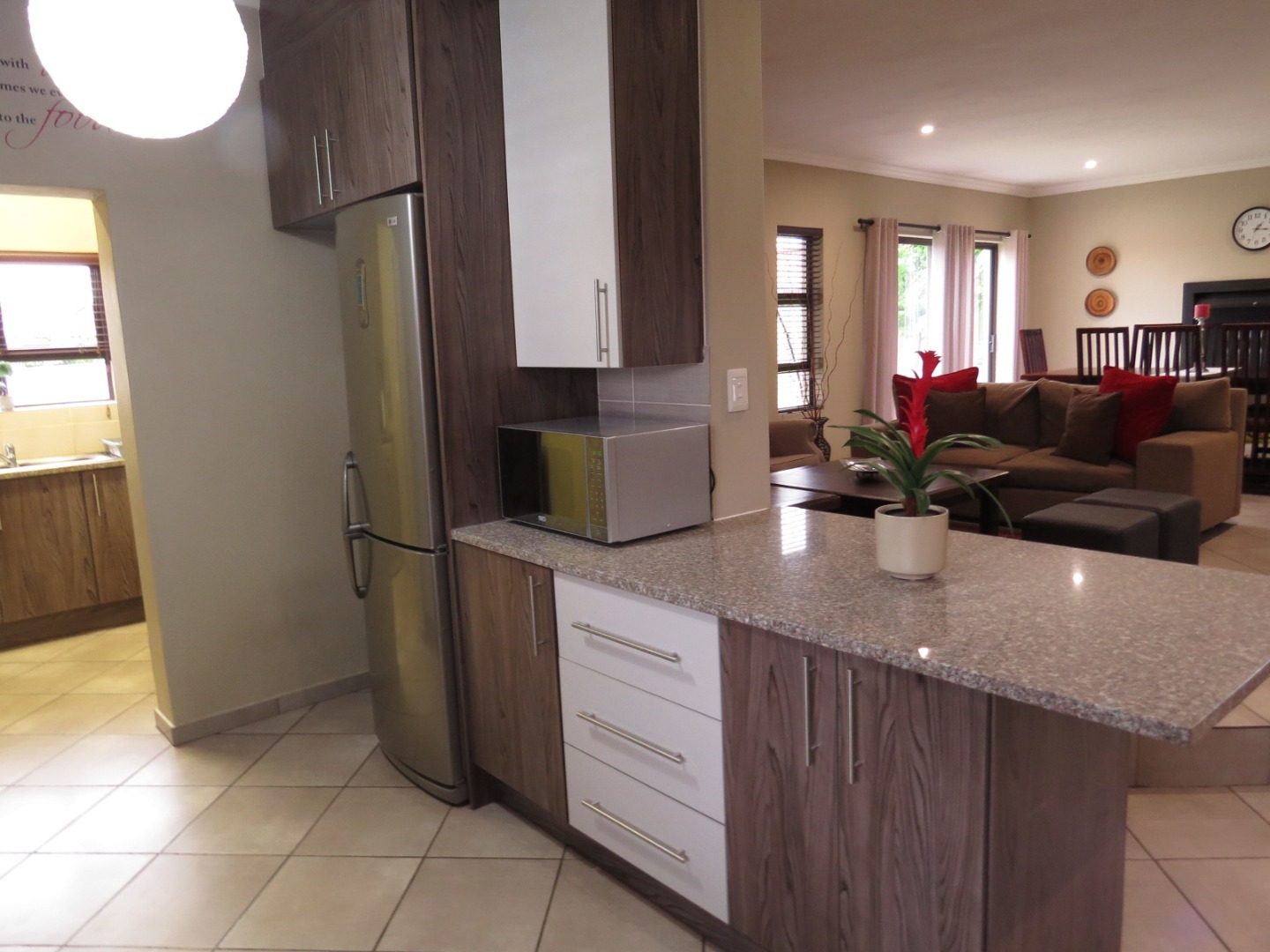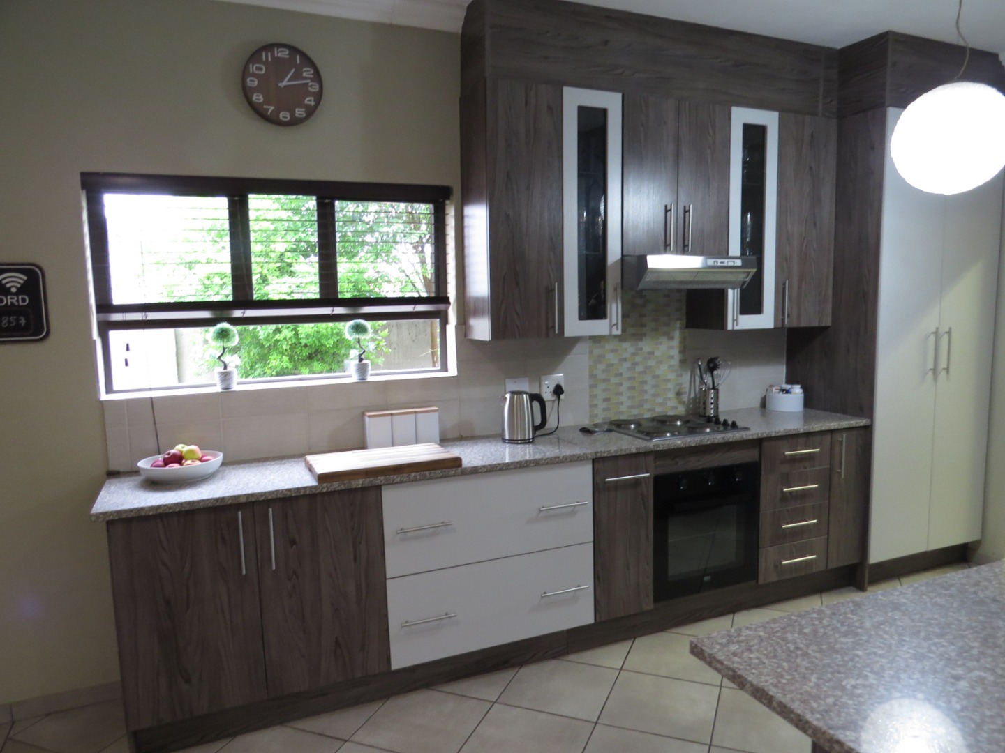 This residence offers three comfortable bedrooms with laminated flooring and well appointed bathrooms, both being full bathrooms of which one is en-suite to the main bedroom. The staircase landing and upstairs passage space is well utilised with a study nook and multi purpose cupboard.