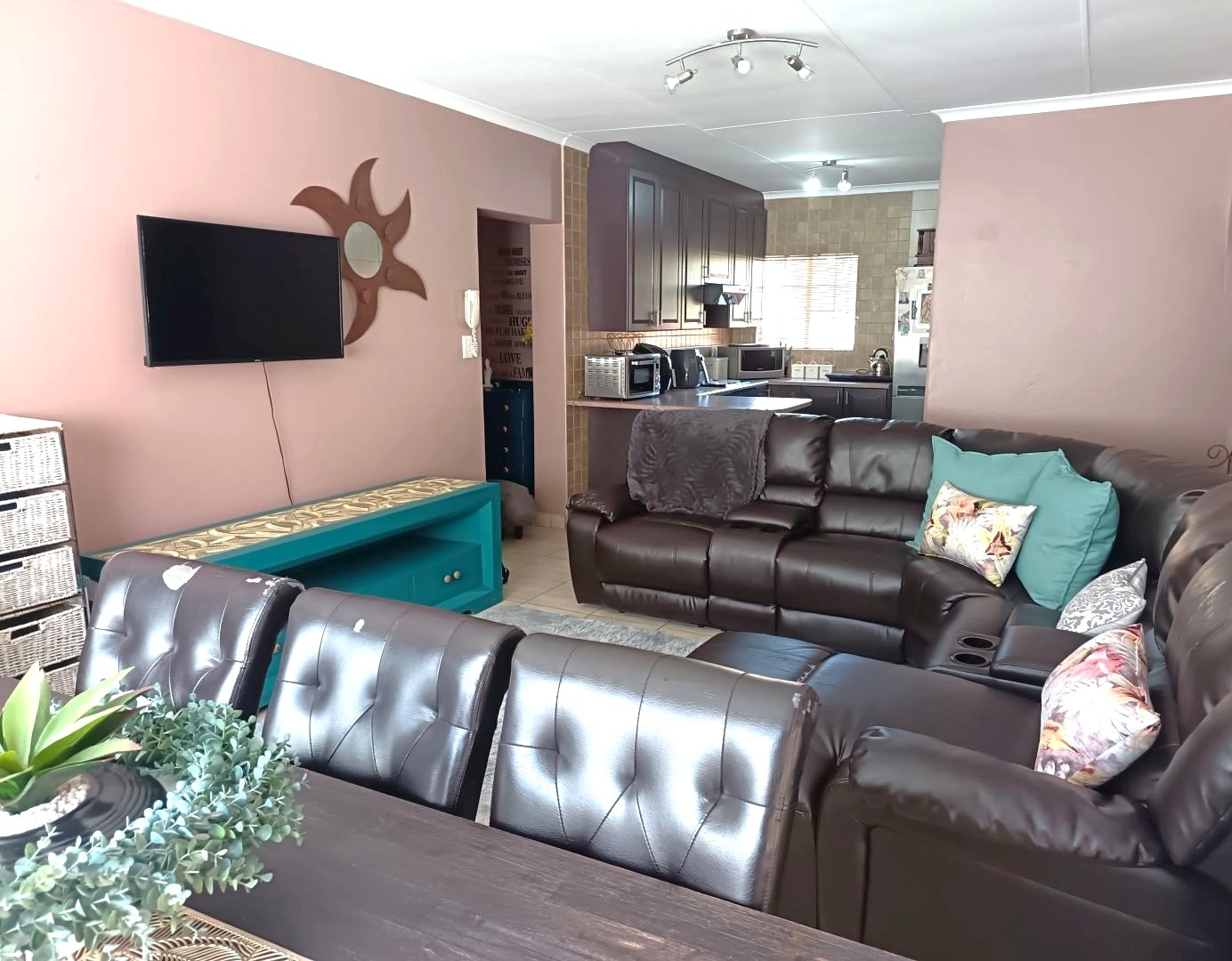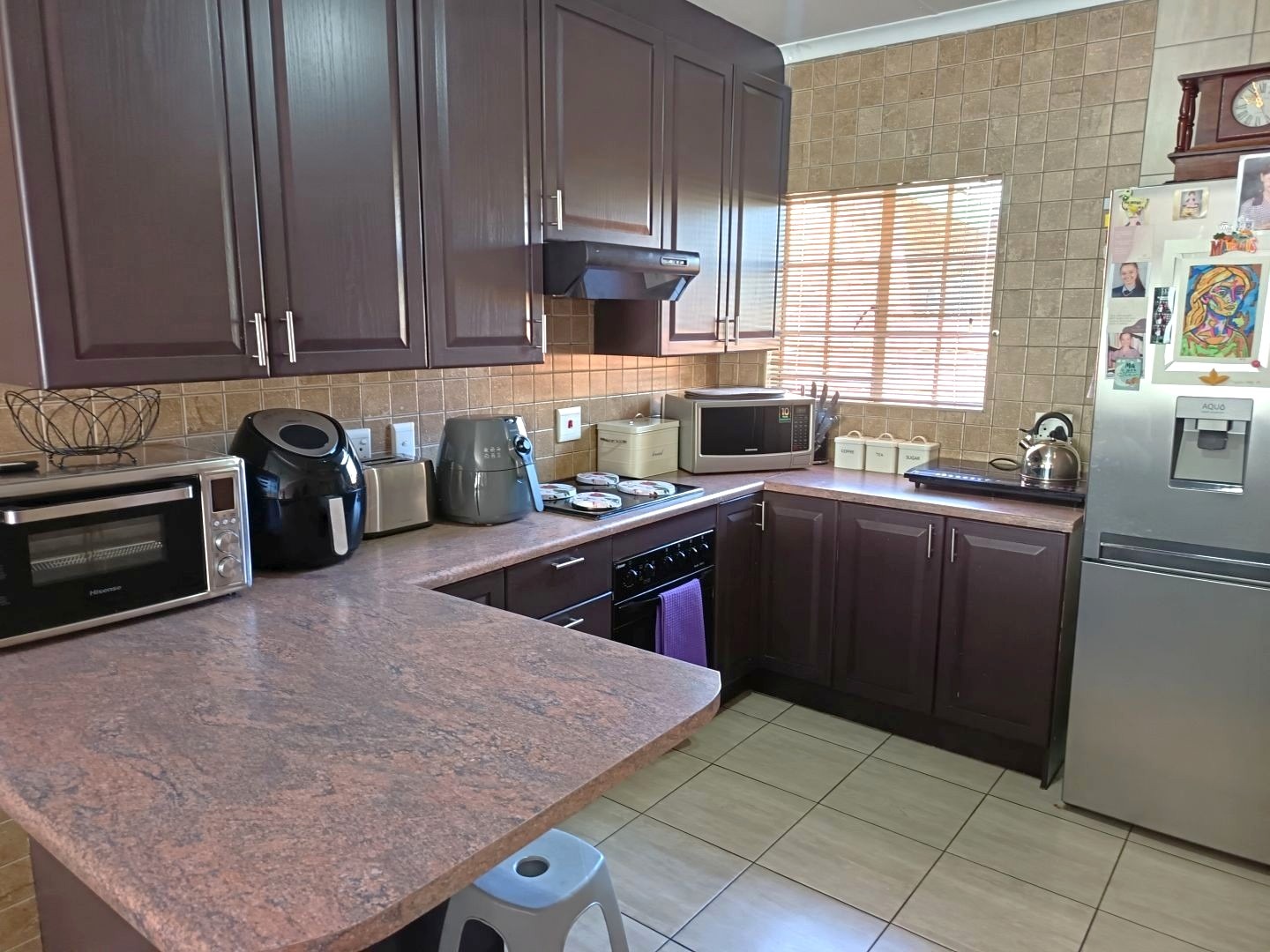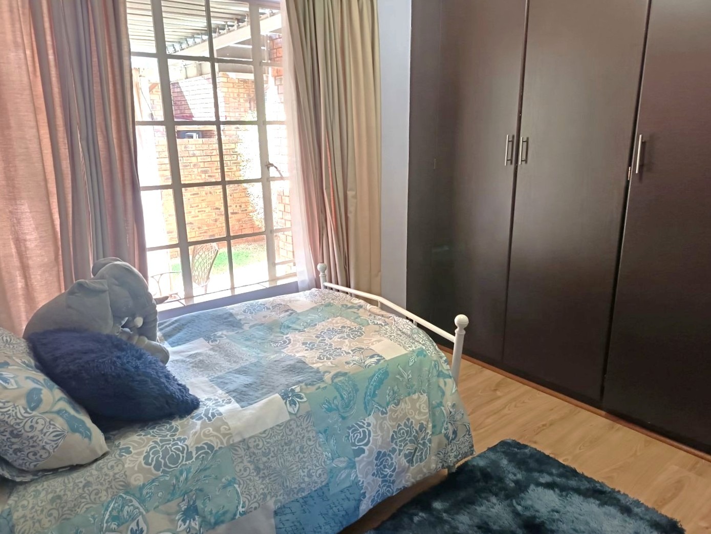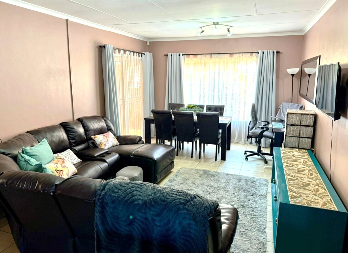 Discover this inviting 3-bedroom, 2-bathroom home situated within a secure estate in Rooihuiskraal North, Centurion. Spanning 145 square meters, this residence offers a comfortable and functional living environment ideal for families or professionals. The interior features an open-plan layout, seamlessly connecting the lounge, dining room, and a well-appointed kitchen, creating an expansive feel perfect for both daily living and entertaining. One of the two bathrooms is an en-suite, providing a private retreat within the main bedroom. Step outside to enjoy the private patio and a well-maintained garden, offering a tranquil space for relaxation or outdoor activities. The property provides ample parking with two garages and three additional parking spaces, ensuring convenience for residents and guests alike. Pets are allowed, making this a welcoming home for your furry companions. Security is a paramount feature of this estate, boasting 24-hour security, a dedicated security post, and an access gate. Further enhancing peace of mind are electric fencing, burglar bars, a security gate, and a totally walled perimeter, ensuring a safe living environment. The property also benefits from a scenic view, adding to its appeal. Practical elements such as paving and a well-defined driveway contribute to the property's neat kerb appeal. Rooihuiskraal North is a desirable suburb in Centurion, South Africa, known for its convenient location and family-friendly atmosphere, offering easy access to local amenities and major routes. Key Features: * 3 Bedrooms, 2 Bathrooms (1 En-suite) * 145 sqm Floor Size * Open-plan Lounge, Dining Room, Kitchen * Private Patio and Garden * 2 Garages, 3 Parking Spaces * Pet-Friendly * Secure Estate with 24-Hour Security * Electric Fencing, Burglar Bars, Security Gate * Scenic View