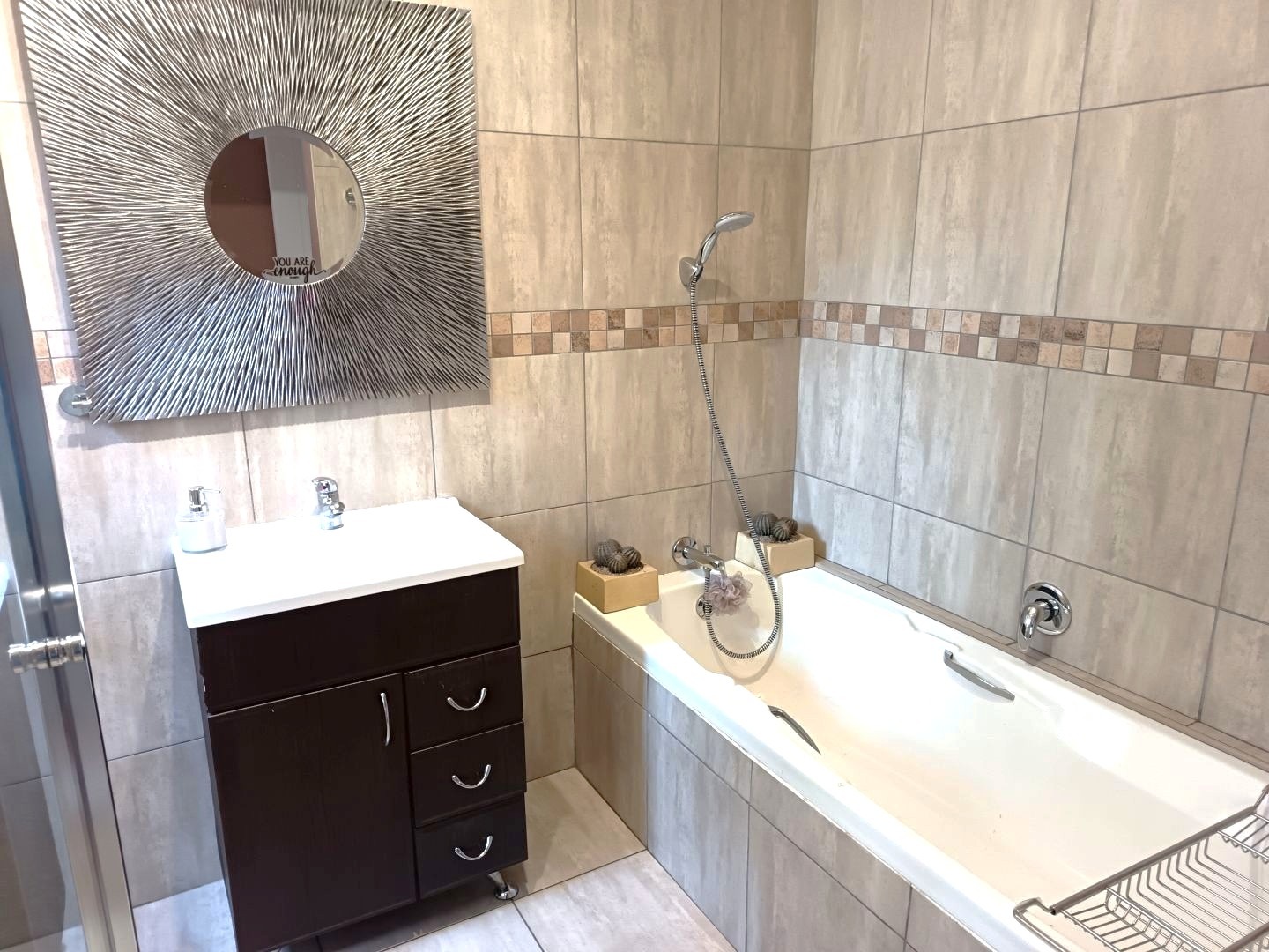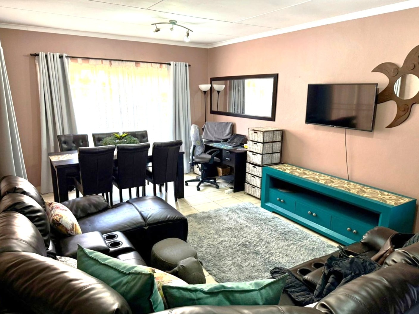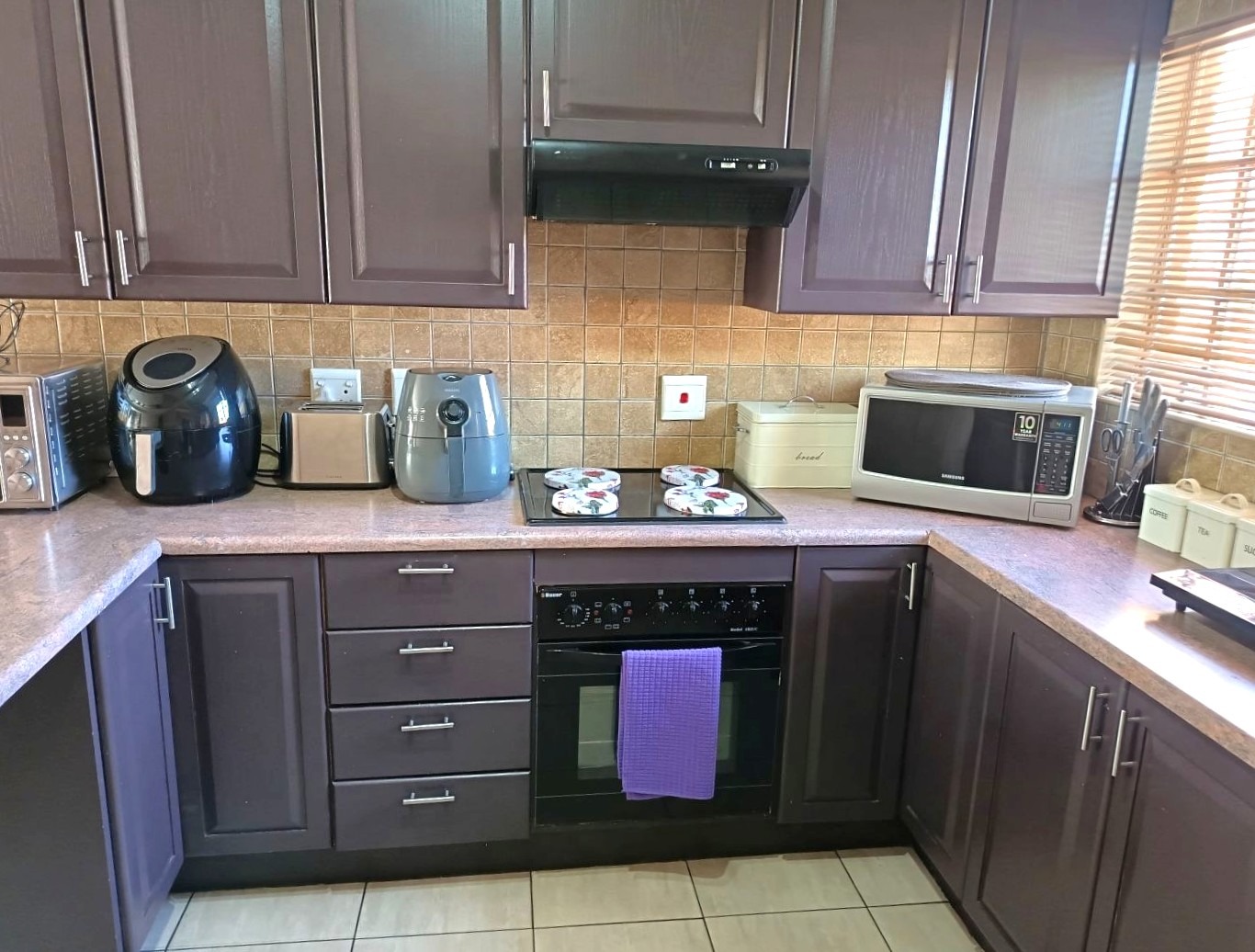 Discover this inviting 3-bedroom, 2-bathroom home situated within a secure estate in Rooihuiskraal North, Centurion. Spanning 145 square meters, this residence offers a comfortable and functional living environment ideal for families or professionals. The interior features an open-plan layout, seamlessly connecting the lounge, dining room, and a well-appointed kitchen, creating an expansive feel perfect for both daily living and entertaining. One of the two bathrooms is an en-suite, providing a private retreat within the main bedroom. Step outside to enjoy the private patio and a well-maintained garden, offering a tranquil space for relaxation or outdoor activities. The property provides ample parking with two garages and three additional parking spaces, ensuring convenience for residents and guests alike. Pets are allowed, making this a welcoming home for your furry companions. Security is a paramount feature of this estate, boasting 24-hour security, a dedicated security post, and an access gate. Further enhancing peace of mind are electric fencing, burglar bars, a security gate, and a totally walled perimeter, ensuring a safe living environment. The property also benefits from a scenic view, adding to its appeal. Practical elements such as paving and a well-defined driveway contribute to the property's neat kerb appeal. Rooihuiskraal North is a desirable suburb in Centurion, South Africa, known for its convenient location and family-friendly atmosphere, offering easy access to local amenities and major routes. Key Features: * 3 Bedrooms, 2 Bathrooms (1 En-suite) * 145 sqm Floor Size * Open-plan Lounge, Dining Room, Kitchen * Private Patio and Garden * 2 Garages, 3 Parking Spaces * Pet-Friendly * Secure Estate with 24-Hour Security * Electric Fencing, Burglar Bars, Security Gate * Scenic View