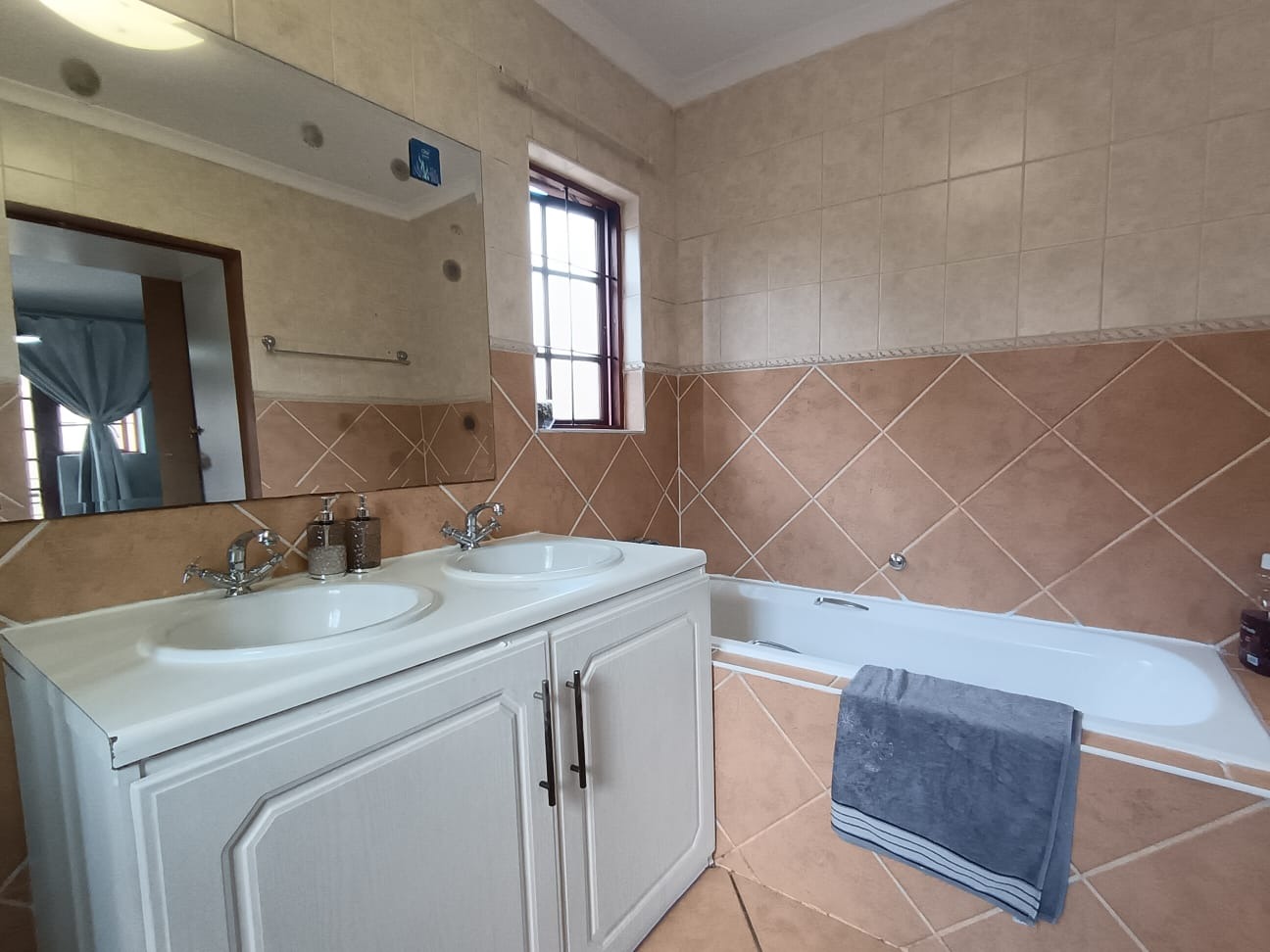 · En-suite bathroom equipped with bath, double basin, shower and toilet
