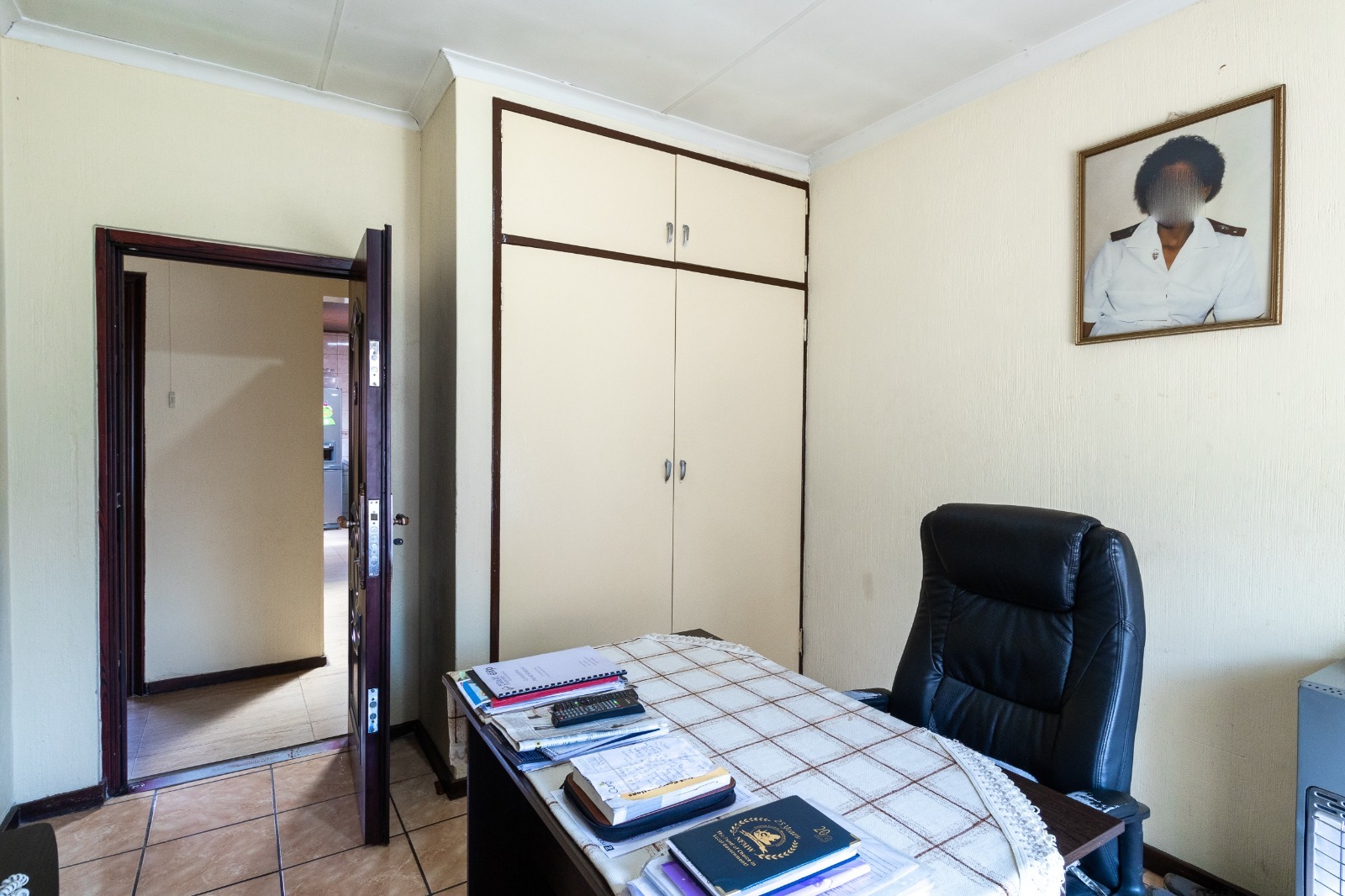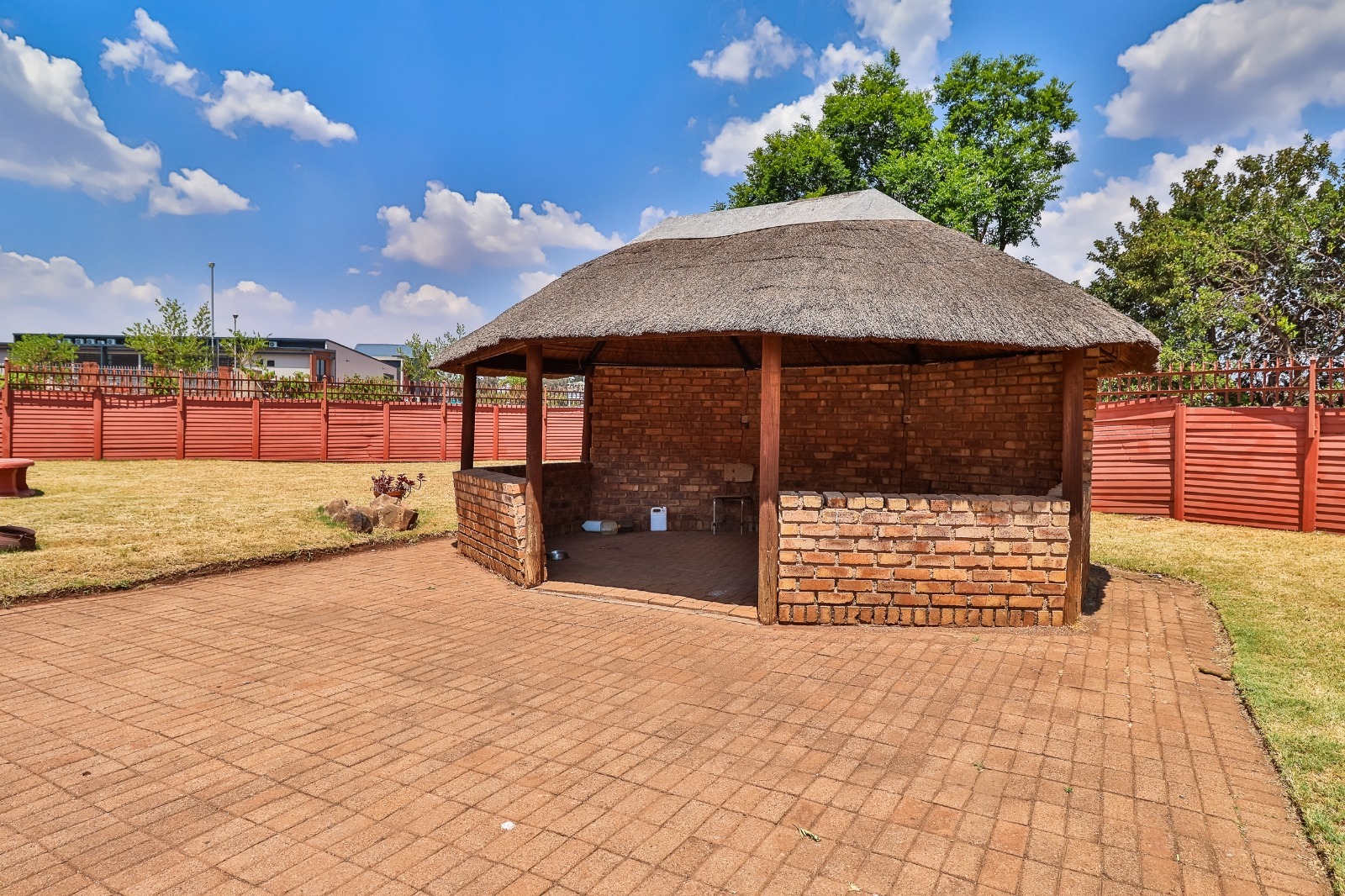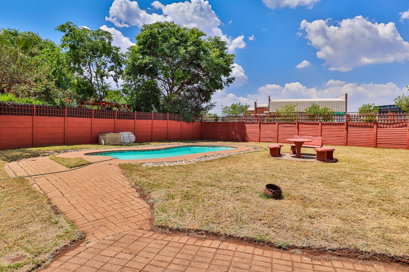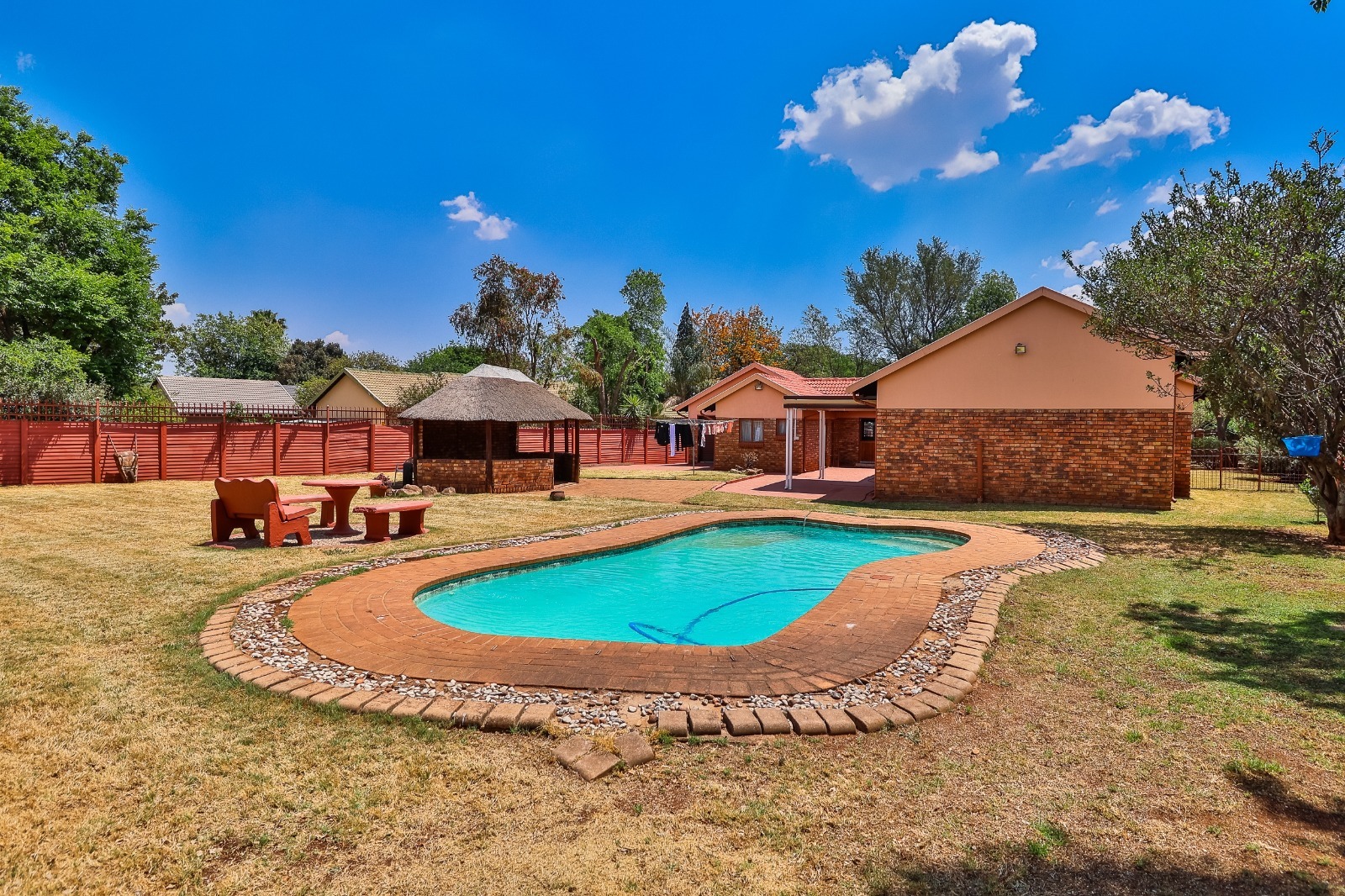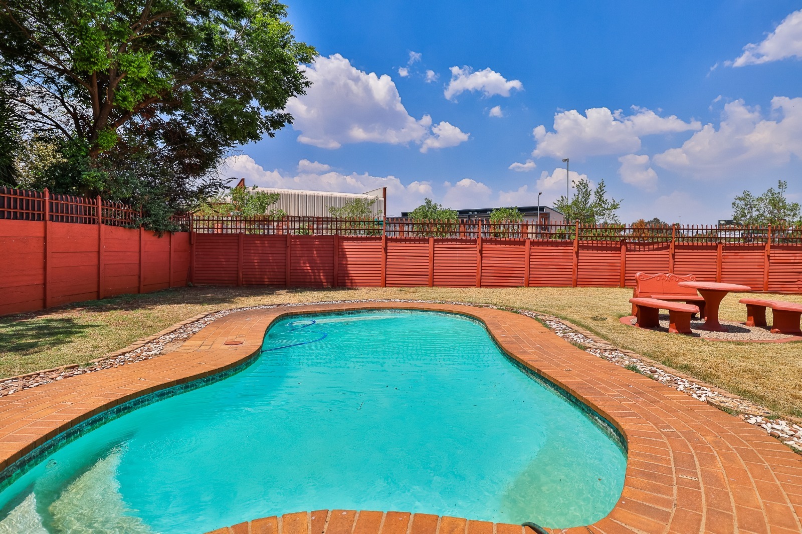 The exterior of this property is equally appealing, offering a private oasis for outdoor enjoyment. A sparkling swimming pool provides a refreshing escape during warmer months, complemented by a charming lapa – perfect for al fresco dining and entertaining. The established garden and paved areas enhance the property's appeal. Security is paramount, with features including an alarm system, access gate, security gate, burglar bars, and a fully walled perimeter, ensuring peace of mind.