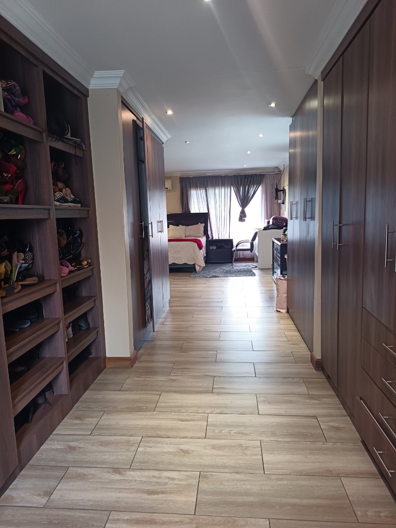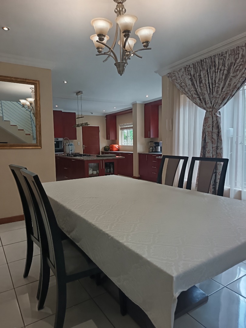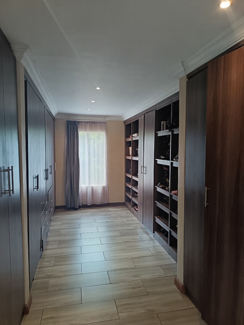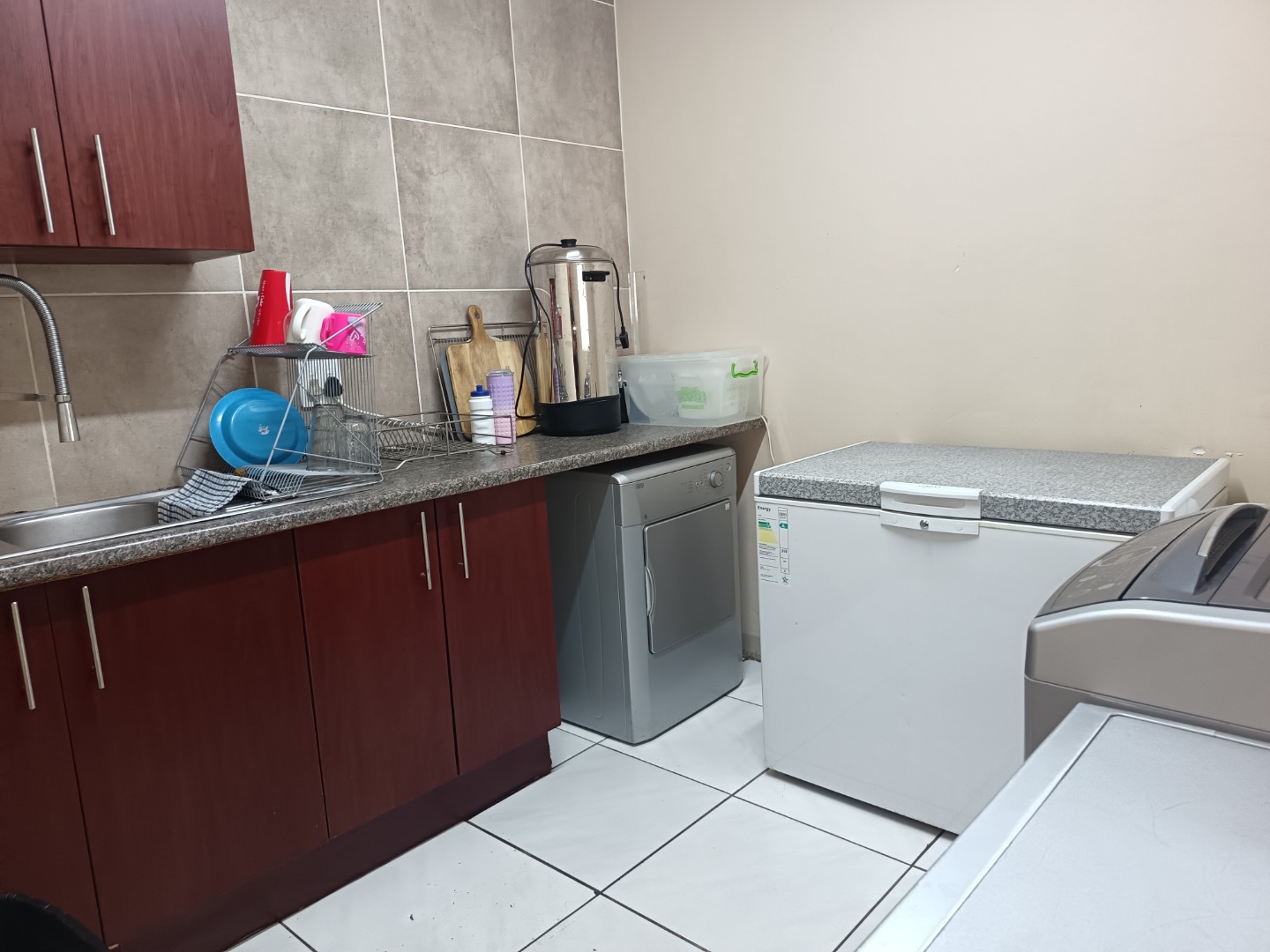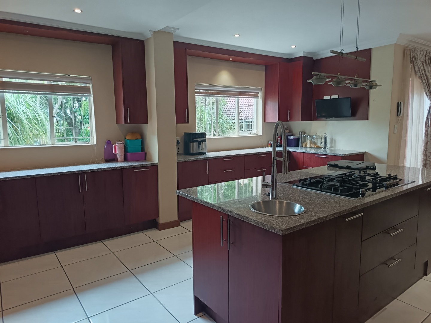 kitchen offers a gas hob with dual electric ovens, complemented by ample designer cupboards and granite countertops throughout. A double scullery and pantry with dedicated water points for appliances are tucked away from the main kitchen, keeping the heart of the home neat and clutter-free.