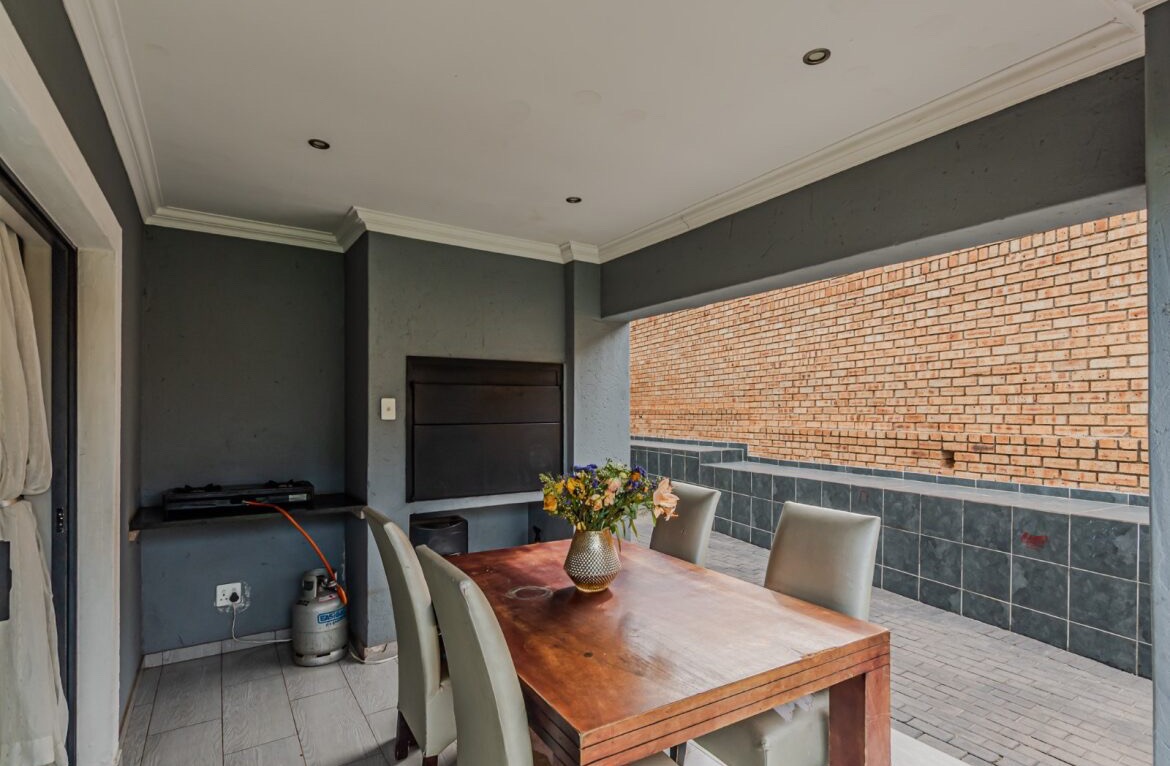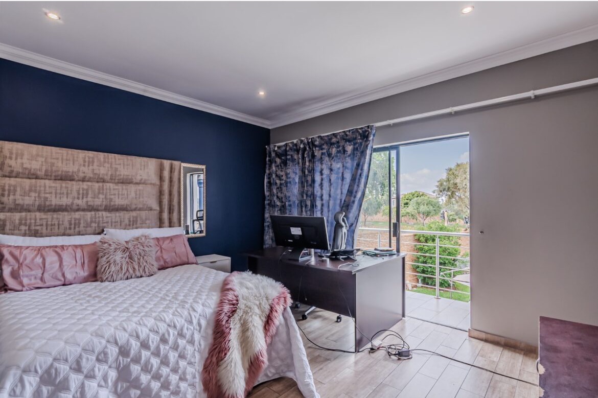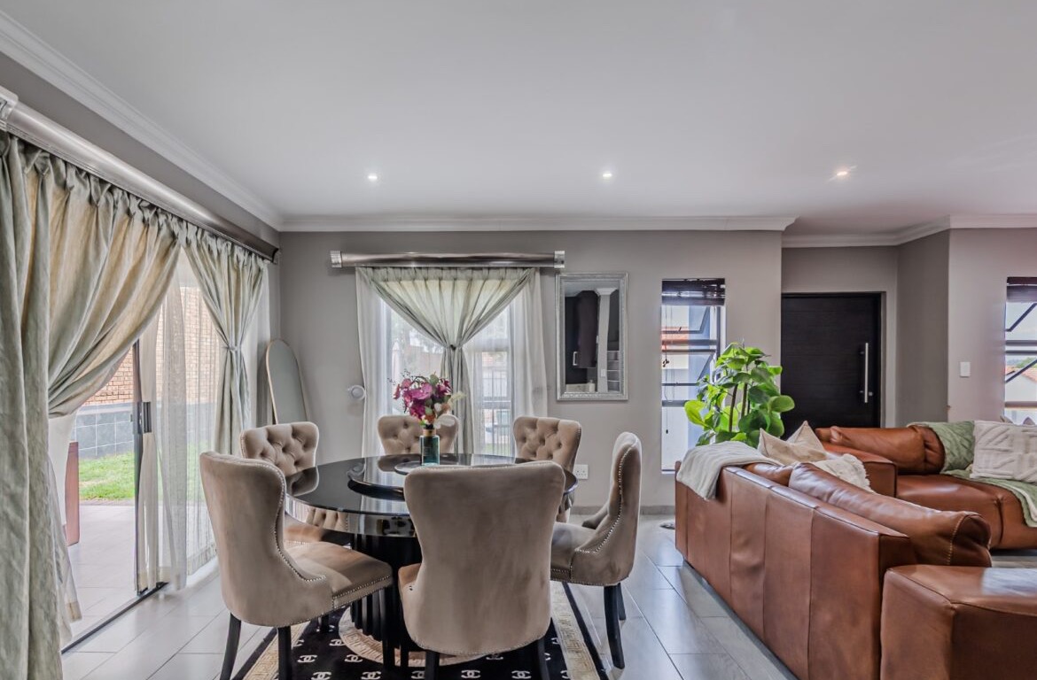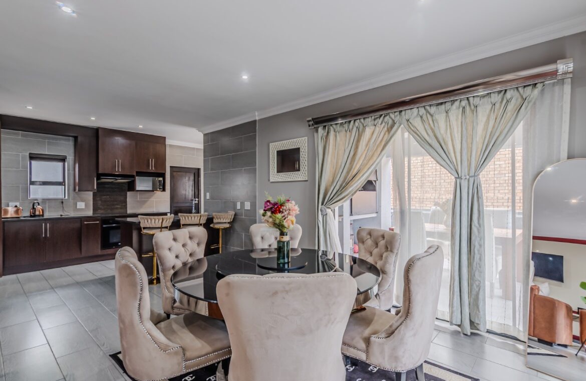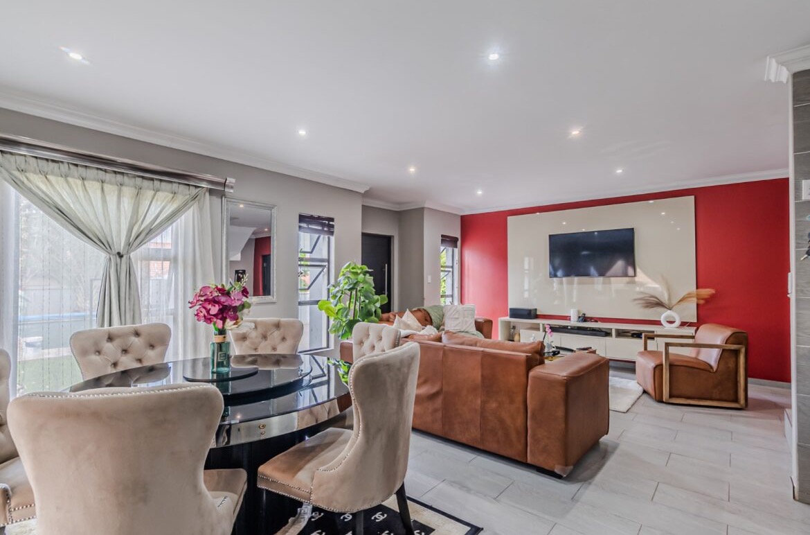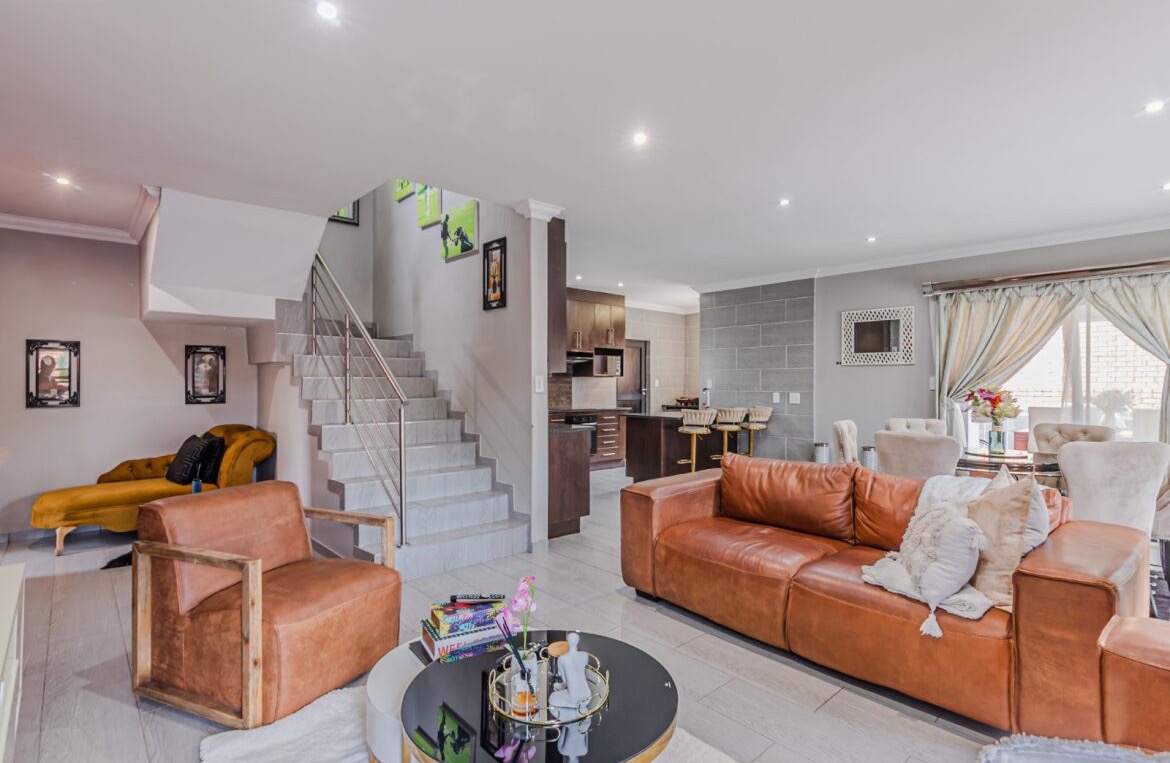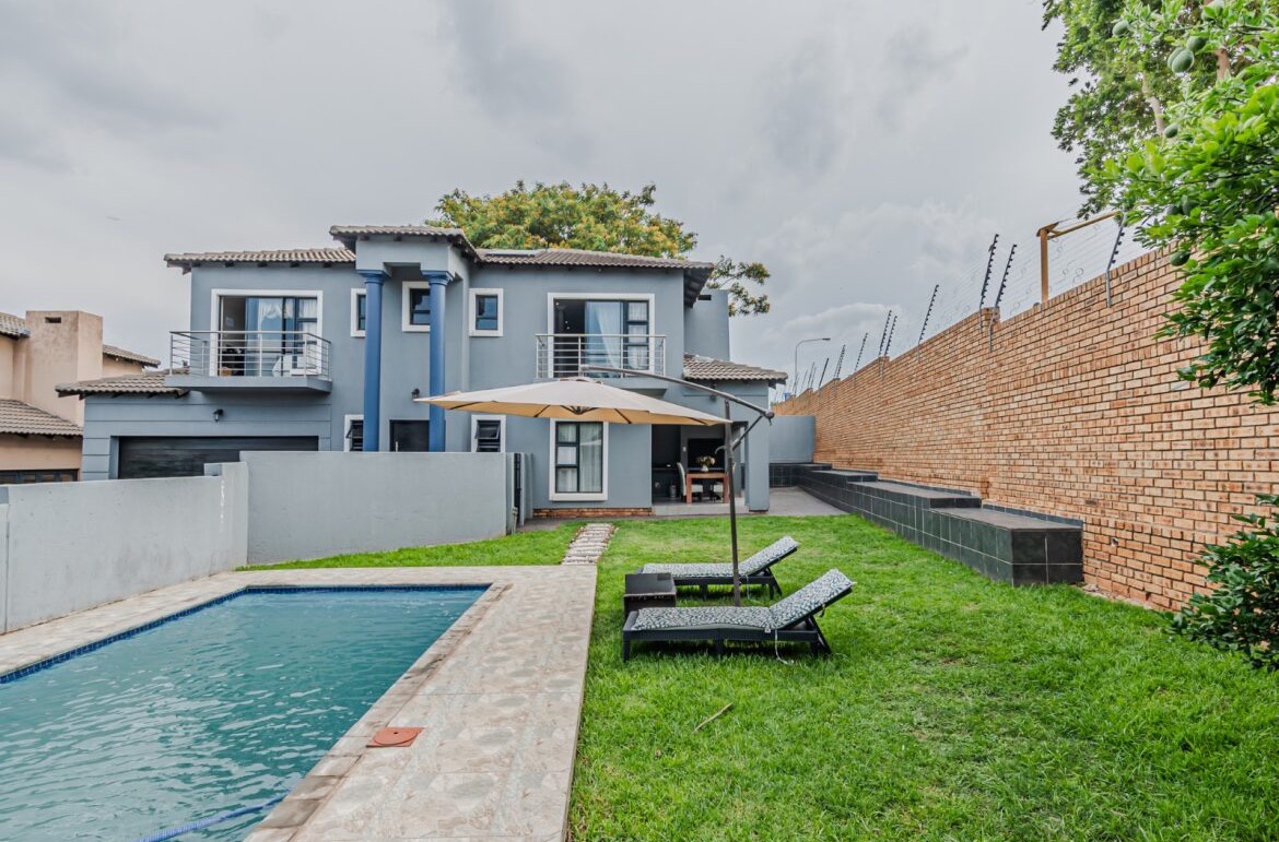 Come on in and discover this lovely modern family home nestled in the secure Thatchfield Close estate in Centurion. Right from the curb, you'll notice its stylish grey and blue exterior, complete with a double garage and a neat paved driveway, giving it a welcoming feel. Step inside and you'll find a spacious 209 sqm floor plan designed for comfortable living. The heart of this home is its open-plan living and dining area, perfect for family time or entertaining friends. With modern recessed lighting and sliding doors, the space feels bright and airy. The kitchen is well-equipped and flows nicely, making meal prep a breeze. You'll also find a convenient guest toilet on this level. Upstairs, there are three comfy bedrooms and two and a half bathrooms, including a private en-suite for that extra touch of luxury. Multiple balconies offer a great spot to enjoy your morning coffee or unwind in the evening, taking in the views of the neighbourhood. Outside, the fun continues with a private swimming pool – perfect for those sunny South African days! There's also a covered patio and a built-in braai, making outdoor entertaining super easy. The well-maintained garden and paving add to the charm, creating a lovely space to relax. Plus, with 24-hour security, an access gate, and electric fencing, you can enjoy peace of mind in this gated community. Thatchfield Close offers a fantastic suburban lifestyle in Centurion, known for its family-friendly atmosphere and convenient amenities. It’s a great spot to call home, combining comfort with security. Key Features: * Modern two-story home * 3 Bedrooms, 2.5 Bathrooms (1 en-suite) * Open-plan living and dining * Private swimming pool & covered patio * Double garage & 6 parking spaces * Multiple balconies * Built-in braai * Secure estate living with 24-hour security