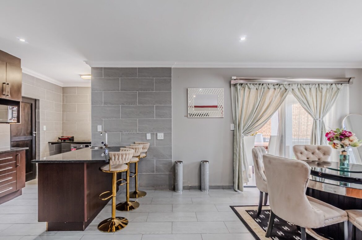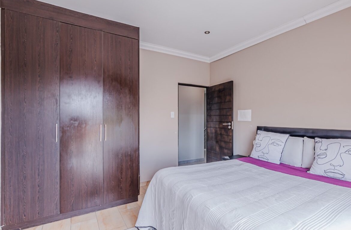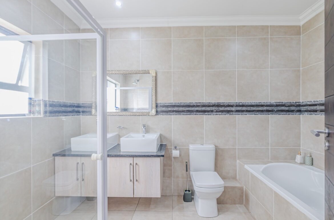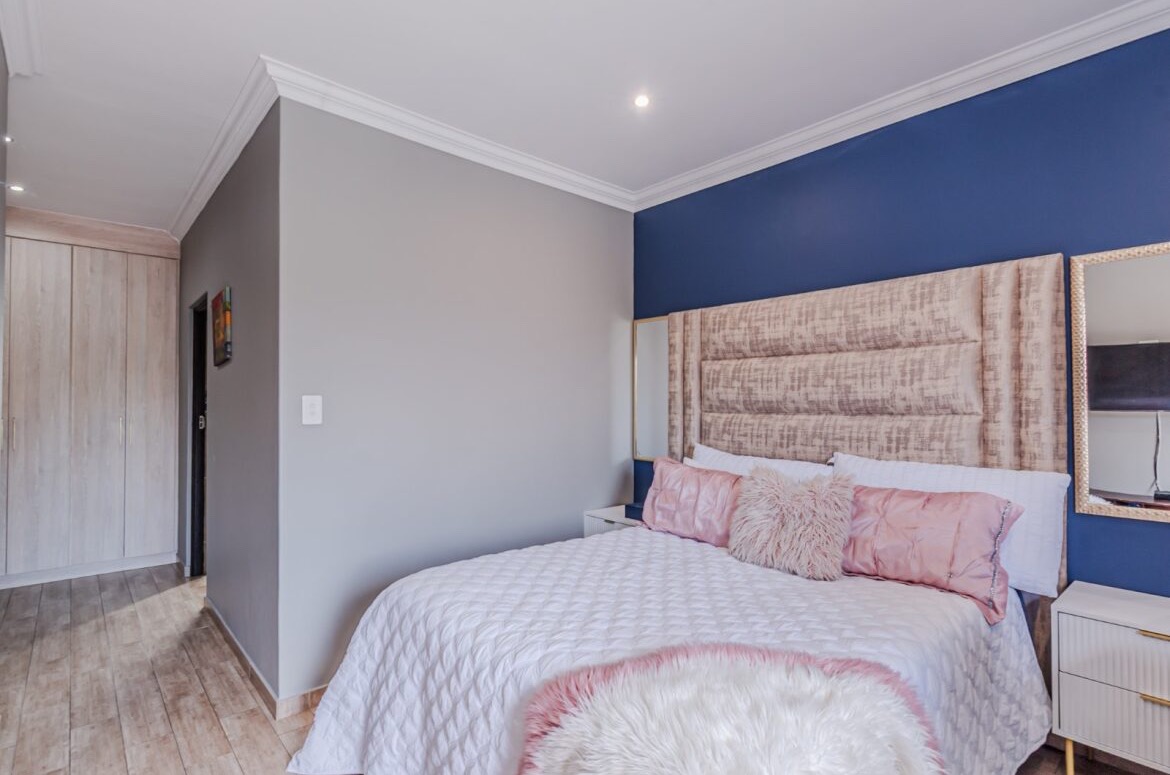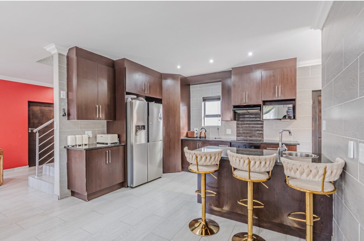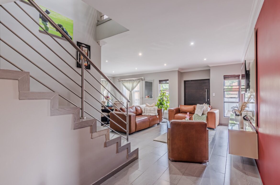 Come on in and discover this lovely modern family home nestled in the secure Thatchfield Close estate in Centurion. Right from the curb, you'll notice its stylish grey and blue exterior, complete with a double garage and a neat paved driveway, giving it a welcoming feel. Step inside and you'll find a spacious 209 sqm floor plan designed for comfortable living. The heart of this home is its open-plan living and dining area, perfect for family time or entertaining friends. With modern recessed lighting and sliding doors, the space feels bright and airy. The kitchen is well-equipped and flows nicely, making meal prep a breeze. You'll also find a convenient guest toilet on this level. Upstairs, there are three comfy bedrooms and two and a half bathrooms, including a private en-suite for that extra touch of luxury. Multiple balconies offer a great spot to enjoy your morning coffee or unwind in the evening, taking in the views of the neighbourhood. Outside, the fun continues with a private swimming pool – perfect for those sunny South African days! There's also a covered patio and a built-in braai, making outdoor entertaining super easy. The well-maintained garden and paving add to the charm, creating a lovely space to relax. Plus, with 24-hour security, an access gate, and electric fencing, you can enjoy peace of mind in this gated community. Thatchfield Close offers a fantastic suburban lifestyle in Centurion, known for its family-friendly atmosphere and convenient amenities. It’s a great spot to call home, combining comfort with security. Key Features: * Modern two-story home * 3 Bedrooms, 2.5 Bathrooms (1 en-suite) * Open-plan living and dining * Private swimming pool & covered patio * Double garage & 6 parking spaces * Multiple balconies * Built-in braai * Secure estate living with 24-hour security