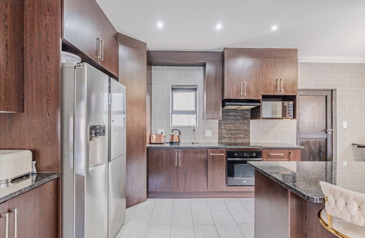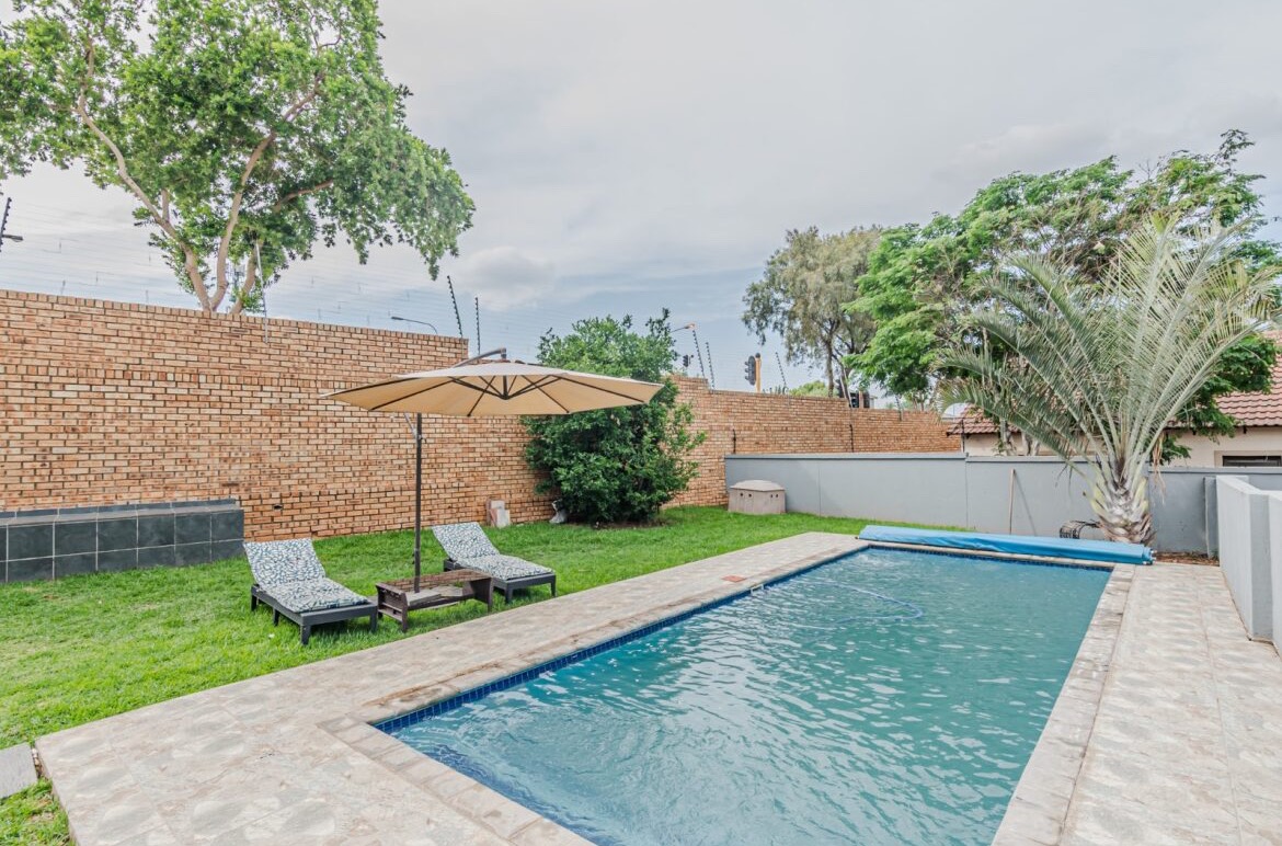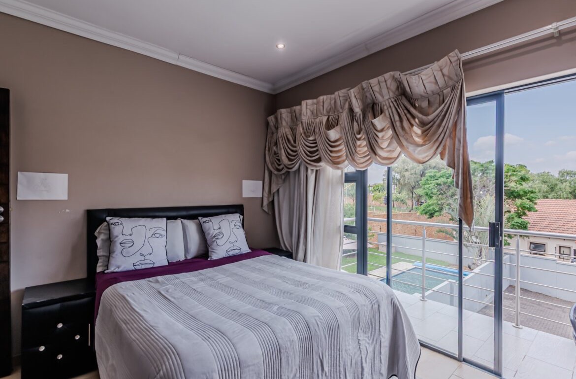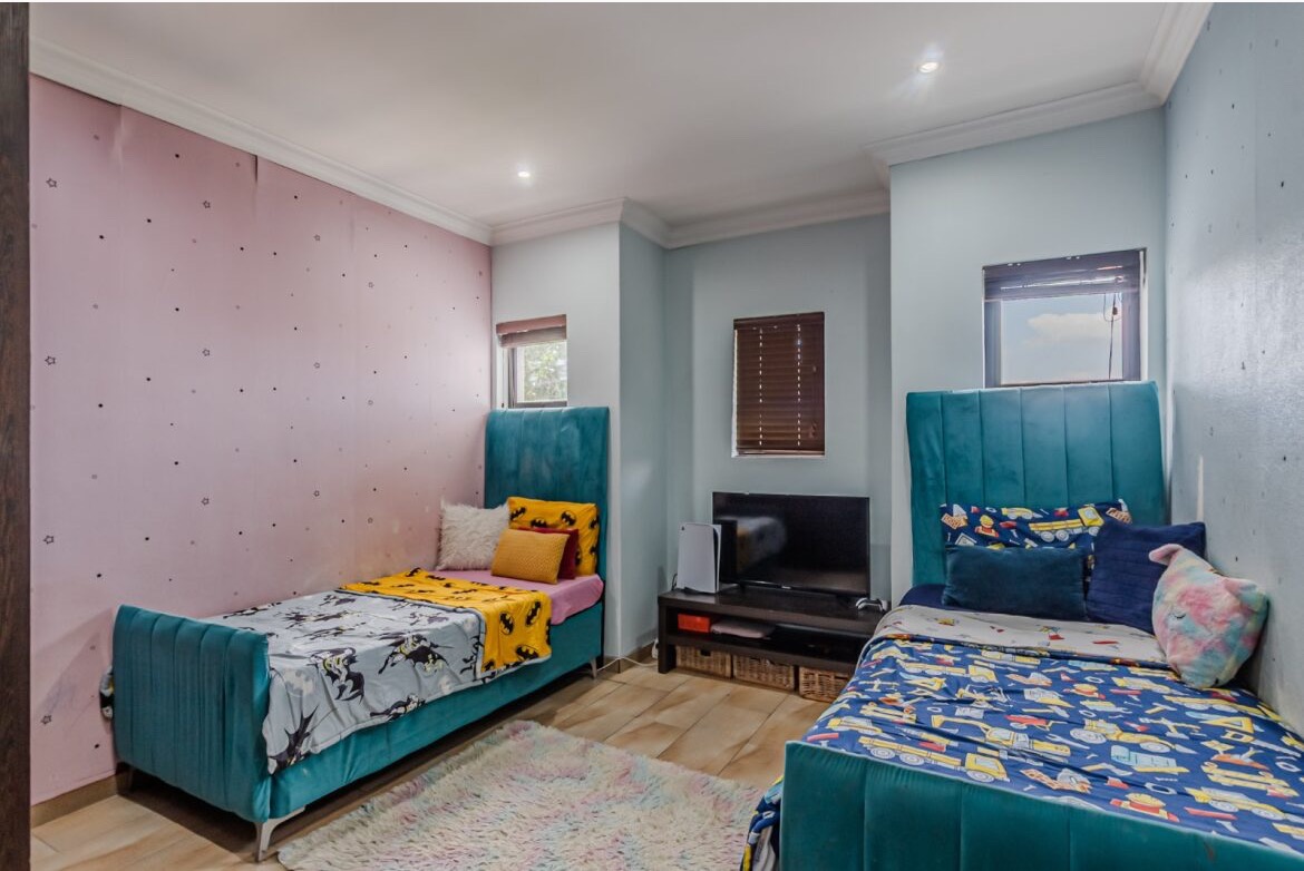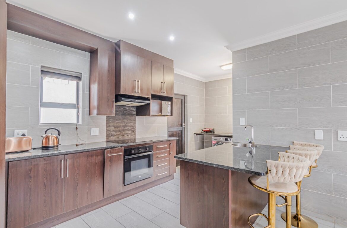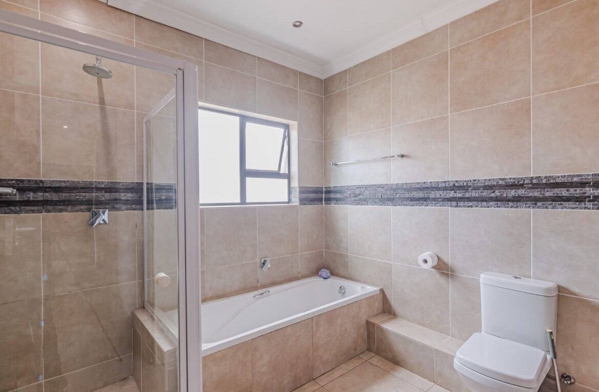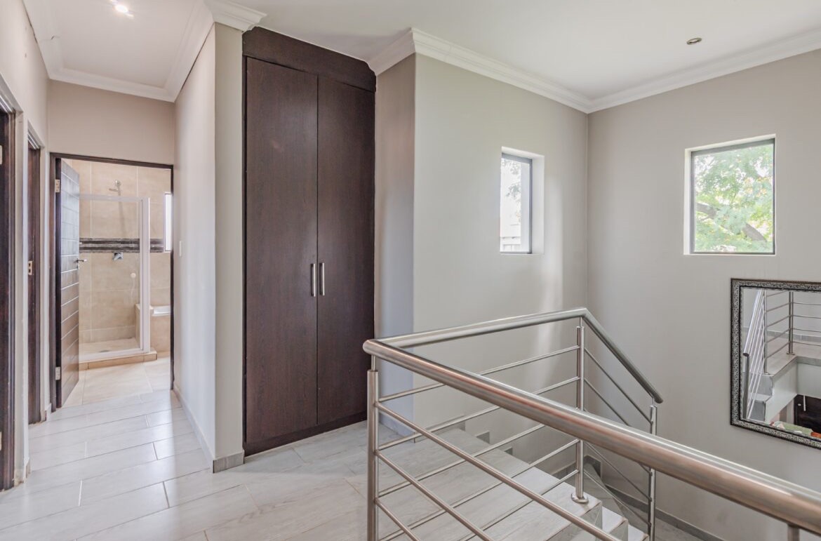 Come on in and discover this lovely modern family home nestled in the secure Thatchfield Close estate in Centurion. Right from the curb, you'll notice its stylish grey and blue exterior, complete with a double garage and a neat paved driveway, giving it a welcoming feel. Step inside and you'll find a spacious 209 sqm floor plan designed for comfortable living. The heart of this home is its open-plan living and dining area, perfect for family time or entertaining friends. With modern recessed lighting and sliding doors, the space feels bright and airy. The kitchen is well-equipped and flows nicely, making meal prep a breeze. You'll also find a convenient guest toilet on this level. Upstairs, there are three comfy bedrooms and two and a half bathrooms, including a private en-suite for that extra touch of luxury. Multiple balconies offer a great spot to enjoy your morning coffee or unwind in the evening, taking in the views of the neighbourhood. Outside, the fun continues with a private swimming pool – perfect for those sunny South African days! There's also a covered patio and a built-in braai, making outdoor entertaining super easy. The well-maintained garden and paving add to the charm, creating a lovely space to relax. Plus, with 24-hour security, an access gate, and electric fencing, you can enjoy peace of mind in this gated community. Thatchfield Close offers a fantastic suburban lifestyle in Centurion, known for its family-friendly atmosphere and convenient amenities. It’s a great spot to call home, combining comfort with security. Key Features: * Modern two-story home * 3 Bedrooms, 2.5 Bathrooms (1 en-suite) * Open-plan living and dining * Private swimming pool & covered patio * Double garage & 6 parking spaces * Multiple balconies * Built-in braai * Secure estate living with 24-hour security
