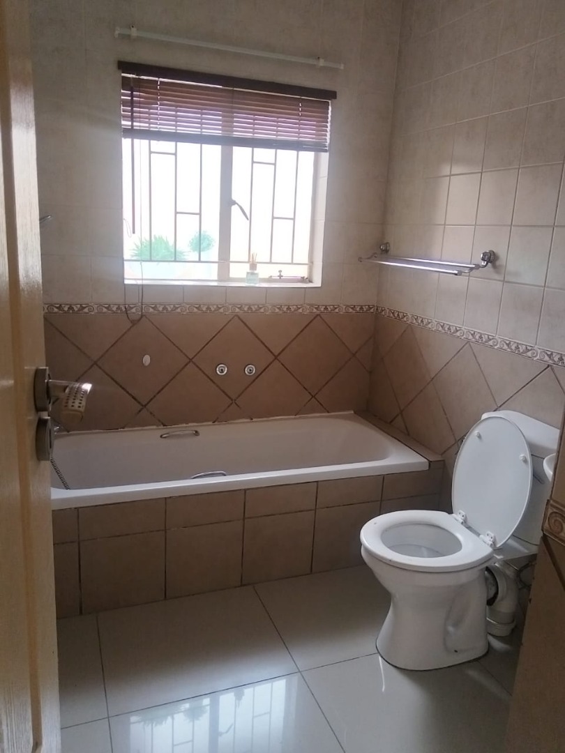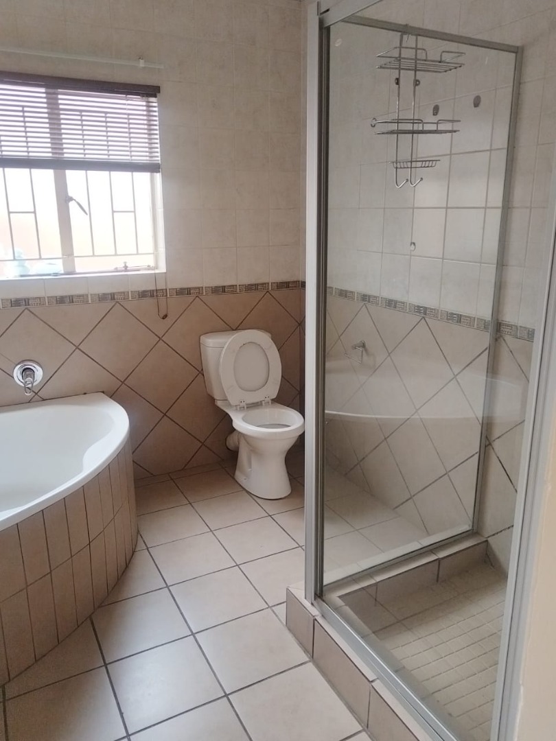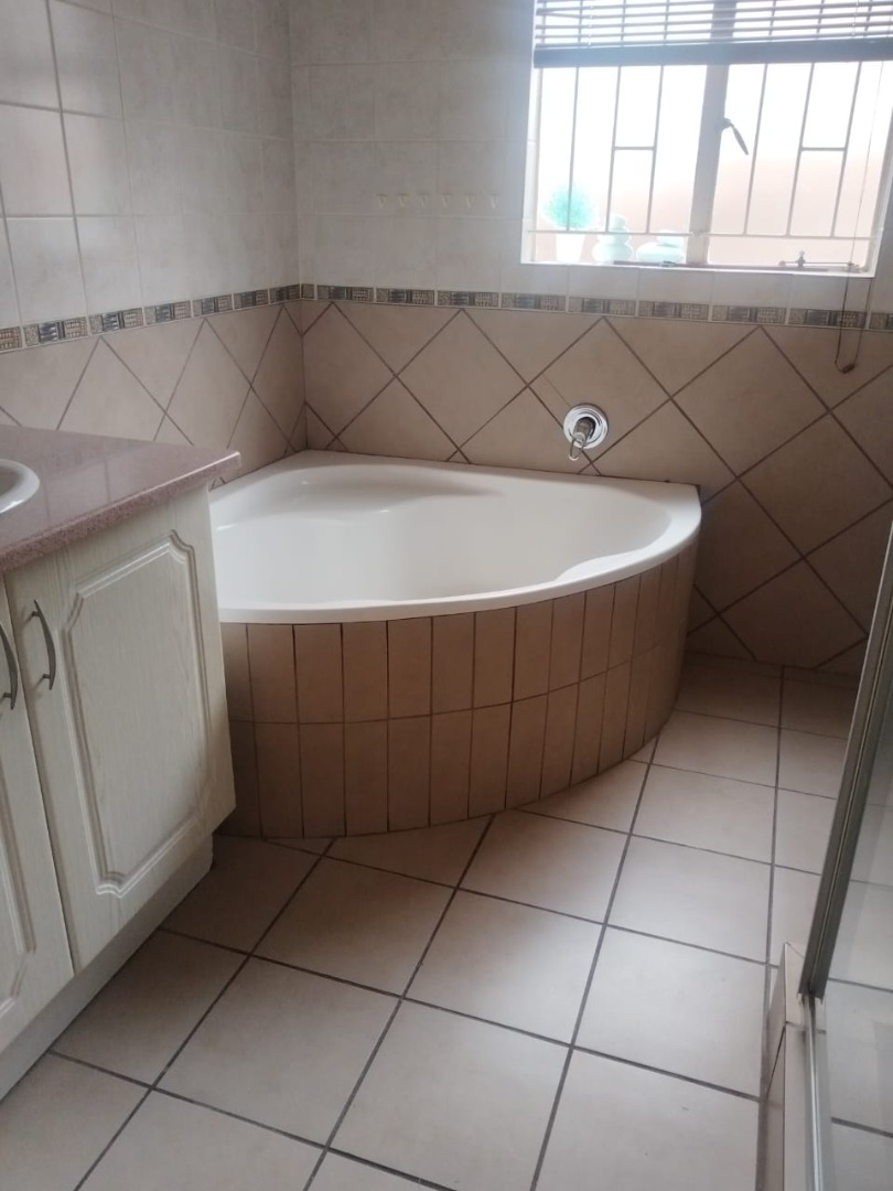 All three bedrooms are generously sized, fitted with new tiles and built-in cupboards. The shared bathroom includes a bath, toilet, and basin, while the main bedroom boasts a semi walk in closet and a full en-suite bathroom with a corner bath, shower, toilet, and basin.