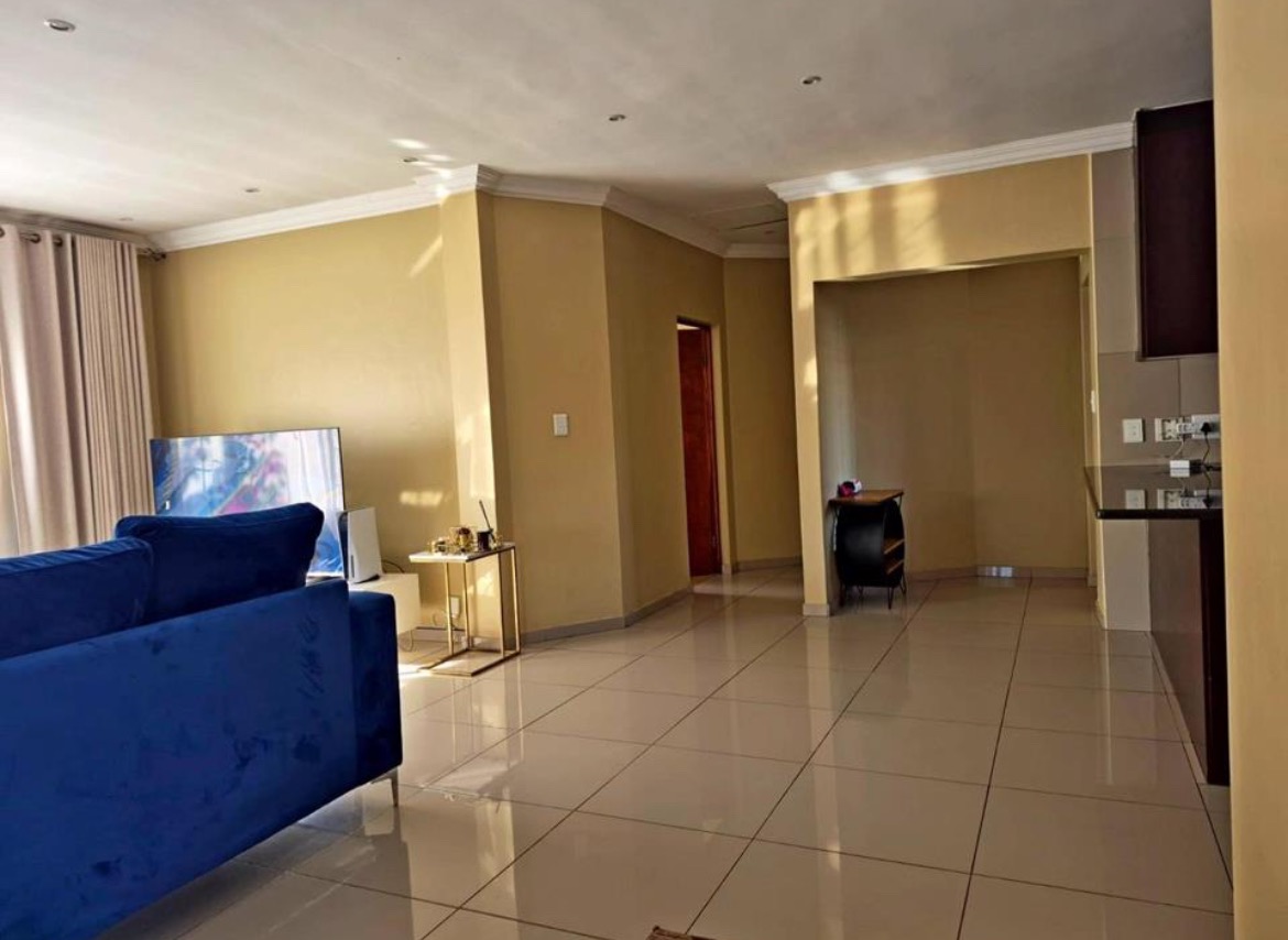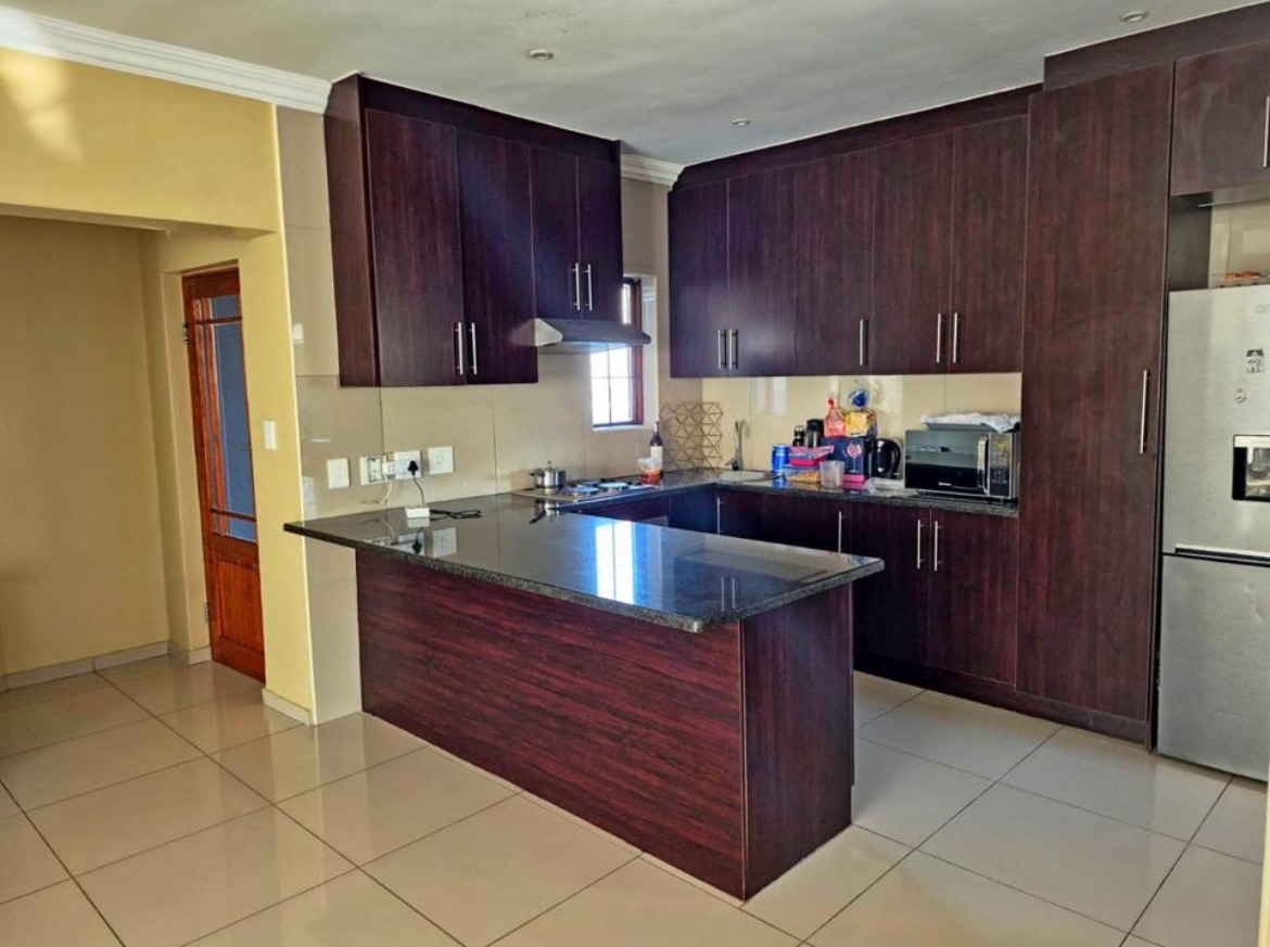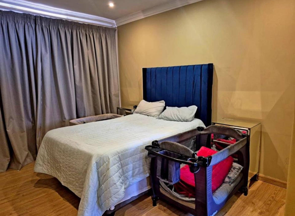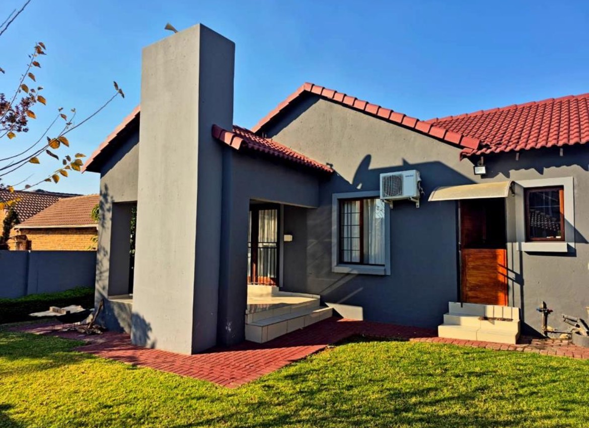 Discover this modern 3-bedroom, 2-bathroom residence nestled within a secure estate in Thatchfield Hills, Centurion. Boasting a contemporary grey exterior with a striking red tiled roof, this home offers excellent kerb appeal and a well-maintained green lawn, complemented by a paved driveway leading to a double garage. The interior features a bright and spacious open-plan living area, perfect for both relaxation and entertaining. Light-colored tiled floors extend throughout, enhancing the sense of space, while large windows invite abundant natural light. The modern kitchen is a highlight, equipped with dark wood cabinetry, durable granite countertops, and stainless steel appliances, including a built-in oven and hob. An integrated breakfast bar adds functionality, and the layout seamlessly connects to the dining and lounge areas. This inviting home comprises three comfortable bedrooms, providing ample space for family living. The two bathrooms include a convenient en-suite, ensuring privacy and comfort. Each room is designed with practicality in mind, offering a clean and well-maintained aesthetic. Outdoor living is catered for with a covered patio, ideal for enjoying the established garden, which benefits from an irrigation system. The property also includes two parking spaces in addition to the double garage, providing ample secure parking. For enhanced comfort, the home is fitted with air conditioning. Residents benefit from living in a security estate with 24-hour security, offering peace of mind. The property is also equipped with a battery inverter and solar panels, contributing to energy efficiency and reduced utility costs. Pets are allowed, making this an ideal family home. Thatchfield Hills in Centurion is a sought-after suburban area known for its family-friendly environment and convenient access to local amenities. This estate living offers a balanced lifestyle within a vibrant community. Key Features: * 3 Bedrooms, 2 Bathrooms (1 En-suite) * 165 sqm Floor Size * Modern Kitchen with Granite Countertops * Open-Plan Living and Dining Areas * Double Garage and 2 Additional Parking Spaces * Covered Patio and Irrigated Garden * Air Conditioning * Security Estate with 24-Hour Security * Battery Inverter and Solar Panels * Pets Allowed