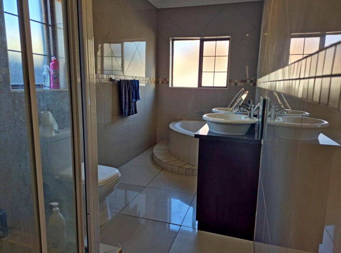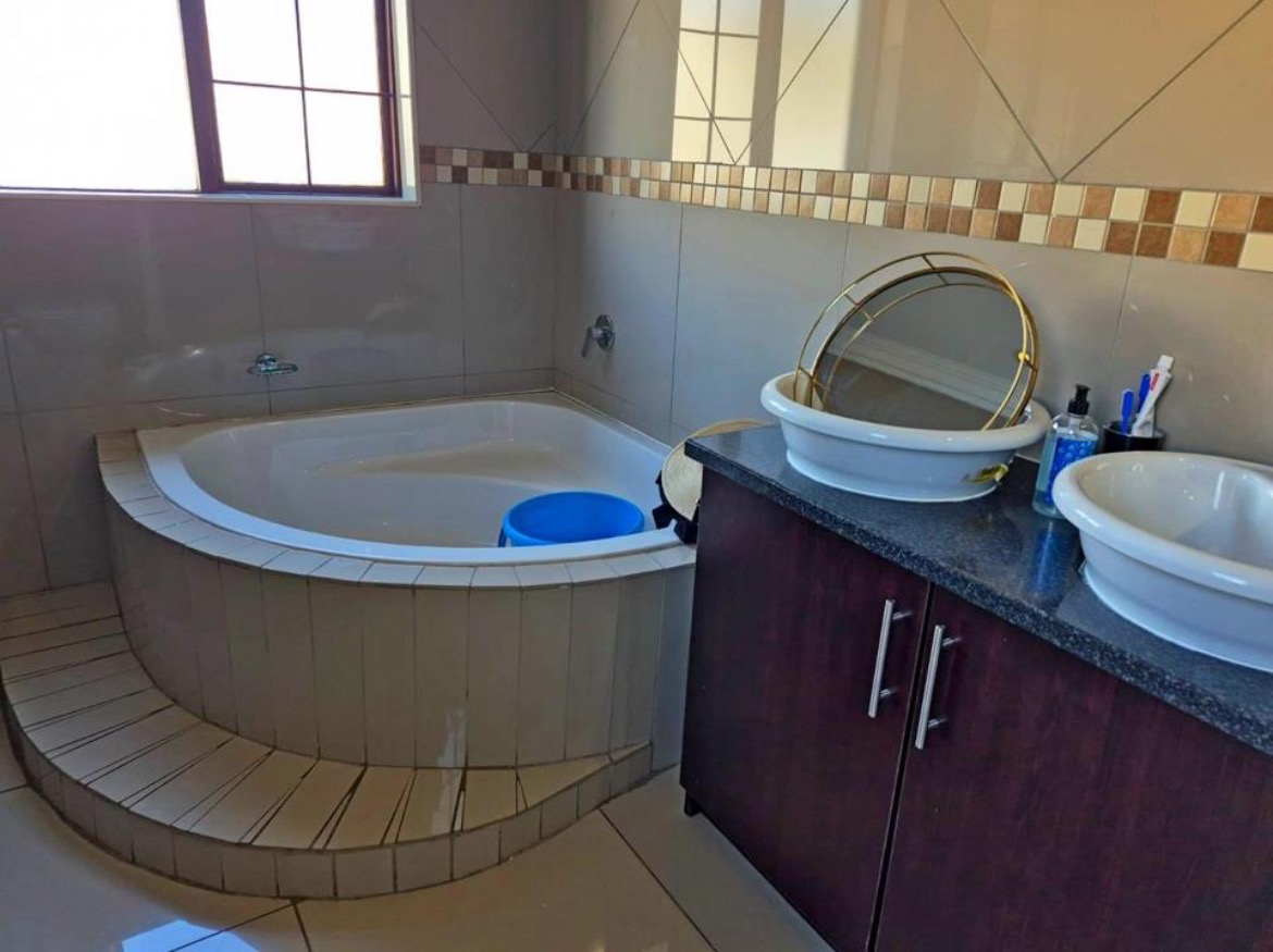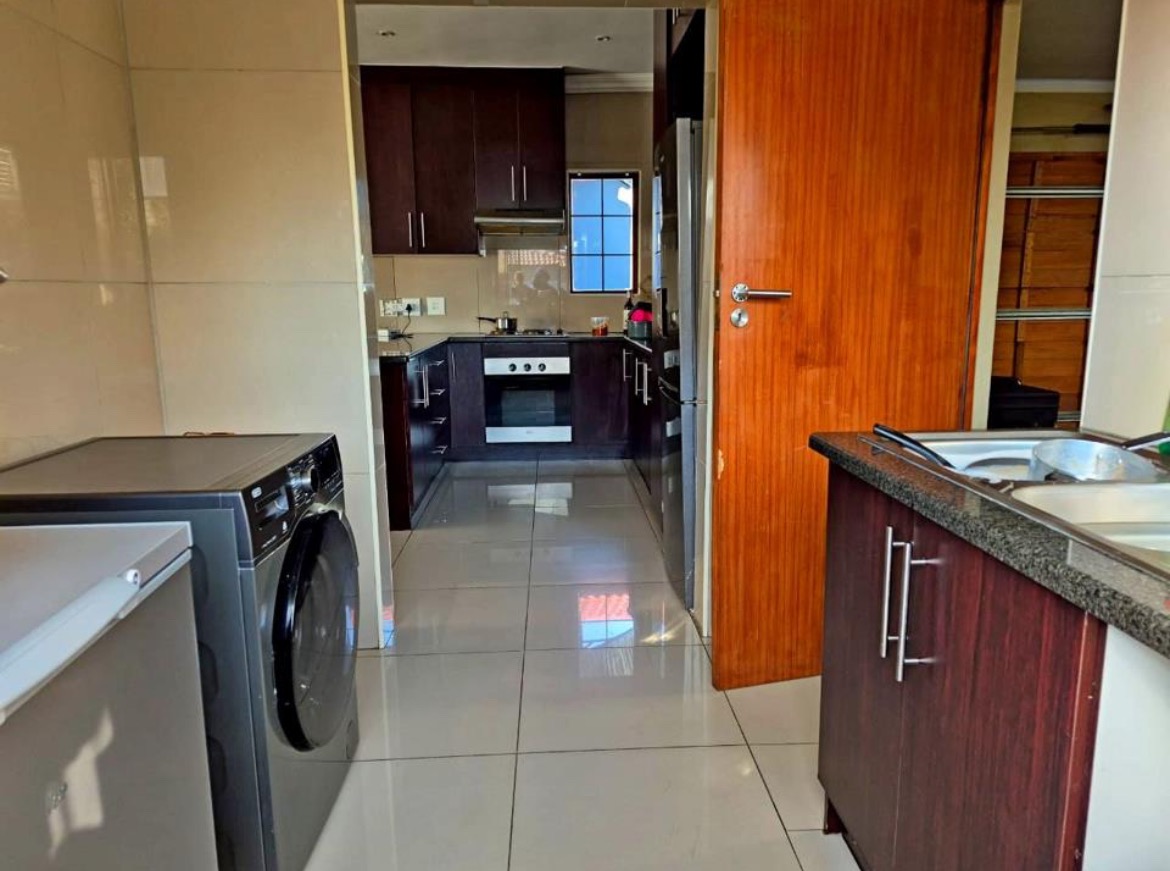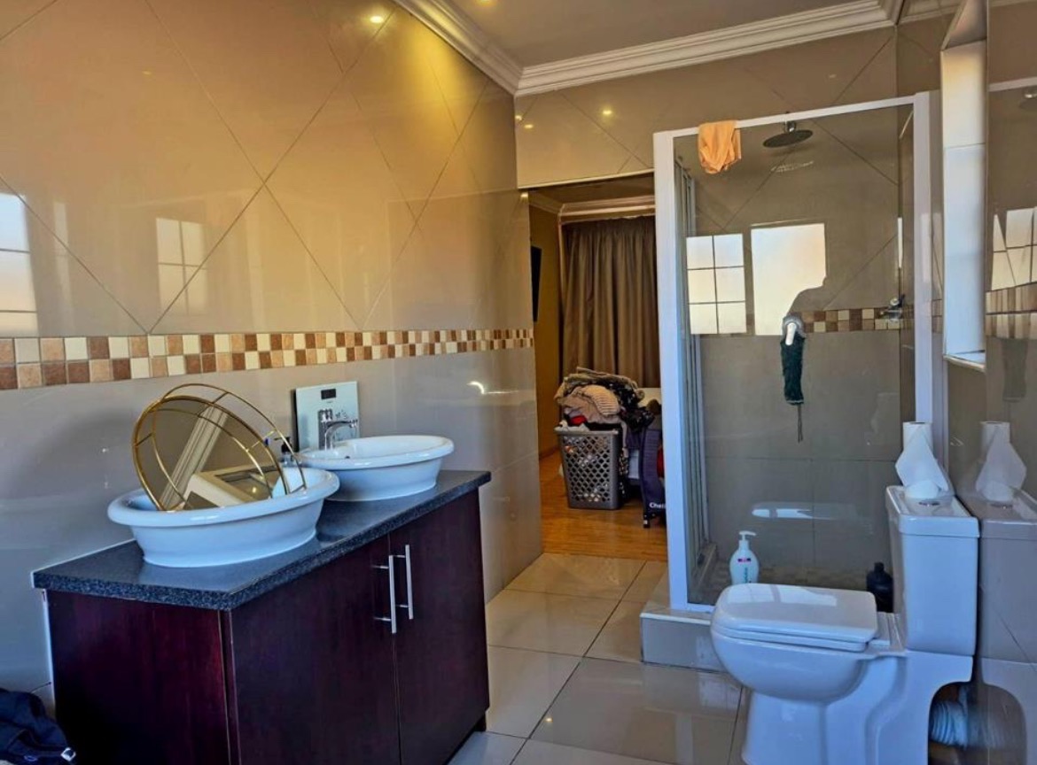 Discover this modern 3-bedroom, 2-bathroom residence nestled within a secure estate in Thatchfield Hills, Centurion. Boasting a contemporary grey exterior with a striking red tiled roof, this home offers excellent kerb appeal and a well-maintained green lawn, complemented by a paved driveway leading to a double garage. The interior features a bright and spacious open-plan living area, perfect for both relaxation and entertaining. Light-colored tiled floors extend throughout, enhancing the sense of space, while large windows invite abundant natural light. The modern kitchen is a highlight, equipped with dark wood cabinetry, durable granite countertops, and stainless steel appliances, including a built-in oven and hob. An integrated breakfast bar adds functionality, and the layout seamlessly connects to the dining and lounge areas. This inviting home comprises three comfortable bedrooms, providing ample space for family living. The two bathrooms include a convenient en-suite, ensuring privacy and comfort. Each room is designed with practicality in mind, offering a clean and well-maintained aesthetic. Outdoor living is catered for with a covered patio, ideal for enjoying the established garden, which benefits from an irrigation system. The property also includes two parking spaces in addition to the double garage, providing ample secure parking. For enhanced comfort, the home is fitted with air conditioning. Residents benefit from living in a security estate with 24-hour security, offering peace of mind. The property is also equipped with a battery inverter and solar panels, contributing to energy efficiency and reduced utility costs. Pets are allowed, making this an ideal family home. Thatchfield Hills in Centurion is a sought-after suburban area known for its family-friendly environment and convenient access to local amenities. This estate living offers a balanced lifestyle within a vibrant community. Key Features: * 3 Bedrooms, 2 Bathrooms (1 En-suite) * 165 sqm Floor Size * Modern Kitchen with Granite Countertops * Open-Plan Living and Dining Areas * Double Garage and 2 Additional Parking Spaces * Covered Patio and Irrigated Garden * Air Conditioning * Security Estate with 24-Hour Security * Battery Inverter and Solar Panels * Pets Allowed