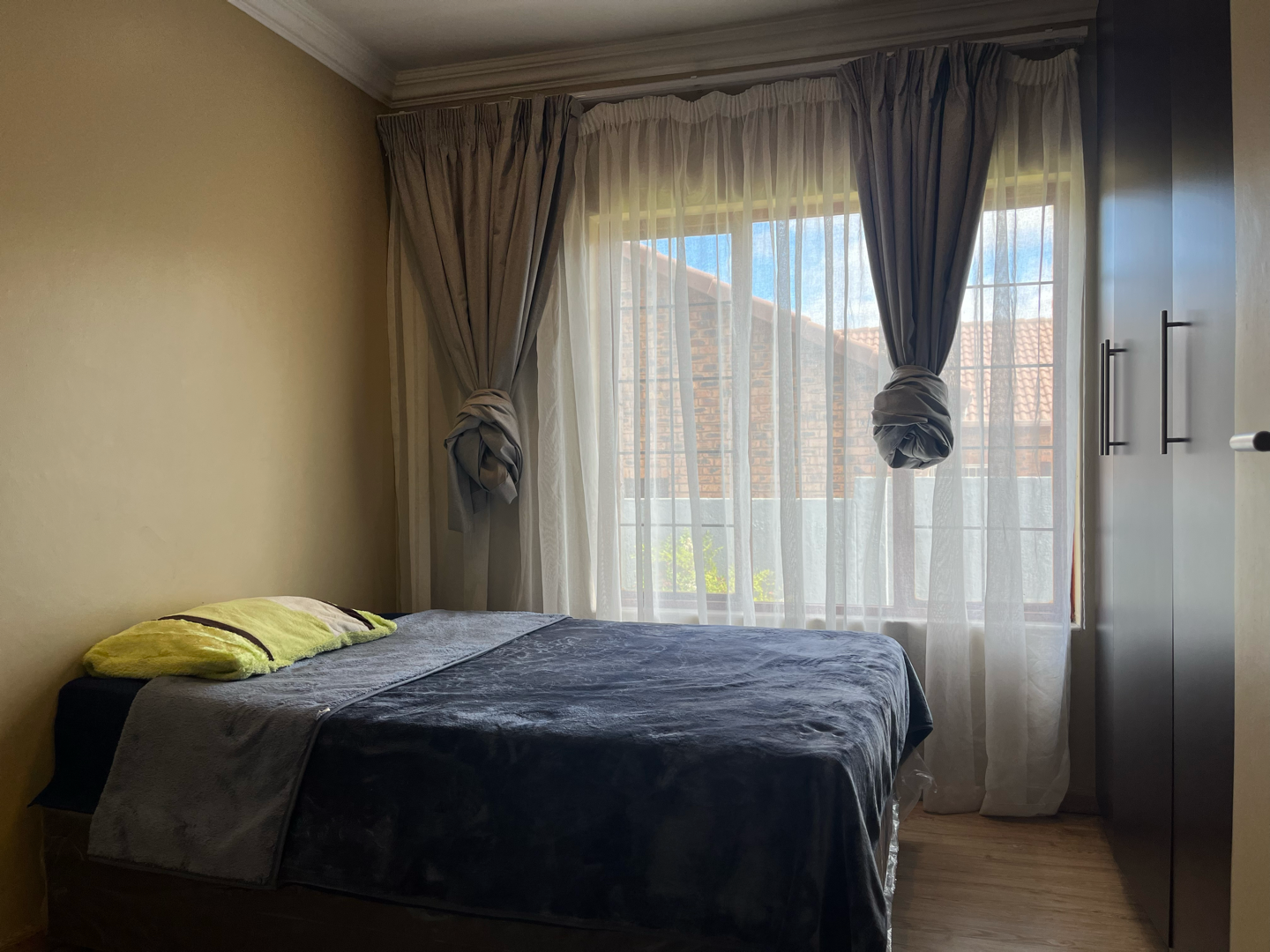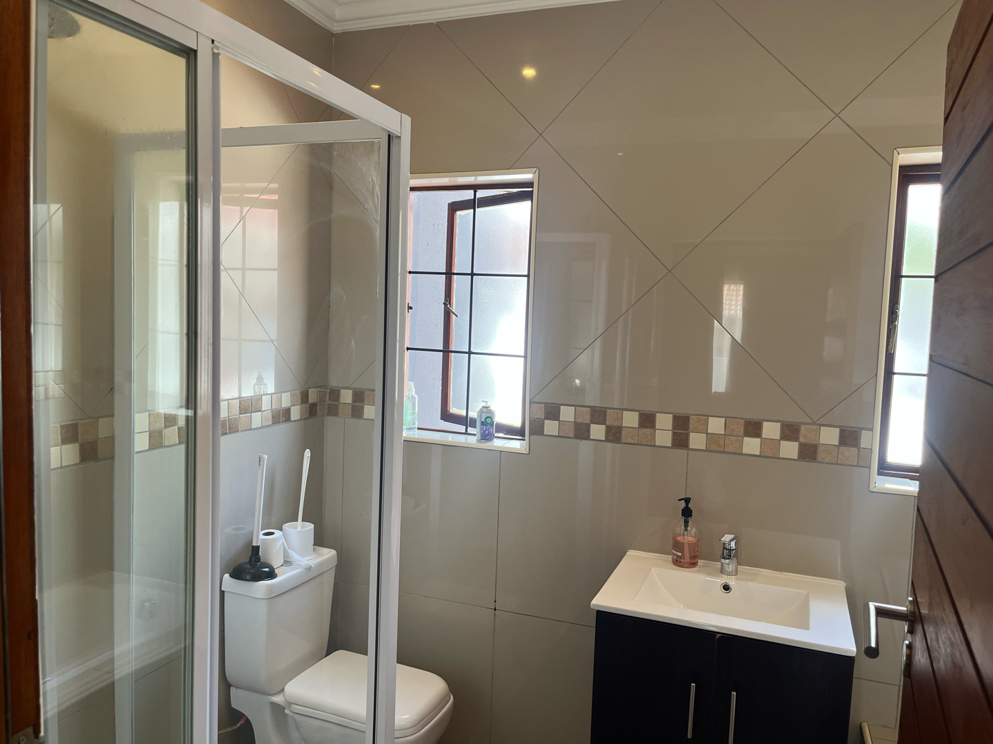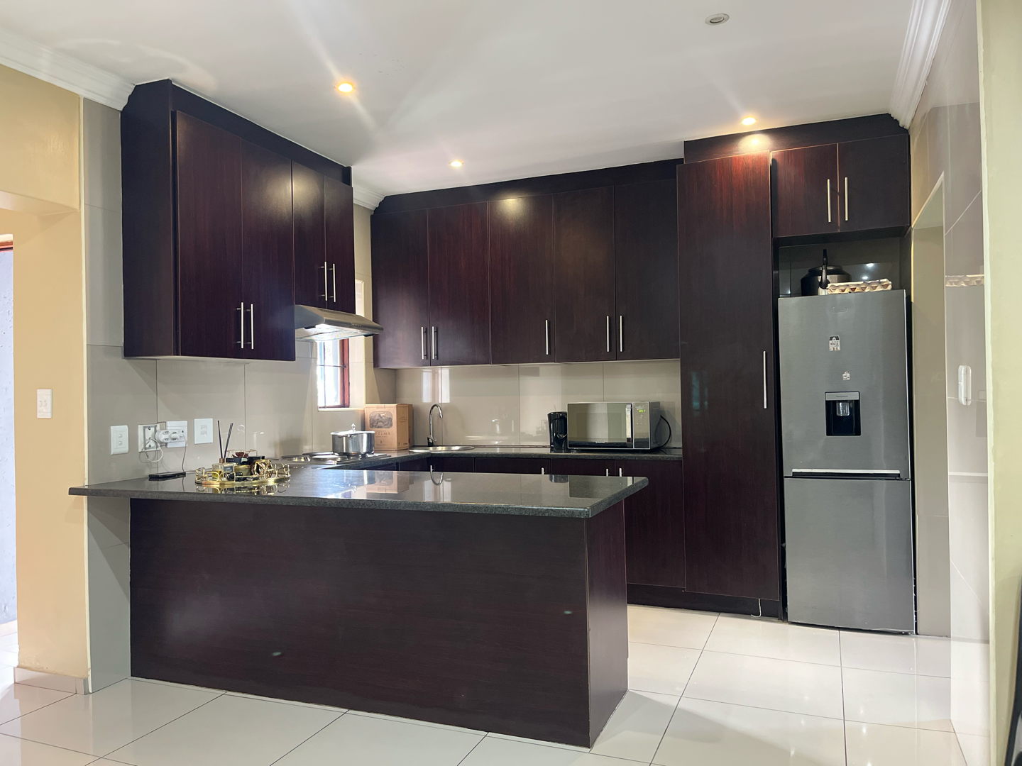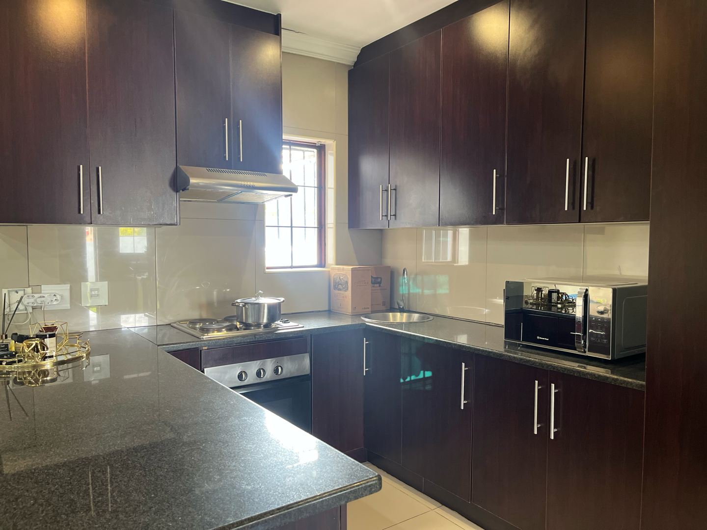 Discover this modern 3-bedroom, 2-bathroom residence nestled within a secure estate in Thatchfield Hills, Centurion. Boasting a contemporary grey exterior with a striking red tiled roof, this home offers excellent kerb appeal and a well-maintained green lawn, complemented by a paved driveway leading to a double garage. The interior features a bright and spacious open-plan living area, perfect for both relaxation and entertaining. Light-colored tiled floors extend throughout, enhancing the sense of space, while large windows invite abundant natural light. The modern kitchen is a highlight, equipped with dark wood cabinetry, durable granite countertops, and stainless steel appliances, including a built-in oven and hob. An integrated breakfast bar adds functionality, and the layout seamlessly connects to the dining and lounge areas. This inviting home comprises three comfortable bedrooms, providing ample space for family living. The two bathrooms include a convenient en-suite, ensuring privacy and comfort. Each room is designed with practicality in mind, offering a clean and well-maintained aesthetic. Outdoor living is catered for with a covered patio, ideal for enjoying the established garden, which benefits from an irrigation system. The property also includes two parking spaces in addition to the double garage, providing ample secure parking. For enhanced comfort, the home is fitted with air conditioning. Residents benefit from living in a security estate with 24-hour security, offering peace of mind. The property is also equipped with a battery inverter and solar panels, contributing to energy efficiency and reduced utility costs. Pets are allowed, making this an ideal family home. Thatchfield Hills in Centurion is a sought-after suburban area known for its family-friendly environment and convenient access to local amenities. This estate living offers a balanced lifestyle within a vibrant community. Key Features: * 3 Bedrooms, 2 Bathrooms (1 En-suite) * 165 sqm Floor Size * Modern Kitchen with Granite Countertops * Open-Plan Living and Dining Areas * Double Garage and 2 Additional Parking Spaces * Covered Patio and Irrigated Garden * Air Conditioning * Security Estate with 24-Hour Security * Battery Inverter and Solar Panels * Pets Allowed