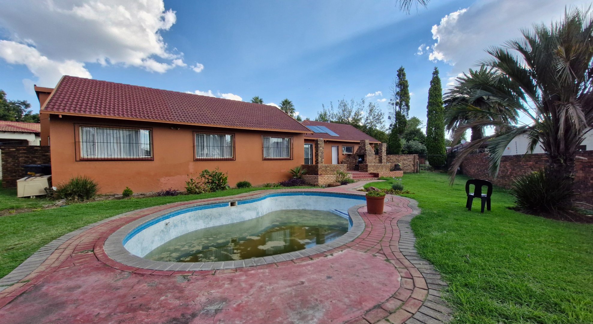 Step outside to enjoy the private garden, complete with a swimming pool and a welcoming patio, perfect for outdoor gatherings and leisure. Additional practical features include a double automated garage, a convenient wendy house for extra storage, and an outside toilet. The property is pet-friendly and benefits from a solar geyser, contributing to energy efficiency. Security is enhanced with burglar bars and a security gate, ensuring peace of mind.