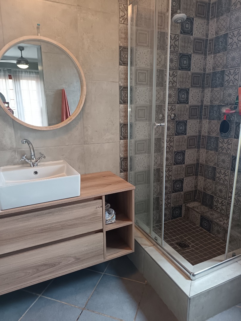 · The modern, spacious kitchen is a true standout, equipped with a gas stove, electric oven, and convenient water points for both your appliances and cleaning needs. It features a generous double scullery for added functionality, well-sized pantry and cupboards for extra storage, and elegant granite countertops that add both style and durability. This beautifully designed space offers everything you need for effortless cooking and entertaining.