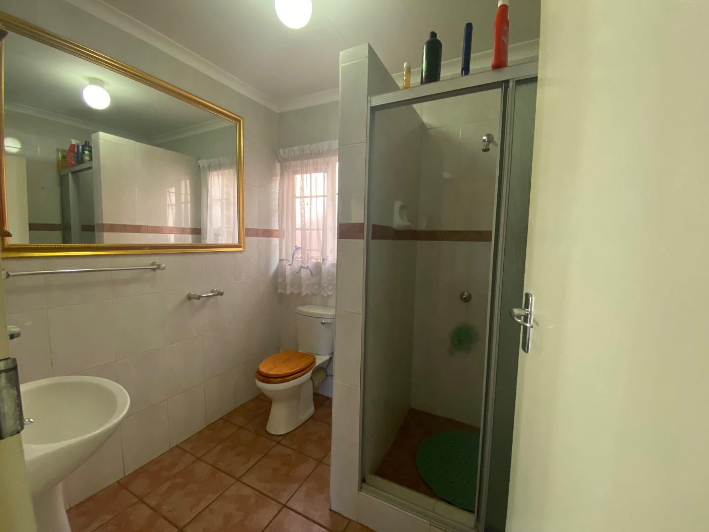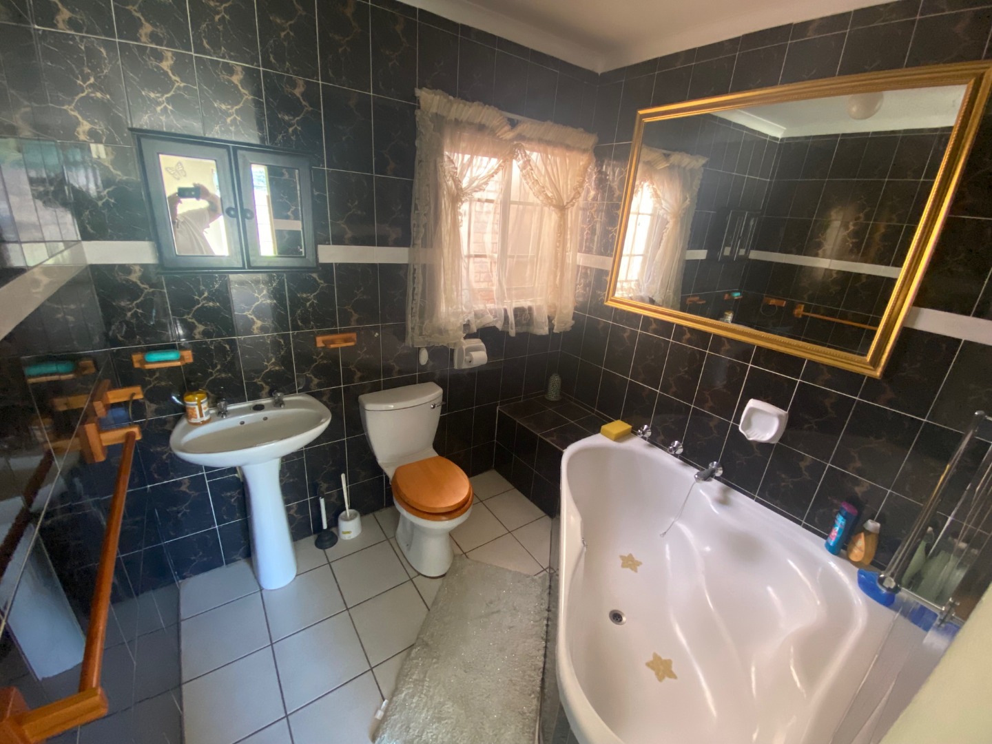 Two spacious bedrooms with built-in cupboards. Sunlit main bedroom with a fully tiled en-suite bathroom and relaxing bathtub. Second bathroom with shower, basin, and toilet.