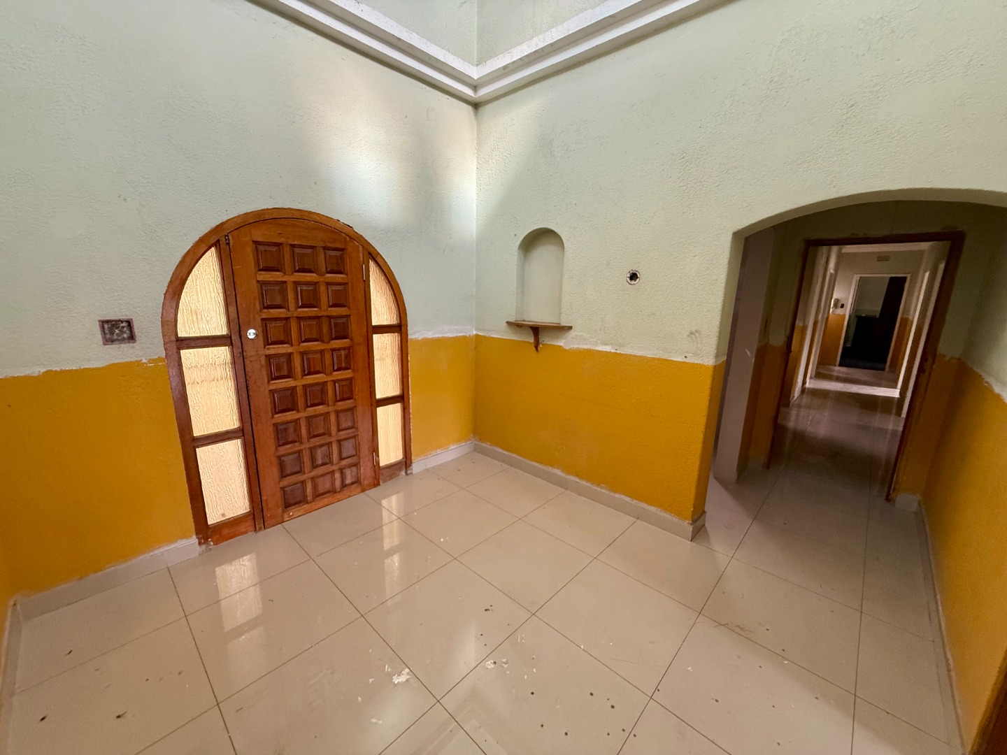 A well-sized entrance with a high ceiling due to the majestic tower that welcomes in a plethora of light.