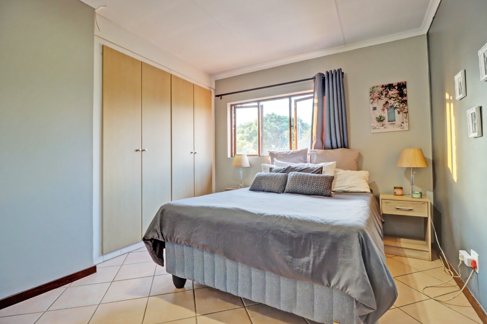 The property includes two comfortable bedrooms, with one featuring an en-suite bathroom for added privacy. Both bedrooms benefit from natural light and built-in wardrobes, offering ample storage solutions. The tiled flooring extends throughout the home, ensuring easy maintenance.