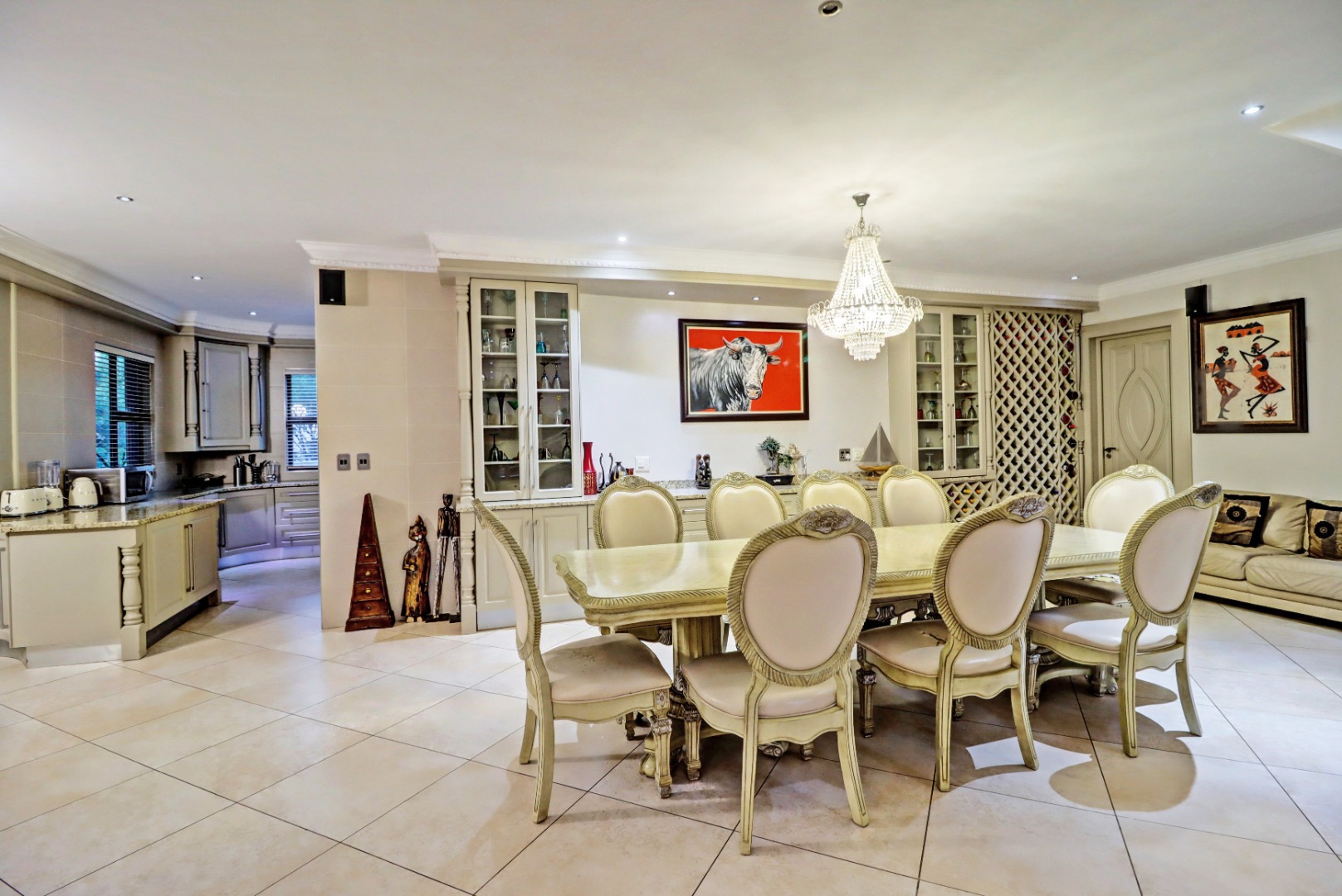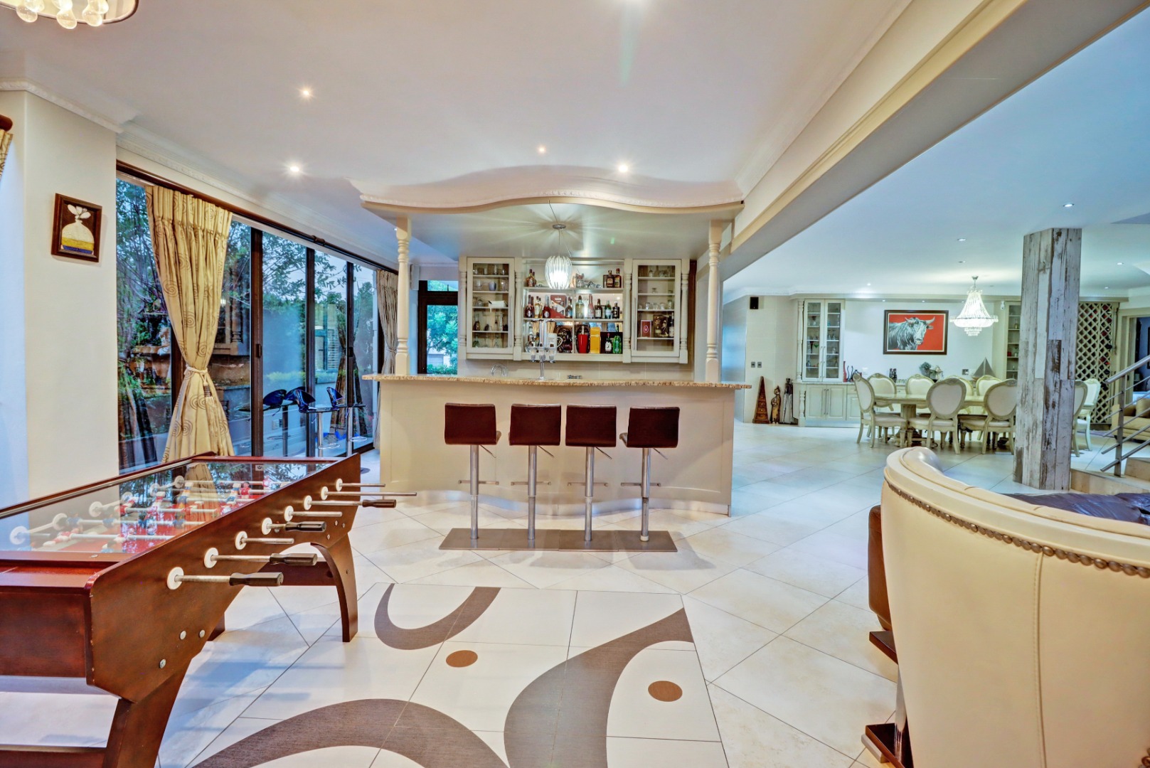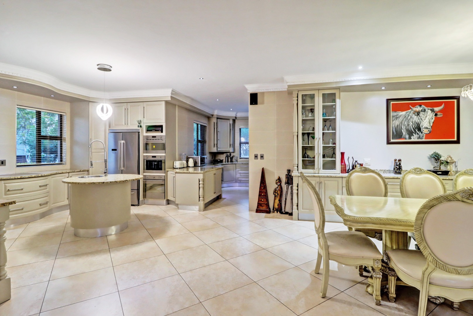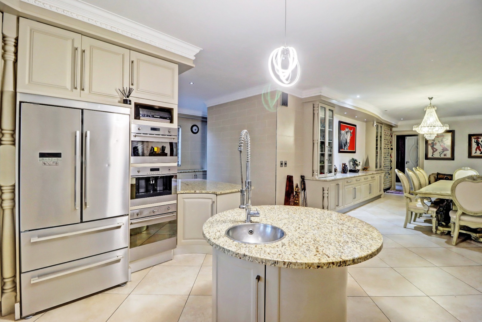 Eight opulent bedrooms, each accompanied by its own en-suite bathroom and a luxurious spa bath, ensure ultimate comfort and privacy for residents and guests alike. The property extends its allure outdoors with a pool, a meticulously landscaped garden with an irrigation system, and a built-in braai, ideal for alfresco entertaining. Four generous garages provide secure parking, complemented by staff quarters and outside toilets for convenience.