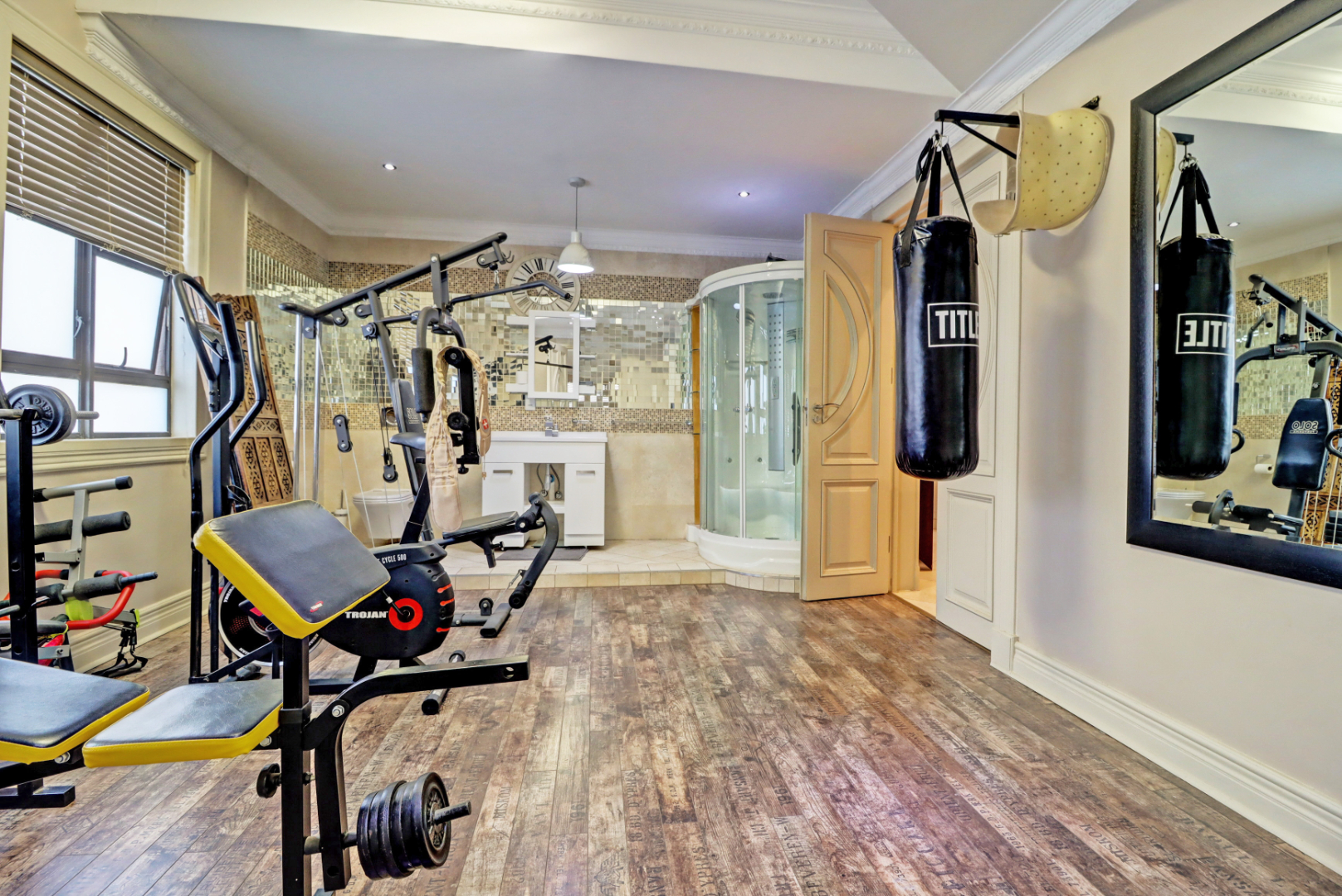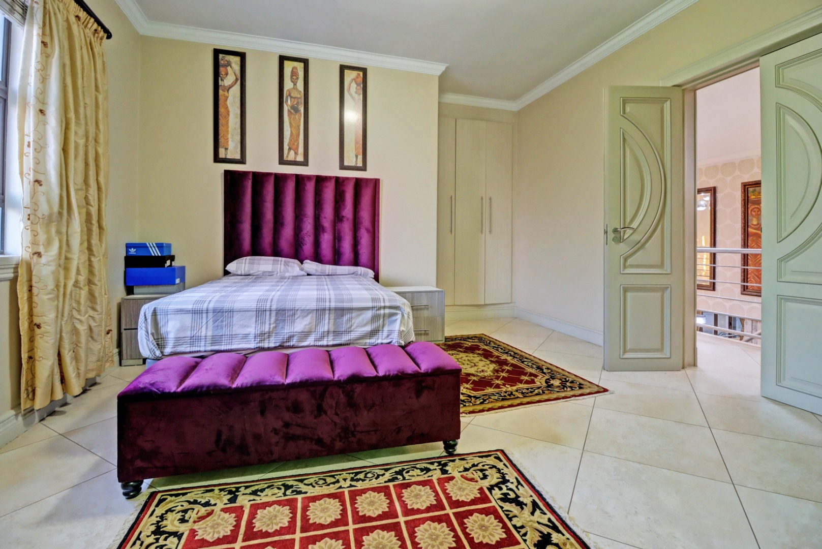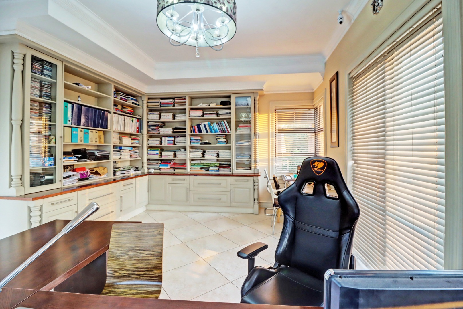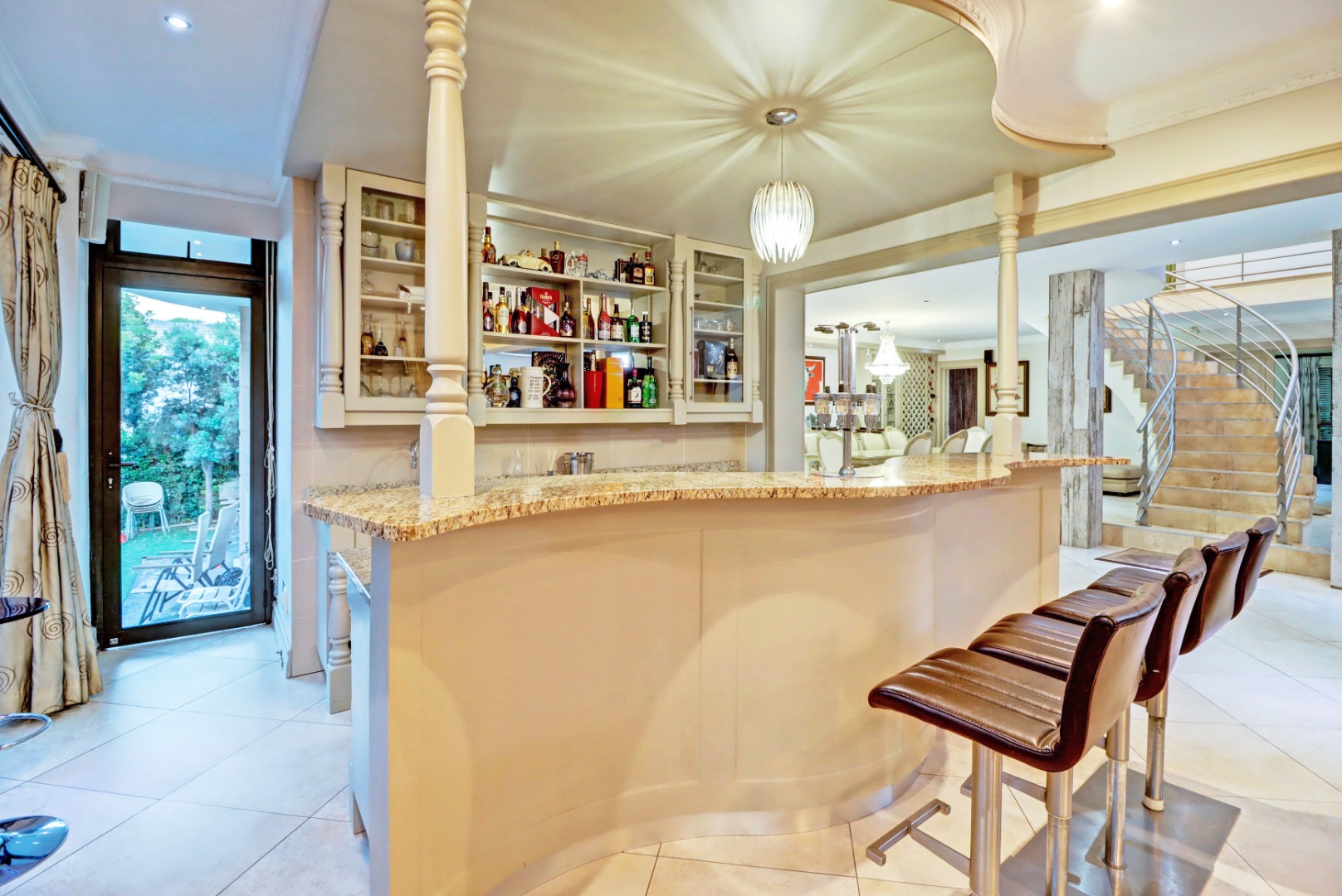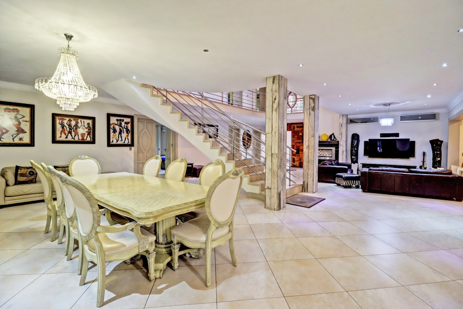 Eight opulent bedrooms, each accompanied by its own en-suite bathroom and a luxurious spa bath, ensure ultimate comfort and privacy for residents and guests alike. The property extends its allure outdoors with a pool, a meticulously landscaped garden with an irrigation system, and a built-in braai, ideal for alfresco entertaining. Four generous garages provide secure parking, complemented by staff quarters and outside toilets for convenience.