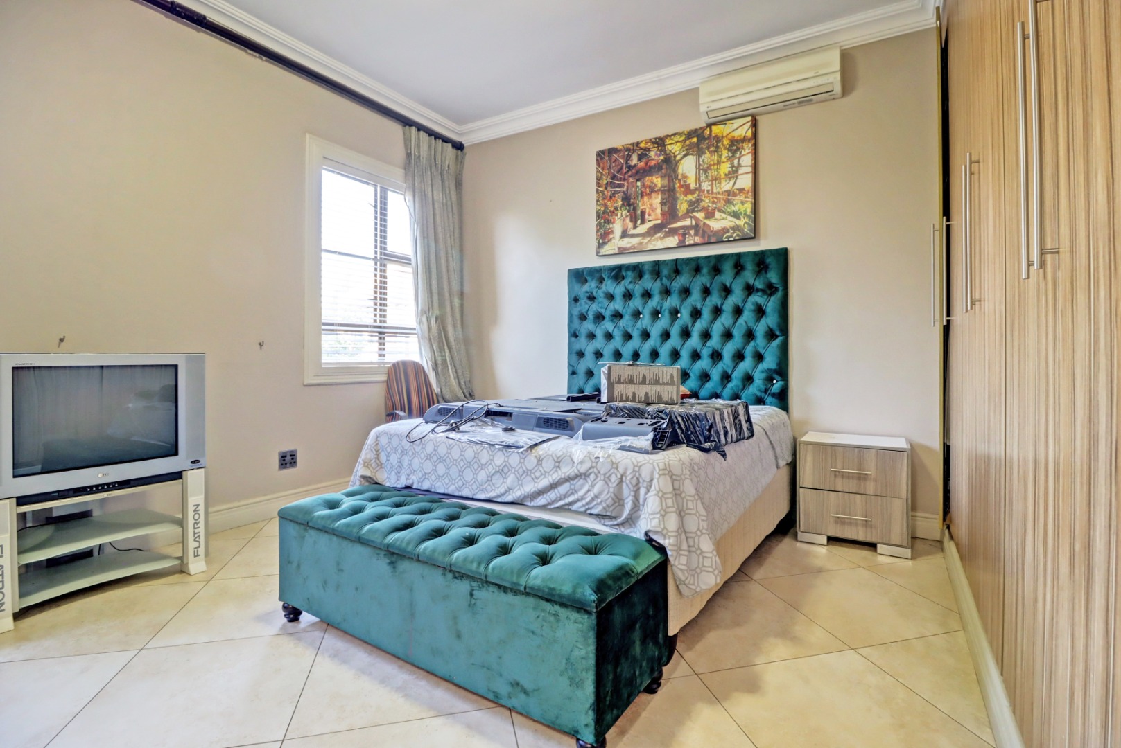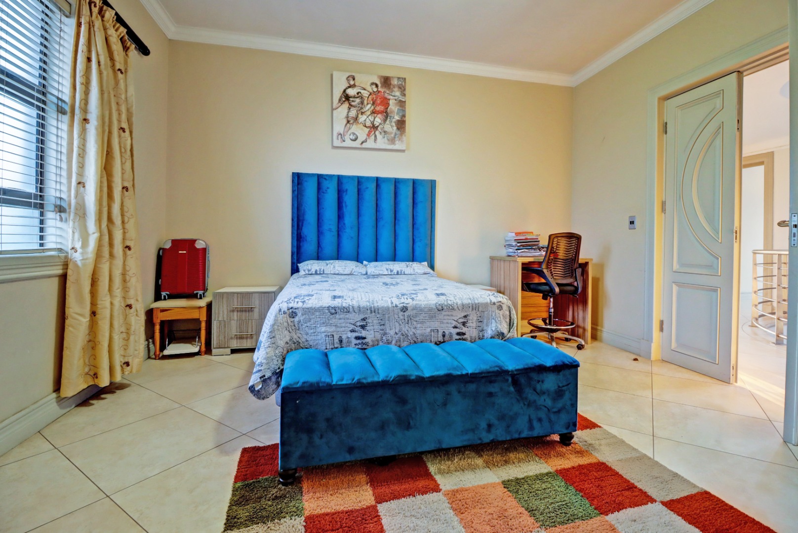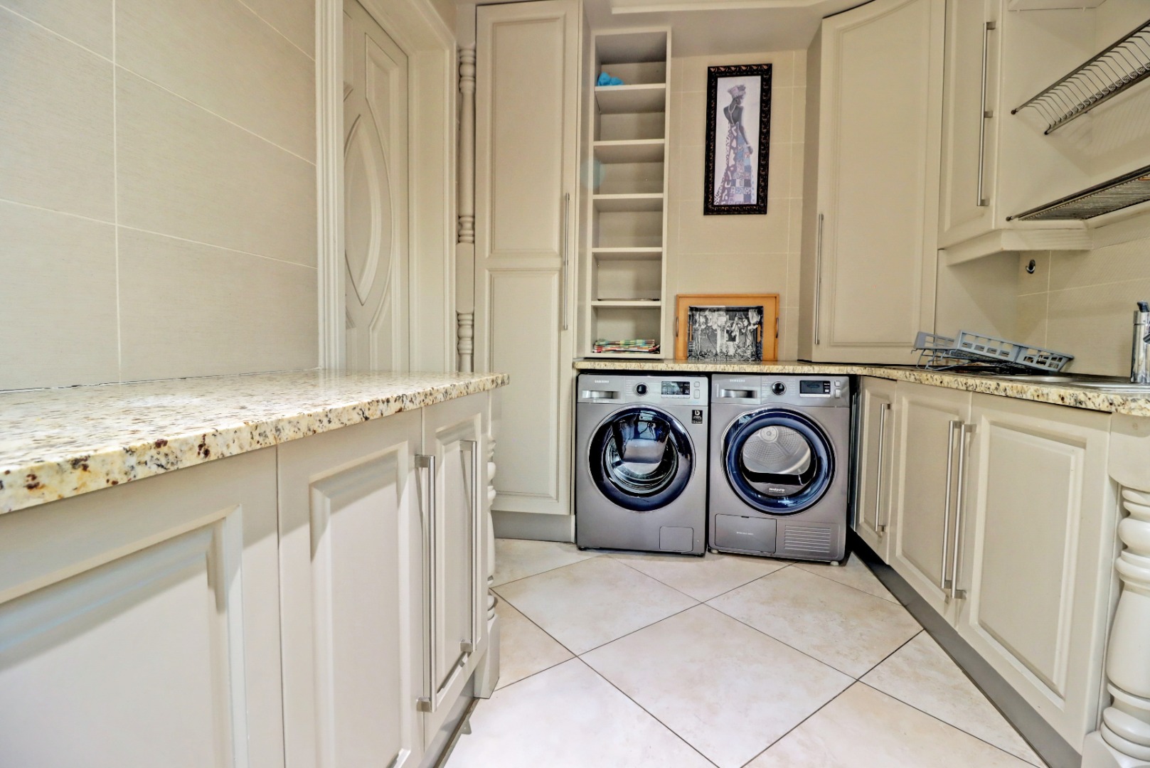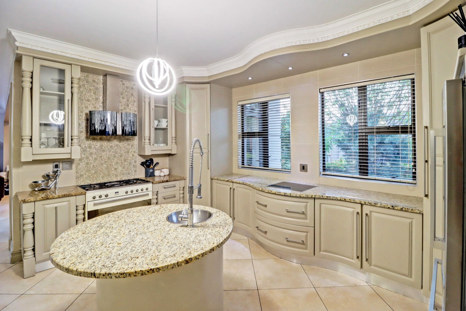 Eight opulent bedrooms, each accompanied by its own en-suite bathroom and a luxurious spa bath, ensure ultimate comfort and privacy for residents and guests alike. The property extends its allure outdoors with a pool, a meticulously landscaped garden with an irrigation system, and a built-in braai, ideal for alfresco entertaining. Four generous garages provide secure parking, complemented by staff quarters and outside toilets for convenience.