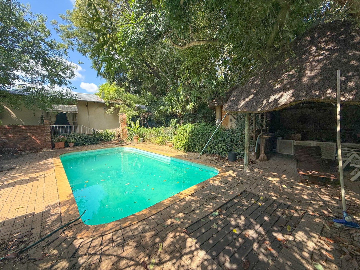 Step outside and you are greeted by a large swimming pool, complemented by a covered patio area, creating a true entertainer’s haven. The pool area connects beautifully to the main bedroom, adding to the home’s relaxed indoor-outdoor lifestyle.