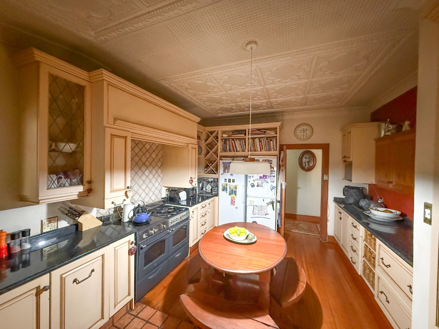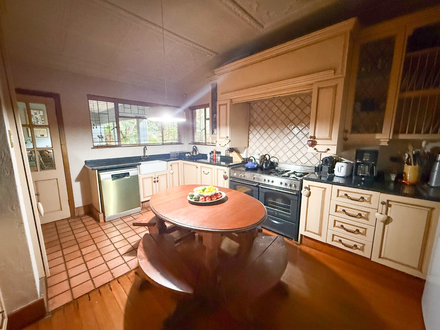 The kitchen is cosy yet functional, opening out to a stunning patio dining area that overlooks the lush garden — an ideal setting for outdoor entertaining and family gatherings.