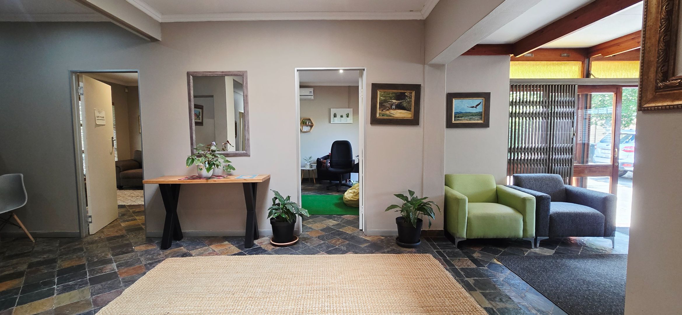 The front door leads to an open plan living room or reception area which leads to six offices and counselling rooms with one large training room.
