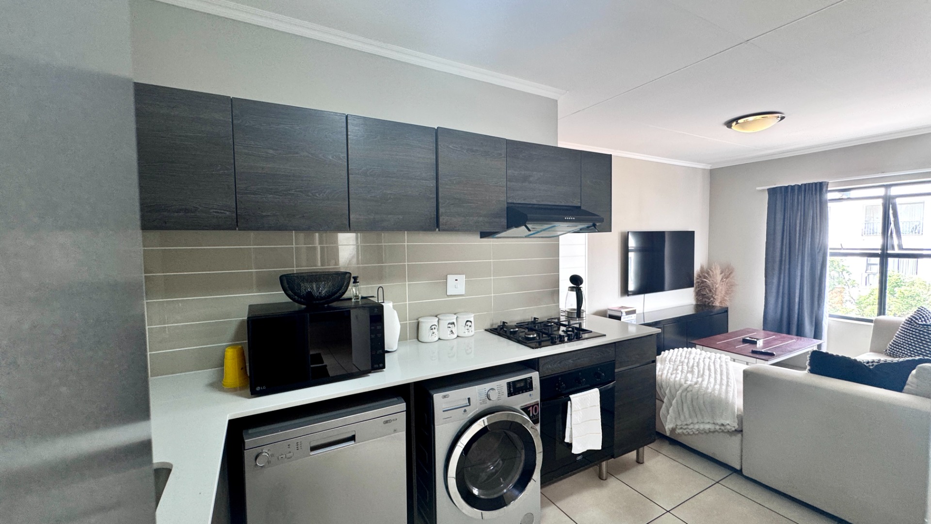 Discover modern living in this stylish and well-maintained 49 sqm apartment, perfectly positioned on the second floor of the highly sought-after Grove-Lane complex in Equestria, Pretoria. Ideal for investors or working professionals, this contemporary unit offers a secure, convenient lifestyle within a beautifully maintained estate featuring white façades, stone accents, landscaped common areas, and enhanced security with a gated entrance, electric fencing, and boom-controlled access.